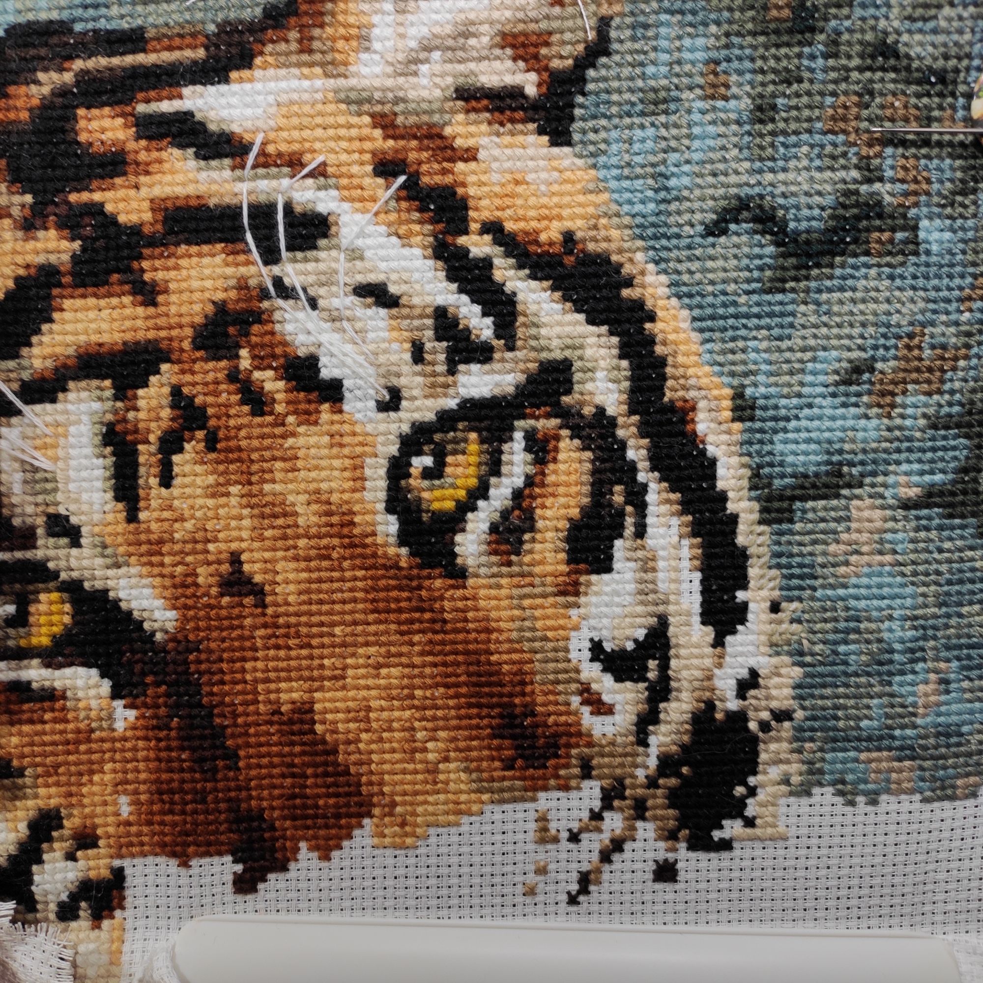 27 февраля 2022 Небольшое продвижение Тигра от Риолис. В принципе осталось совсем немного) пока отложила, хочется ярких красок и снова взялась за игрушки димовские. В Риолисе (он у меня старый) очень много ниток, ниточки были в мотках. Как же здорово, когда можно смело не экономить! Единственное, мне неудобно прокладывать бэк, схема цветная, я чтобы не путаться, закрашиваю ее ядреным маркером, а потом не вижу, откуда начинать бэк) с бровями более-менее разобралась, а вот усы, видимо, буду делать от себя))) размер такой приличный получается, вчера развернула работу и немножко обалдела, тигр однозначно тянет на подушку)) Путешественница, sunny981, Муняша и 16 других сказали спасибо Поделиться сообщением Ссылка на сообщение
