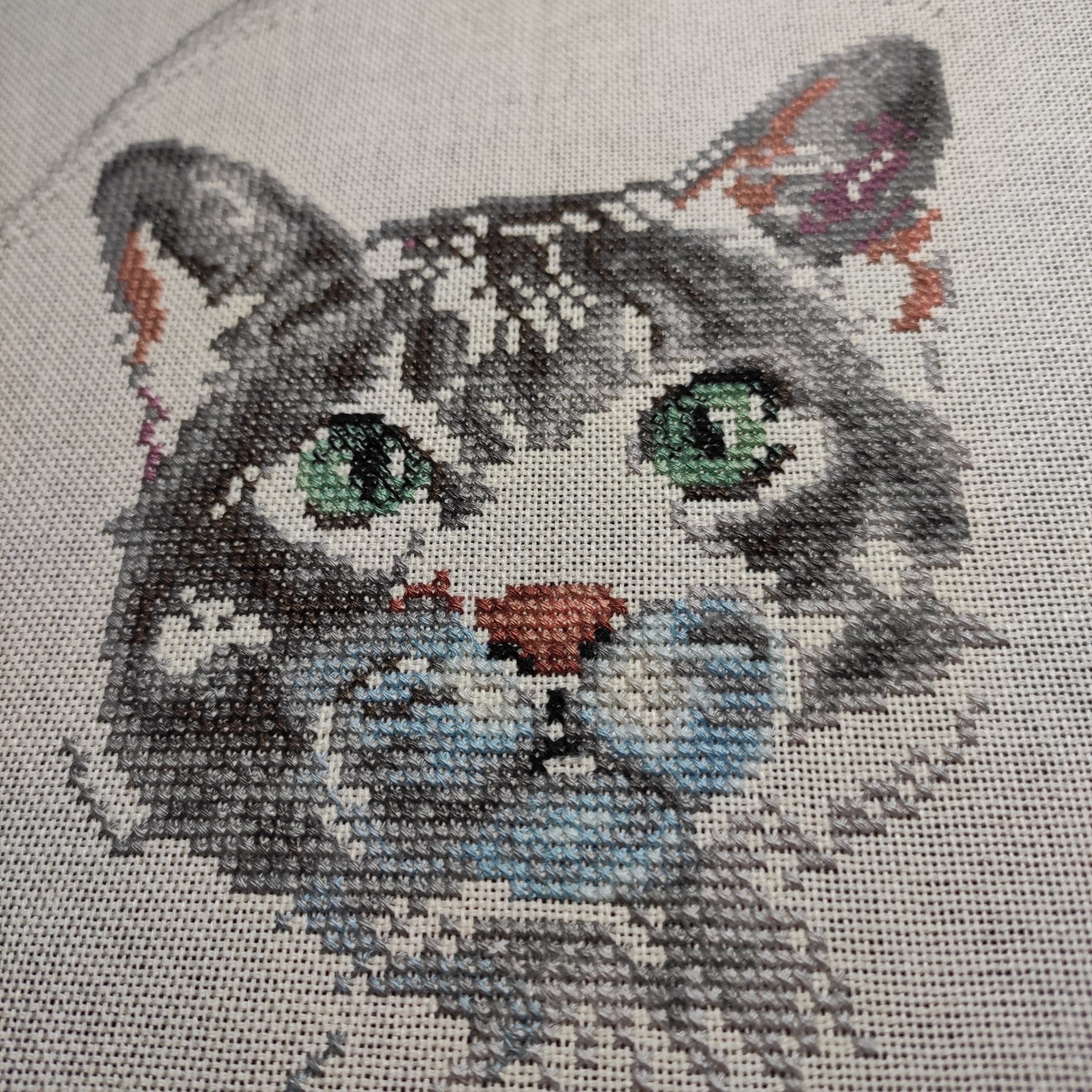 15 марта 2022 Мурзик дошит! Даже меньше, чем за месяц. Очень понравилось вышивать с Сагой, вчера поймала себя на том, что рукой полезла к бумажной схеме, чтобы ее увеличить Надо было белого котенка вышивать тоже с программой. Второе. Вышивать на Амуре с рамой это вдвойне удобно, барабанная натяжка, руки так и тянутся к вышивке. Ищу схемы в Саге и буду по максимуму вышивать по ней, после первой же работы поняла, насколько это быстрее и удобнее, и почему я раньше этого не делала)) вопрос в том, что не всегда можно найти нужную схему и понятно,что обязательно надо перед работой всё сверить. В Диме не всегда нужно менять значки, а вот в некоторых других случаях да, придется попыхтеть и поменять в программе символы на те, которые указаны в ключе, так удобнее. Но времени на это уходит достаточно. Может, кто-то поделится опытом, что вы делаете, если значки в Саге не совпадают со значками в исходнике? Тоже меняете? Ещё ведь надо найти нужный символ, я уже столкнулась с тем, что не всегда его можно отыскать)) Достала набор с цветами от Сделано с любовью, вот там значки не совпадают, пока не решила, что делать, либо вышивать и сверяться с бумажной схемой, либо сидеть и переделывать символы... Но этой проблемы не оказалось в маленьком Диме, который я решила для разнообразия начать. Основу поменяла на Лугану с разводами, цвет максимально идентичен с цветом родной канвы. Потом возьму редкого кошака, буду тоже по саге шить и достала ещё ЗР))) в общем, хоть ногами и руками вышивай, приперло))) И все в тот момент, когда меня наконец позвали работать)))) Пока подруга в отпуске, времени будет мало на вышивку, но потом , думаю, настроим процесс и все пойдет как надо. Итак, новый маленький процесс для удовольствия! Мурзика нужно искупать и подготовить для фотосессии.покажу его немного позже. Selinta, Муняша, Alina1989 и 10 других сказали спасибо Поделиться сообщением Ссылка на сообщение