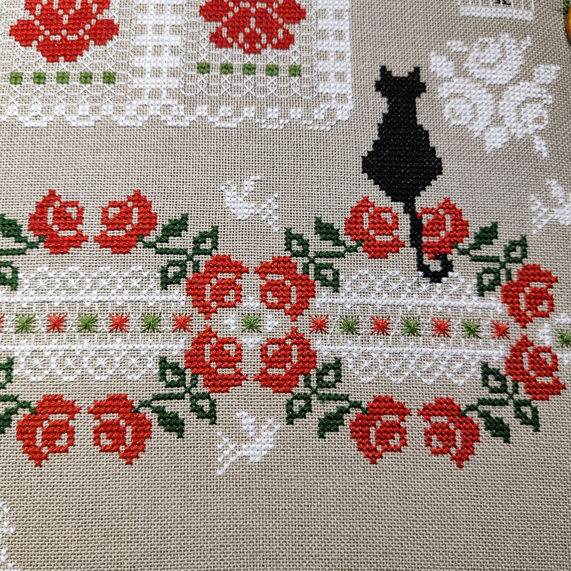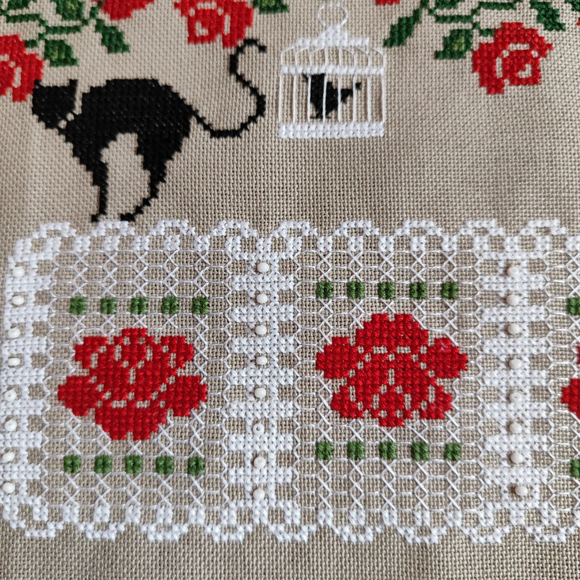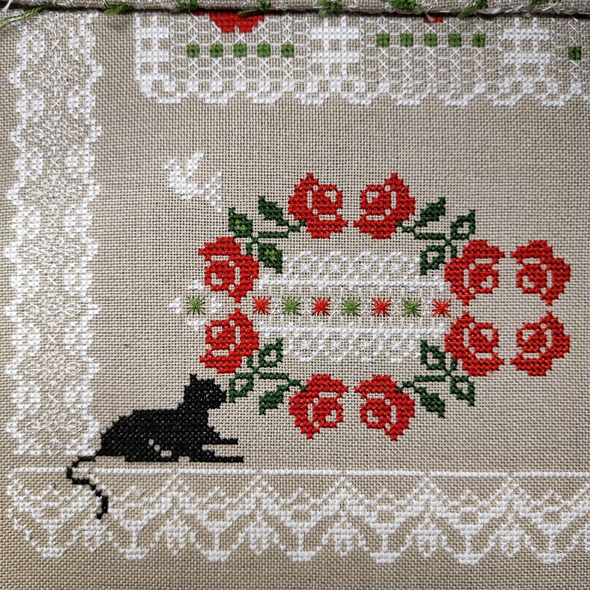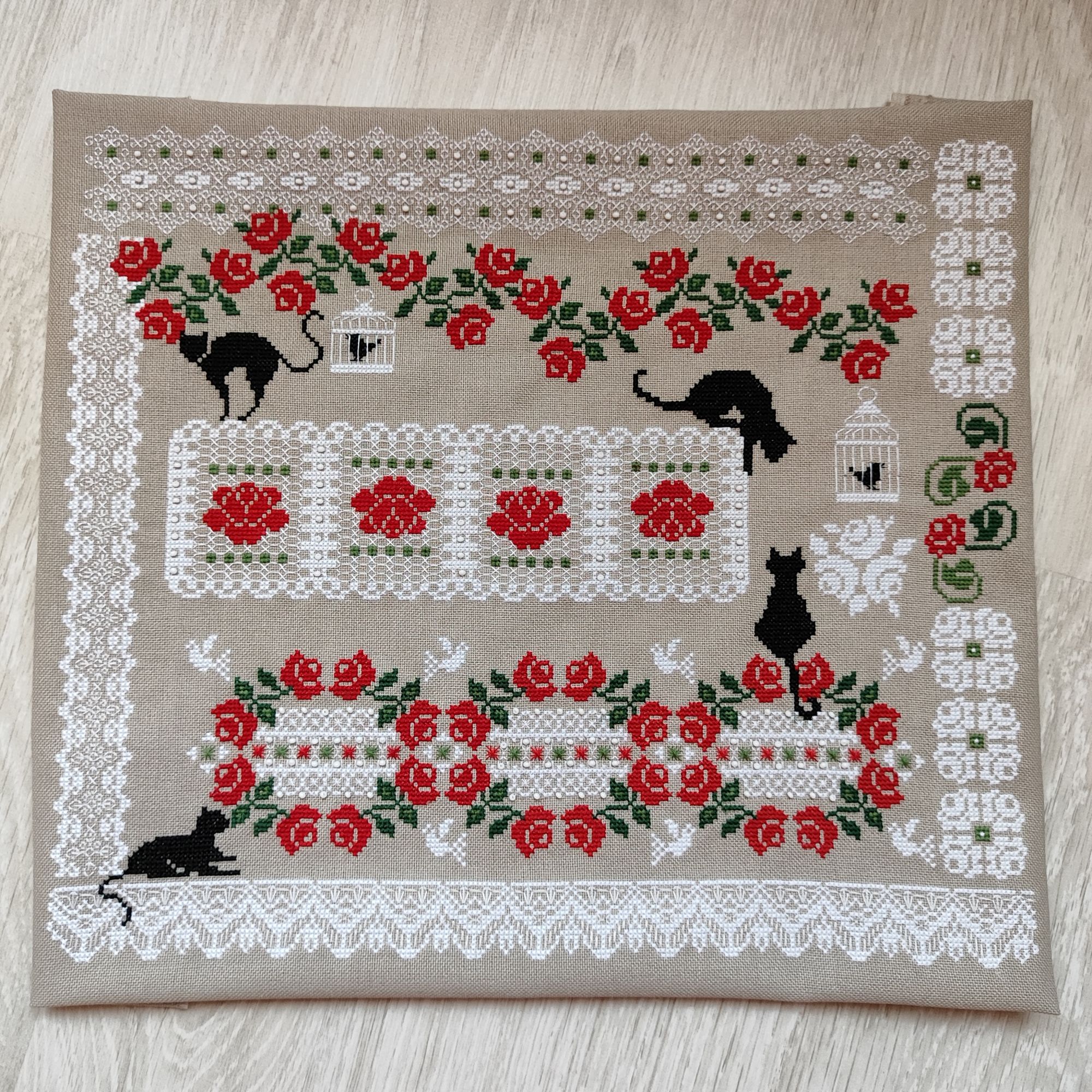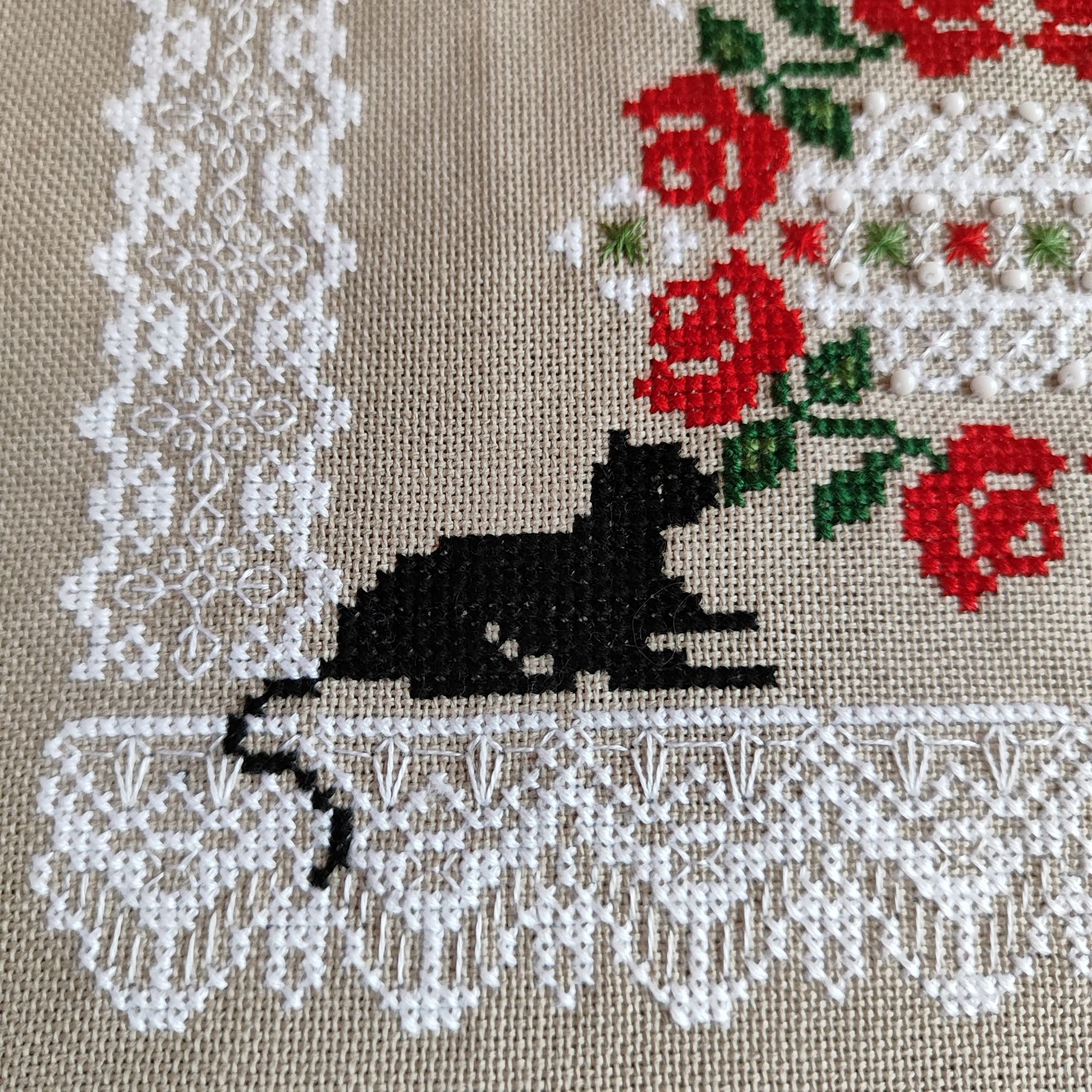 15 января 2023 Ура,я тут поднажала и закончила два процесса, и даже практически закончила Орла! Орла покажу чуть позже, там осталось совсем немного и бэк, мы с ним уже практически на финише. Котенок) тут все понятно и просто, как всегда в Херитаж, единственный минус -это ошибка комплектовщики, потому что в процессе вышивания выяснилось, что трёх самых ходовых цветов, которые используются не только соло, но и в блендах, не хватило и не хватило прилично. Хорошо, что у меня нашлись такие цвета в загашнике ( один, темно-зелёный, правда, в виде СХС). Черный цвет закончился сам по себе, не говоря о том,чтобы побыть в блендах, темно -зелёный, грязный такой, тоже и один из светлых серых оттенков. Зато зачем-то осталась целая куча лимонного цвета, которого тут не так и много. Вопрос, зачем? Думаю, что это действительно ошибка тех, кто собирал набор. Я покупала несколько наборов из этой серии на формуле рукоделия, они все были запаяны, нитки висели на органайзере и наборы явно не вскрывались... Буду вышивать следующие, буду иметь в виду, что ниток вполне может и не хватить. Котенок вышит по Саге,поэтому процесс шел ненапряжно и я в который раз сказала самой себе "спасибо" за то, что однажды решилась на покупку Саги, как же это здорово облегчает нашу вышивальную жизнь! Сэмплер с котиками по схеме Елены Душкиной-Шатт. Также вышивала по Саге. Материалы все по ключу, основа - Линда. А вот какой цвет Линды, уже не скажу. Вроде бы несложная работа, но очень кропотливая, особенно кружево))) отдыхаешь на кошариках и розах. Честно говоря, вижу этот дизайн в виде подушки, у меня даже задник подушечный такого же цвета имеется, но пока не решила окончательно, применить. Размер, кстати, получился вполне себе подушечный, около 40х40. Selinta, Муняша, Путешественница и 20 других сказали спасибо Поделиться сообщением Ссылка на сообщение