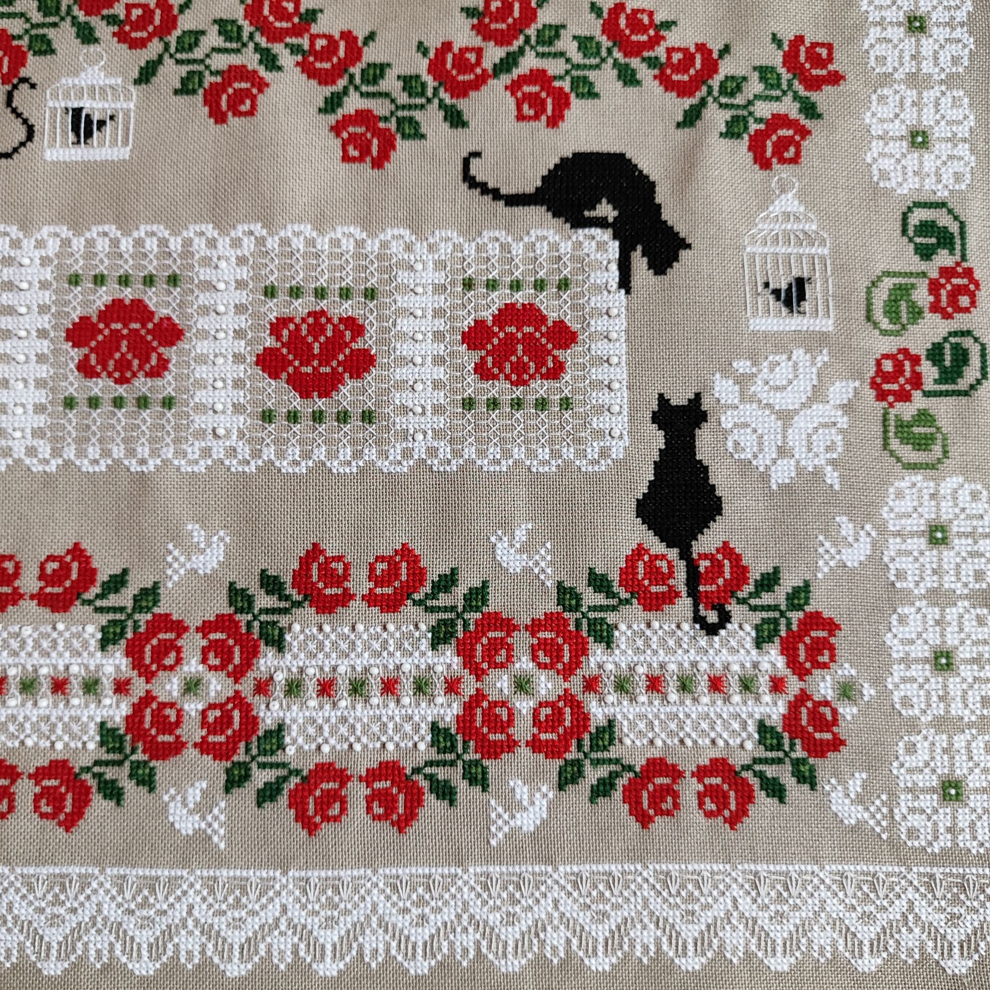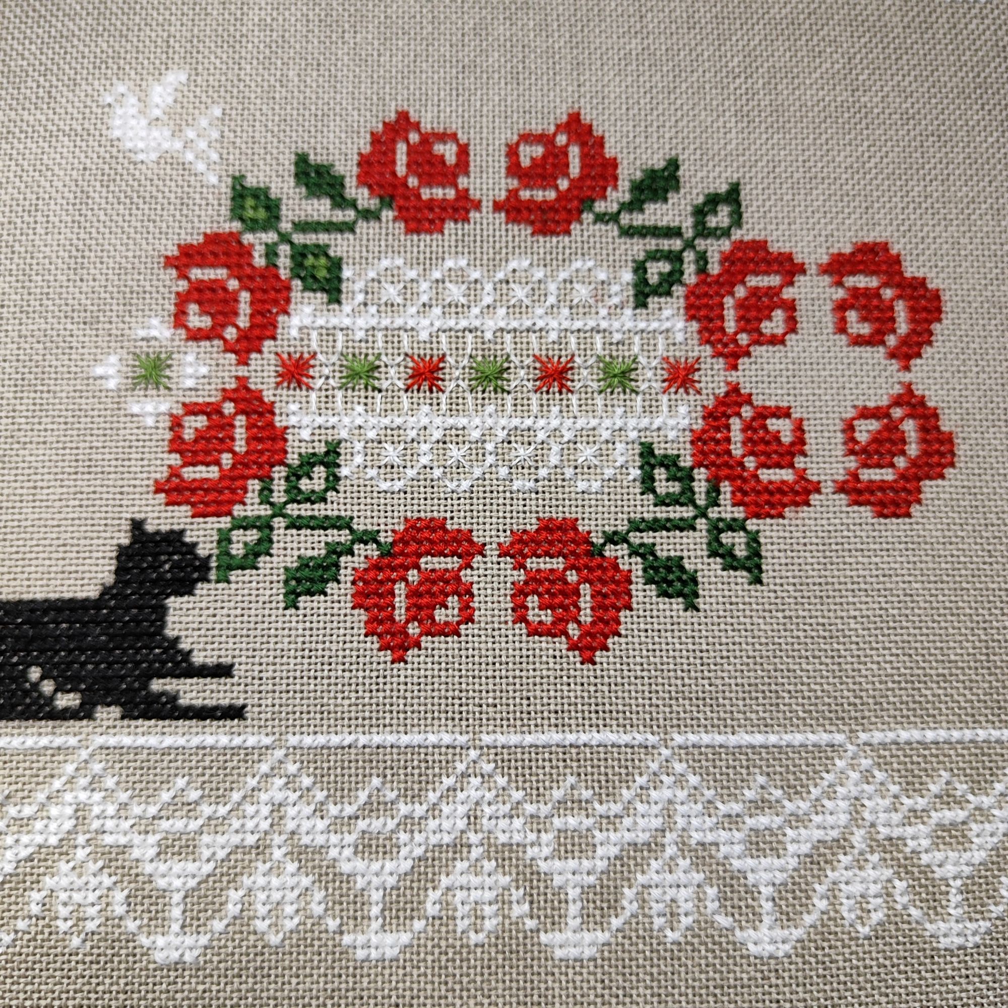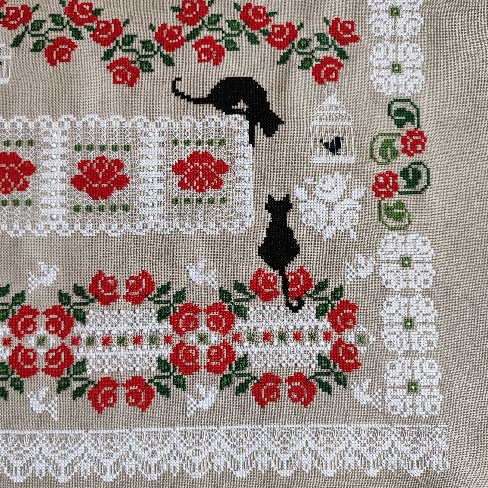 17 декабря 2022 Сэмплер. На первый взгляд казалось, что работа быстрая) но здесь очень много деталек - это и шовчики, и бисер, который я буду пришивать уже потом, и прямые стежки, которых очень много, поэтому работа всё-таки кропотливая и на нее уходит довольно много времени. Но она почти готова, осталось немного т кружева внизу, орнамент справа и начнется "отделка" - те самые стежочки и бисер. Возможно, ещё что-то упустила из виду, надо будет посмотреть по схеме. Да и размер в принципе конский,тянет на целую подушку 40х40))) Wildkatze, Tanelia, Хозяйка смешных зверей и 19 других сказали спасибо Поделиться сообщением Ссылка на сообщение