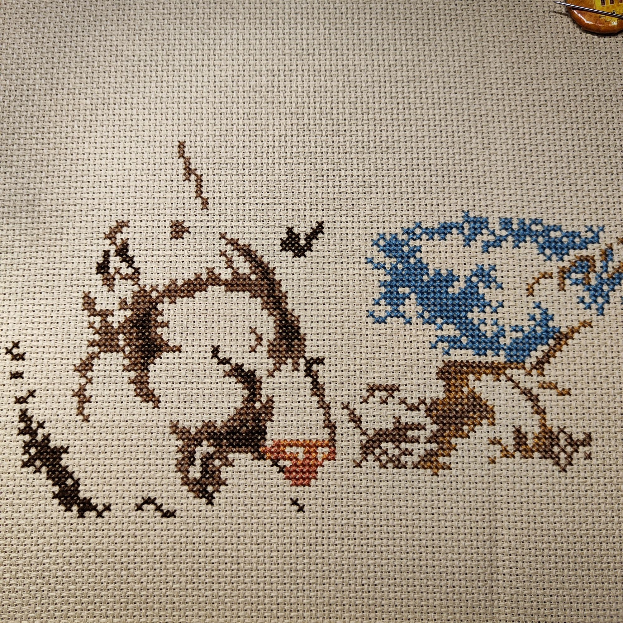 7 января 2023 В общем, очень неожиданно, но 30 декабря я умудрилась заболеть шла вечером с работы и понимаю, что как-то мне совсем некомильфо... В общем, неделя жизни выпала в буквальном смысле слова, я кроме как лежать (в кресле или кровати), больше ничего не могла ((( до сих пор меня муж дома стережёт, чтобы я на улицу не вышла (я сначала не поняла, что заболела, думала, усталость какая-то, поэтому сходила погулять ненадолго 3 числа и вечером меня кааак накрыло). Теперь сижу под домашним арестом и на улицу только из окон смотрю. Поэтому и не вышивала ничего почти все эти дни, просто физически не могла. Все, что смогла навышивать, сейчас покажу)) Котенка осталось совсем немного, но мне надоедает ковырять жёлтые цветочки, которые надо вышивать очень похожими цветами, поэтому я остервенело параллельно ковыряю орла, с которым связана забавная (не очень) история. Кстати, похоже, упаковщик или упаковщица Херитажа были не в себе, поэтому неходовых цветов было вложено почти в два раза больше,как выяснилось в процессе работы. Как раз того самого лимонного цвета оказалось намного больше, чем необходимо (хотя он используется и моно, и в бленде,но его все равно нереально много). Наверное, стоит показать, что осталось, но это когда я уже закончу котенка. Не хватило ещё одного цвета - оттенок зелёного, который активно используется не только сам по себе, но и в бленде. Осталось совсем чуточку! Многострадальный орёл, который судя по Саге, вышивается уже больше 60 дней. И это полукрест! Первый Дим, который я никак не могу закончить. Мало того, я в нём нереально косячу! Все, что ниже гор и орла, оказалось каким-то образом сдвинуто в разные стороны (влево, вправо, вниз и вверх). Почему и как я умудрилась запутаться в простой в принципе схеме, разбираться поздно. Муж, естественного, никаких косяков не заметил, а я решила, что ну и хрен с ним. Я просто в очередной раз художник и я так вижу. Зато точно уникальная картинка получится в итоге))) распарывать все это смысла не вижу, мне уже не хватило одного тона, хорошо ,что были димовские ниточки такого же цвета. И елки-палки, почему же мне так нудно его вышивать? Вспоминаю все свои вышитые Димы и не припомню, чтобы я настолько долго вышивала хотя бы одну картину,у меня на голд всегда уходило не больше 2 месяцев. Ну да бог с ним, осталось тоже немного. Из побочек - при вышивке полукрестом в 5 сложений снова поломалась родная игла. Уже вторая! Однако осталось всего около 20%,что не может не радовать. Может,доковыряю всё-таки в ближайшее время. relax_cross_stitch, Wildkatze, Дикая белочка и 22 других сказали спасибо Поделиться сообщением Ссылка на сообщение