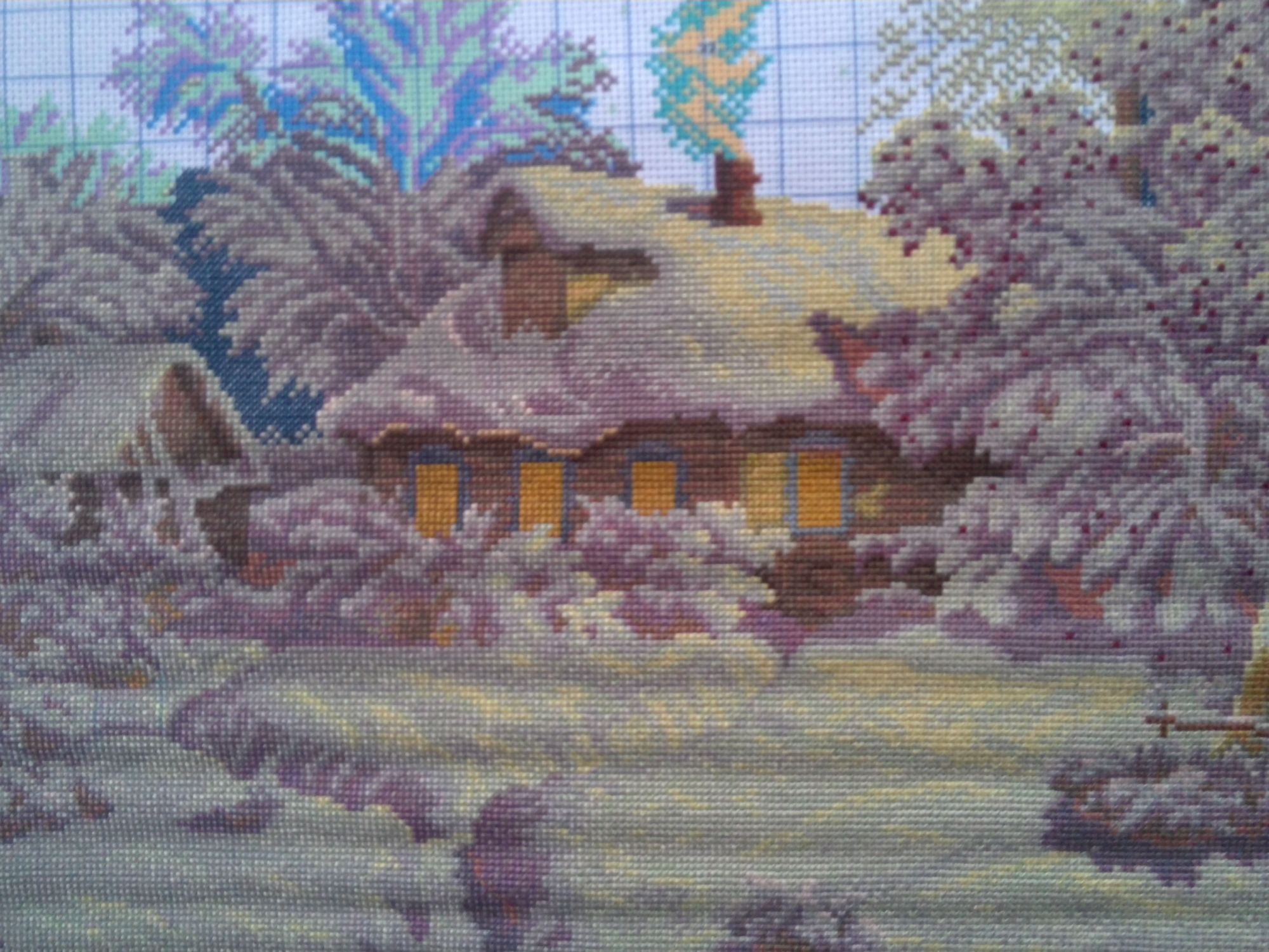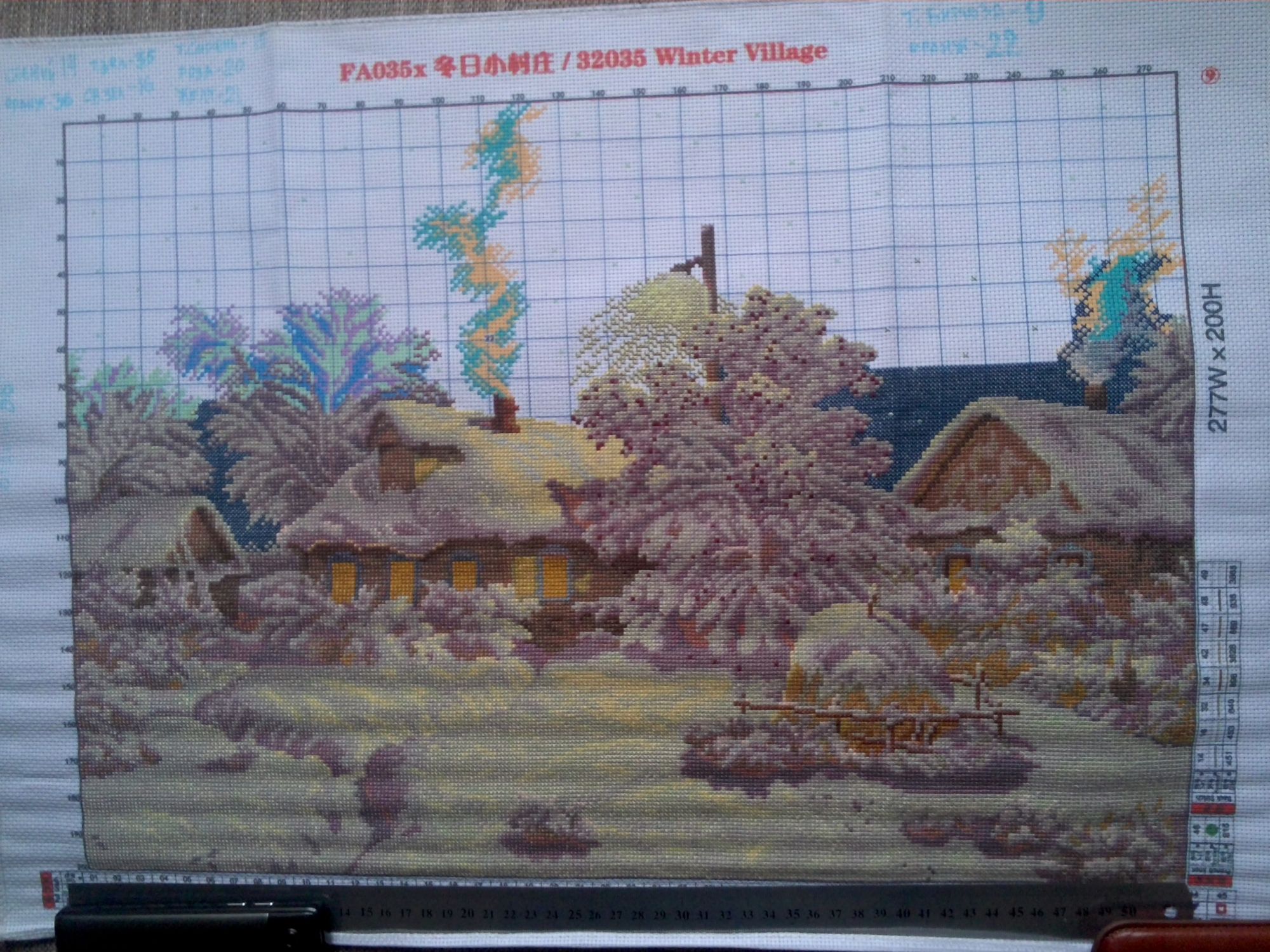 16 декабря 2019 07.11.2019 в 09:53, Ориса сказал(а): Хочу поделиться впечатлениями от этого китайского набора. Характеристики набора : размер 277W x 200H, 49 цветов мулине, 45 цветов используются для вышивания, 8 цветов для бэка, 1 цвет для фрузелков для ягод рябины. У меня канва аида 14 с нанесенной на канву схемой. Я вышиваю снизу вверх, закручивая отшитое в валик, пяльцы не использую. Сейчас я вышиваю в районе 150-го ряда по горизонтали, это чуть выше поперечных палок на стоге сена. Что сразило наповал - отшив совпадает с фотографией набора только в плане очертаний объектов, цветовая гамма отшива и тональность вышивки напрочь не совпадают с фотографией на обложке набора. Уточняю то, что сильно удивило в этом китайском наборе : 1) Снег не белого цвета... для вышивания снега используются в основном следующие цвета: № 16 ( ДМС 453) и № 35 ( ДМС 3033), эти цвета явно не белые.... 2) Блики от фонаря на снегу чёткого желтого цвета № 21 ( ДМС 677 ). 3) Тени на снегу от дорожки ( слева на фото) и от стога сена очень темные, больше подходят для проталин на земле от снега, в основном используются следующие номера мулине № 15 ( ДМС 452) и № 20 ( ДМС 648 ). 4) Слева на фото верхушки деревьев, якобы в снегу... они тоже не белого цвета, используется № 16 ( ДМС 453). 5) Мулине белого цвета используется только для бэка... и это жесть.... Много бэка, бэк еще не делала. Возможно бэк как-то изменит моё впечатление от этого набора, но пока это полная жесть... Поделиться сообщением Ссылка на сообщение