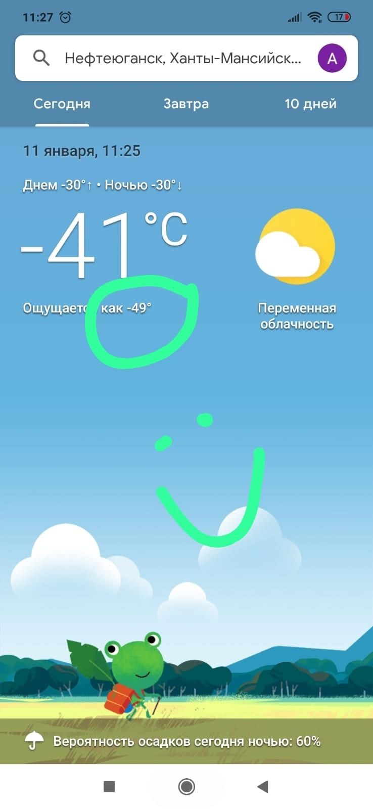 13 января 2023 6 минут назад, maui сказал(а): Я обычно при +5 утепляюсь под брюки. У нас поговорка есть: "Уральцы не морозостойкие, просто одеваются тепло" У нас уже больше недели -10-12, для нас это прям очень холодно и долго, уже все устали от зимы С подругами из универа у нас есть группа в вацапе, я им жалуюсь на погоду, а одна из них из ЮГРЫ, присылает фото Скрытый текст так что мои жалобы, как рукой сняло Kattrielle, Хозяйка смешных зверей, Sneganna и 5 других сказали спасибо Поделиться сообщением Ссылка на сообщение