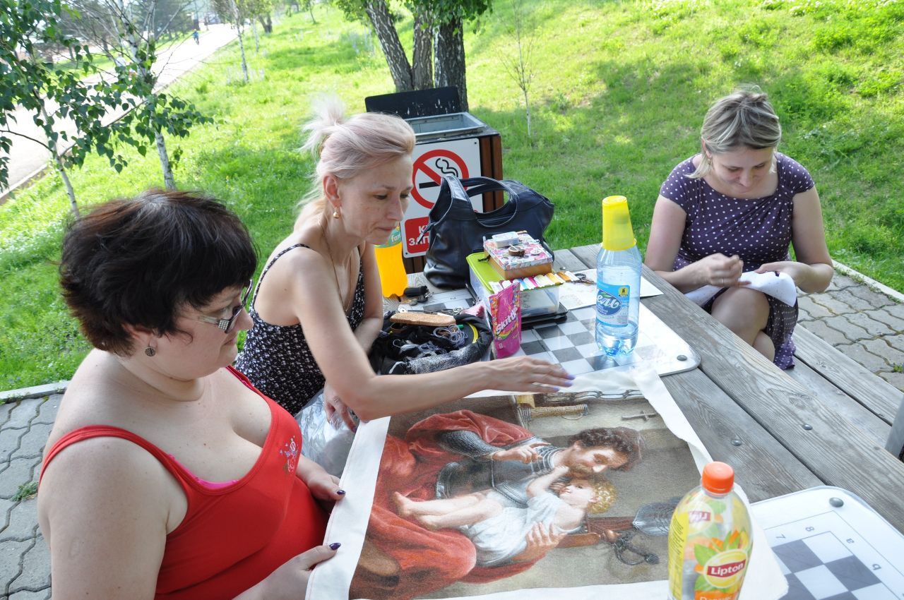 26 июля 2020 У МЕНЯ ВСЕ КАК ВСЕГДА НЕ ДЛЯ ГАЕЧЕК!!!!!!!!!!!!!!!!!!!!!!!!!!!!!!!!!!!!!!! Девочки, всем большой воскресный привет! Меня продолжают преследовать разные техногенные катастрофы, но лучше я не буду о них даже рассказывать - вдруг они так скорее рассосутся? Объявляю сегодняшний отчет посвященным позитиву! Вчера у нас состоялась очередная встреча вышивальщиц - как я когда-то боялась идти на первую встречу, что буду там одна среди трех калек, и как я сейчас рада, что познакомилась с классными позитивными и талантливыми девчонками (ну как девчонками?... но кто скажет, что мы мальчишки, пусть первый бросит в нас камень ) Каждая встреча - это такой заряд творческой энергией!!! Тем более летом в период пандемии мы стали собираться на природе - и это оказалось так классно! Вчерашние фотки еще не скинули, поэтому вот маленько прошлой - Эстэ штопает как горячие пирожки наша Таня, я всю эту красоту регулярно вижу собственными глазами и щупаю собственными руками! )) Теперь о кисе.... Она меня радует, даже раньше запланированного закончила 12 листов! Было и стало Остался последний ряд из трех листов, должна-таки до осени успеть! Мишку надеялась показать уже готового, но.... зато я наконец-то окончательно довела до ума свой сэмплер!!!! Я ведь говорила, что осталась не совсем довольна слишком белой и новой рамой, в котором он смотрелся абсолютно по-новогоднему. А я мечтала, чтоб он выглядел как доставшаяся от пра-пра-прабабушки семейная реликвия. Вобщем я натерла багет тряпочкой, смоченной в обычной воде с черной колеровкой. Получилось классно, но выступило несколько темных пятен. Я уже морально готовилась вообще менять багет (деревянный, на минуточку! ) но поскольку терять было нечего, прошлась еще раз колеровкой и зашлифовала яркие пятна. И получилось именно то, что я хотела!!!! Устроить фотосессию не улице была так себе идея, но раз уж я его таскала туда-сюда, то вот Кстати, цвета на фото более-менее соответствуют действительности, а то он раньше всегда получался красным. Ну и завершить свой позитивный отчет я решила красавицей-орхидейкой, но без кошки у меня почти невозможно сделать фотку, Ириска решила добавить красоты и от себя На этом закругляюсь, всем прекрасного настроения и ненапряжной рабочей недели! Всем тьмок! Galagenka, Egelia, mechtatel_arh и 16 других сказали спасибо Поделиться сообщением Ссылка на сообщение