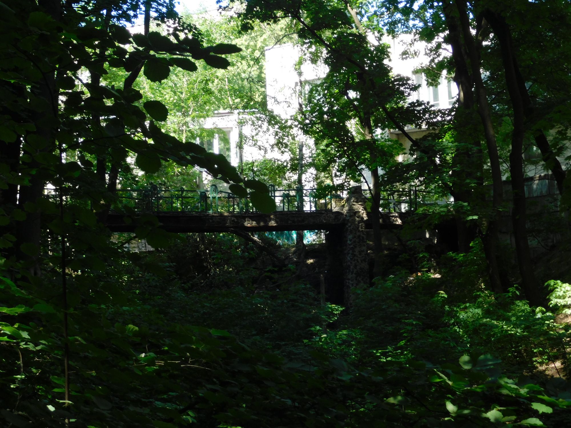 3 июня 2018 Недавно прочла о неофициальной даче Хрущева на Лукьяновке. Поехали,посмотреть,пофотографировать. Жаль что все в ужаснейшем состоянии. И это центр города.... Кому интересно-немного истории ниже) Достаточно интересный ландшафтный парк на Лукьяновке, с конца 70-х годов принадлежащий Институту педиатрии, акушерства и гинекологии (далее — «ПАГ») и ныне пребывающий, мягко говоря, в неухоженном состоянии. Расположение парка Дача Хрущева занимает бóльшую часть квартала, ограниченного Лермонтовской улицей, улицами Платона Майбороды, Герцена и безымянным проходом между двумя последними. Официального адреса у парка нет, поэтому для ориентации можно пользоваться адресом ПАГа — улица Платона Майбороды, 8–12. Собственно, отсюда и можно в него попасть. Однако чаще можно услышать версию о том, что парк находится на Герцена. Со стороны этой улицы также есть проход (ворота) в парк, однако они не всегда открыты. История парка Еще в 1889 году, во времена интенсивного освоения киевлянами Лукьяновки, в этих местах приобрел участок аптекарь Октавиан Бельский, и вскоре построил на нем небольшой особняк по проекту известного архитектора Николая Казанского . Чуть позже его участок был расширен и рядом возвели еще одно здание — в похожем стиле, но на этот раз бóльшей площади и двухэтажное После революции усадьба стала достоянием государства и некоторое время функционировала в качестве доступного общественности парка. Вскоре местность была превращена в режимный объект, возле которого простым смертным, во избежание проблем, не рекомендовалось даже прогуливаться. Движение по трамвайным линиям, которые проходили рядом, было приостановлено. К слову, позже, когда был пущен 18-й троллейбус, ныне проезжающий по Герцена, его маршрут также проходил в объезд «Дачи» — по Мельникова и Пугачева. Огромные средства в облагораживание парка вложил народный комиссар Всеволод Балицкий, живший тут в период с 1934 по 1937 год. После его ареста и расстрела территория некоторое время использовалась как пионерский лагерь для детей сотрудников НКВД. После освобождения Киева от немцев сюда переехал Никита Хрущев, в честь которого парк неофициально называют по сей день. В те времена территория была оформлена с особой роскошью: пруды с рыбой, фонтаны, арки, мостики, клетки с медведями, гуляющие по парку павлины. Хрущев с женой жили во втором особняке. После него высокопоставленные особы использовали место в качестве резиденции вплоть до 70-х годов, когда территория была передана построенному на улице Мануильского ПАГу, администрация которого обосновалась в большом особняке (в малом сейчас — корпус № 5). Тогда еще парк сохранял признаки былой красоты, но с тех пор его состояние лишь ухудшалось. Неизменна эта тенденция и теперь — администрация института практически не ухаживает за территорией, а общественность лишь негодует по этому поводу, никогда не доводя планы по уходу за парком до реальных дел. Особенности парка Дача Хрущева находится в верховьях Кмитова яра, благодаря чему здесь нетипичный для большинства киевских парков рельеф — со спусками, подъемами и небольшими оврагами. Это позволило проложить здесь лестницы и многочисленные мостики, ставшие украшением парка. В самом глубоком месте территории находится два искусственных пруда, находящихся в крайне печальн