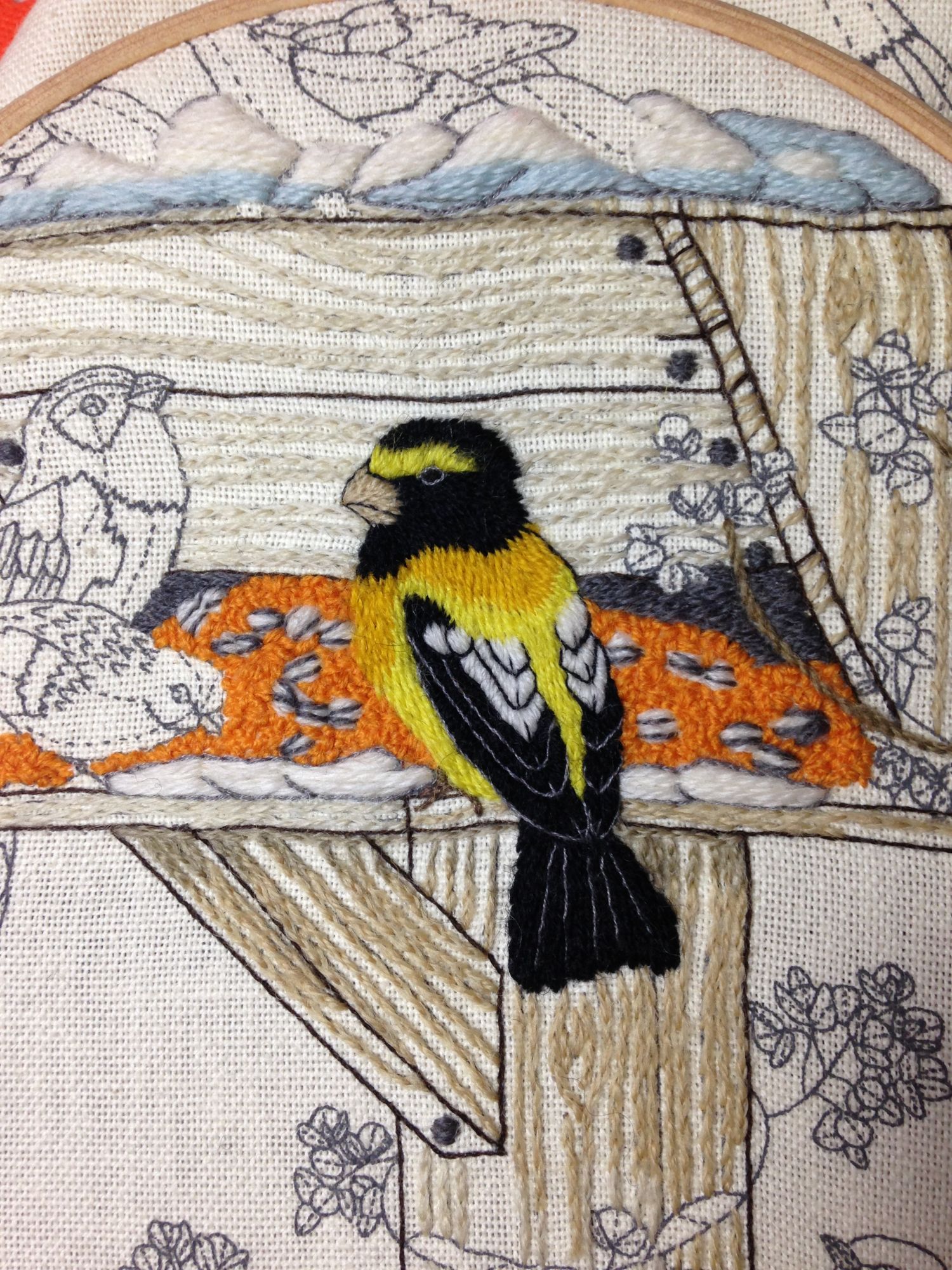 23 апреля 2017 Я контуры на птице шью стебельчатым швом. Гладь получается из шерсти, контур мулине. Контур над застилом из шерсти. Я специально нашла фото именно этого вида птиц в нужном ракурсе и попробовала повторить крылья. Получается, что контур приходиться на место, где встречаются стежки глади. У меня кстати идея появилась внешний контур птиц не шить. Ограничиться крыльями и клювом. Дошью контур внутри - покажу завтра. Поделиться сообщением Ссылка на сообщение