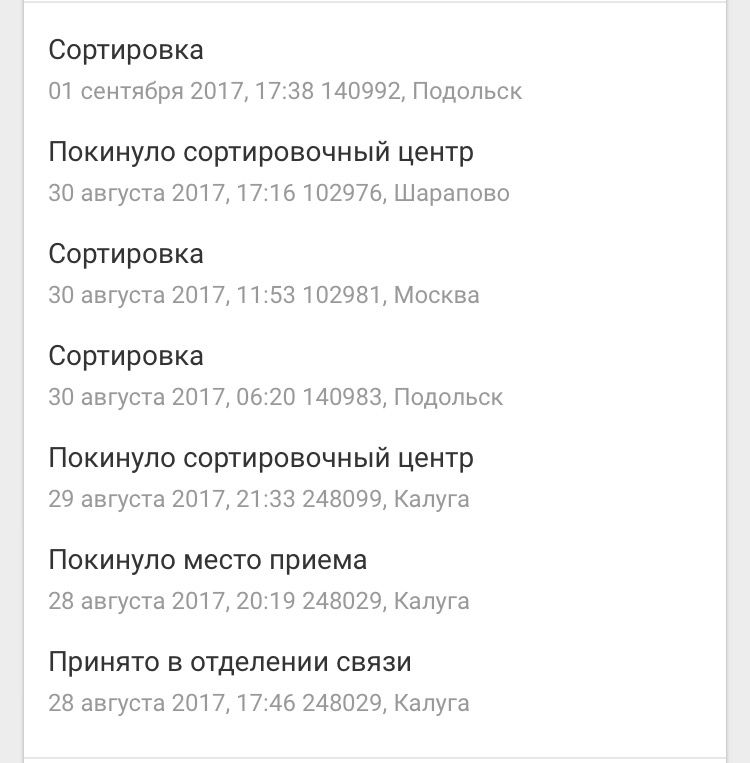 5 сентября 2017 8 часов назад, Yuufie сказал: Люблю блин Почту России... Робин вернулся в Подольск, серьёзно?!!! ksen40, Оксан, у тебя точно нет возможности воспользоваться СДЭКом? я уверена, что все отлично придет и почтой нужно только чууууть-чуть потерпеть:) yuss, МамаЛё, Ксен40 и 2 других сказали спасибо Поделиться сообщением Ссылка на сообщение