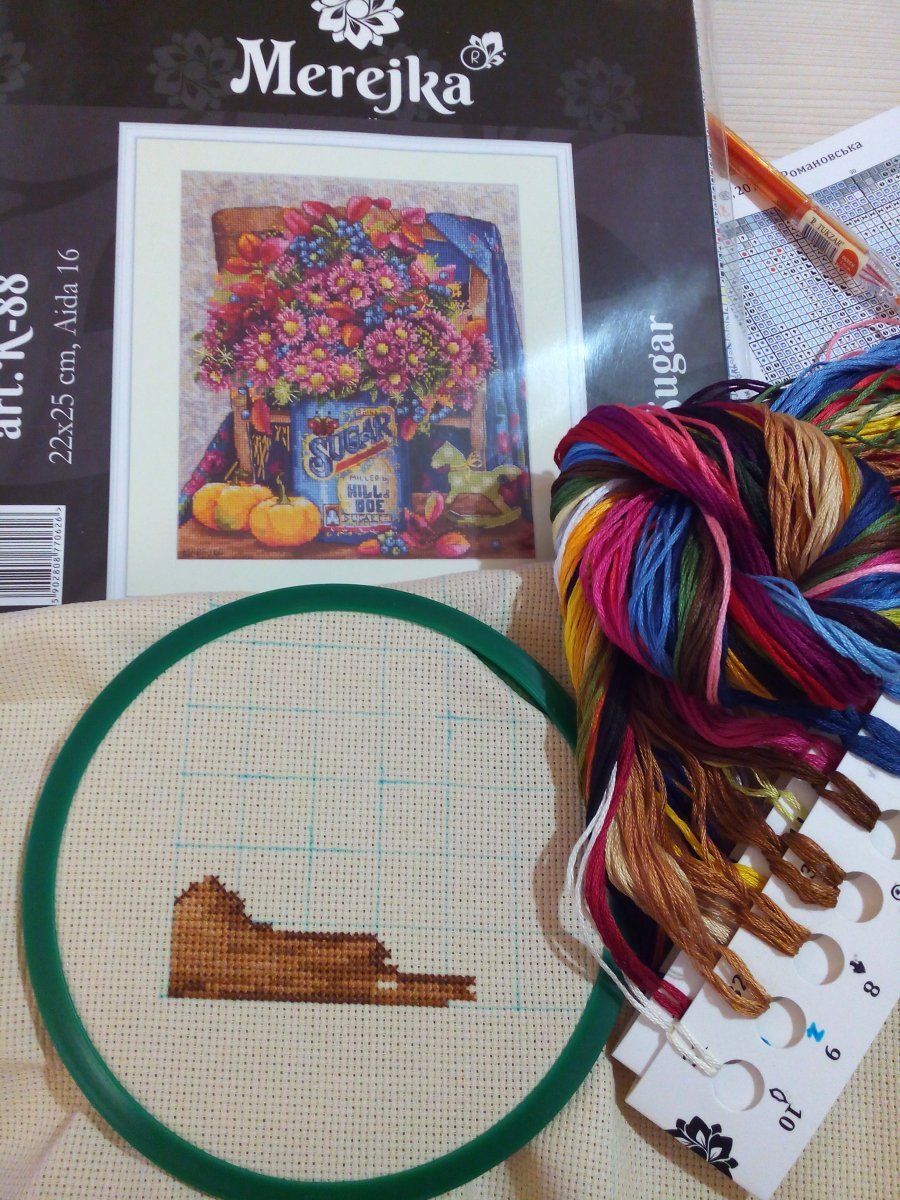 19 апреля 2018 Очередной старт, правда, не запланированный. Вчера получила посылку из магазина "Мир вышивки". В ней было два набора, которые я планировала положить в закрома "на будущее". Оба мне очень нравятся, но процессов и так много. Может у меня и получилось бы воздержаться, но дочка решительно взялась за ножницы - ей тоже было интересно, что там внутри. А у меня часто такое бывает - открыла и руки потянулись начать. К тому же он оказался гораздо меньше, чем я ожидала по превью - 160х140 крестиков. Прошу любить и жаловать! Мережка К-88 Сахар!!!!! Очень мне нравится этот дизайн и я долго на него облизывалась. На этой картине всё - моё! Очень люблю осенние цветы, эти маленькие темные хризантемы, астры и дубки. Шикарный платок на стуле! Лошадка справа, славные тыковки и обалденная синяя банка от сахара в центре! В общем, сочетание милых предметов и шикарных цветов меня покорило! Для меня это какая-то квинтэссенция моих "деньрожденных" впечатлений. Я даже нашла в интернете скан схемы. Но все-таки решила заценить, что же там, - внутри оригинального набора. Канва плотная и жесткая. Честно говоря, не очень понравилась. Нигде на наборе не указано, каких производителей комплектующие. Предполагаю, что канва украинская, а насчет ниток, даже не знаю, что думать. Схема в двух вариантах - с бэком и без. Это для меня - несомненный плюс. Она внятная, хорошо проработанная. Браво! Правда, стоило только начать и пошли минусы. Иголка мне категорически не понравилась. Вышила две ниточки и заменила ее. Дело в том, что в начале я закрепляю нитку микростежком. Приходится прокалывать середину квадратика канвы. Но иголка оказалась слишком тупой, трудно было проколоть. Второе разочарование и даже испуг - бумага на органайзерах. Она оказалась слишком глянцевой и значки, которые я по привычке на них нарисовала, к утру так и не высохли, а даже наоборот - растеклись, смазались и некоторые полностью потеряли форму. Пришлось перевешивать. Мое мнение - цена не соответствует качеству. С разницей в 100 рублей в той же посылке ко мне приехал шикарный набор Кандамар, вдвое больше по размеру с хорошими нитками и производства Великобритании. Да что там, за такую сумму Дим можно купить! Надеюсь, больше неприятных сюрпризов не будет. maui, lvvoron, nogres и 7 других сказали спасибо Поделиться сообщением Ссылка на сообщение