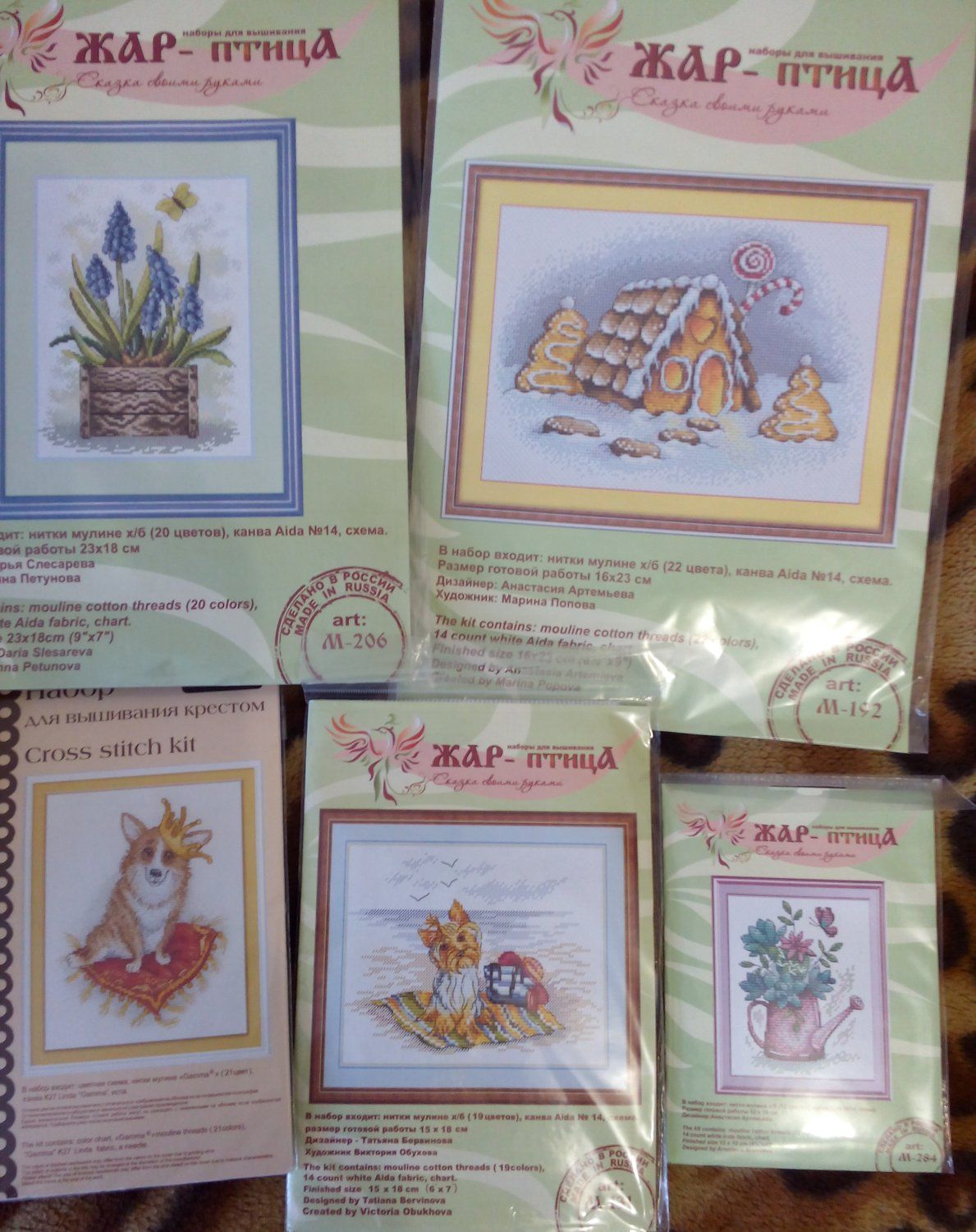 30 апреля 2018 Все руки не доходили отчитаться о покупках и своем приступе вышивальной диеты. Итак. Воздержаться от покупок на два месяца почти удалось. Очередной поход в магазин приключился 27 марта. Накидала кое-что в корзину, думала 1 апреля оформить заказ. Но тут вдруг оказалось, что надо срочно ложиться в больницу и пришлось оформить заказ и оплатить 29 марта, т.к. было непонятно, смогу ли из больницы что-то делать в интернете и жалко было терять скидку. Вскоре сделала и вторую покупку. На этот раз хотелось себя утешить из-за пребывания в больнице, которые я терпеть не могу. Так что, перед вами - две посылочки из Мира вышивки. Второй раз тоже были хорошие скидки, в том числе и на ткани. Иначе - все-таки жаба душит, стараюсь без скидок не покупать. Дождалась хорошей скидки на наборы Овен и Жар-Птица и прикупила давние хочушки - милые цветочки, еще более милые собаки, пряники, мандарины и шикарный водопад! Во второй посылке ко мне приехал тоже давно желанный набор от Кандамар - На краю света. Немного смущало, честно говоря, что на обложке - фото картины, а даже не скрин схемы. Конечно, набор сразу открыла. Схема оказалась вполне вменяемой, мешанины даже меньше, чем в "Зиме в Чикаго". На цветах - французские узелки, что тоже облегчит работу и улучшит конечный результат. Очень довольна! Думаю, что вышивать буду с удовольствием. И недавняя, но очень сильная хочушка - "Сахар" от Мережки. Сами видите, не удержалась, тут же его начала! Следующую покупку планирую на июнь. У меня есть купон на скидку фирмы "Золотое Руно". Есть парочка хочушек, на которые все жалко было тратиться, но со скидкой возьму. Также приобрела два набора Дим со скидками - разберу их на материалы для других дизайнов. Если кому понравилась девочка с букетом - пишите. Могу выслать схему и образцы ниток. Канву из набора и нитки от павлина уже скомплектовала для другого дизайна, который мне очень нравится. Всем вдохновения и вышивальных побед!!! PS: чуть не забыла. Мир вышивки прислал подарок - формочку для печенья. Рекламируют новый раздел своего каталога - товары для выпечки и готовки. Kattrielle, TheSunniestDay, Елена71 и 5 других сказали спасибо Поделиться сообщением Ссылка на сообщение