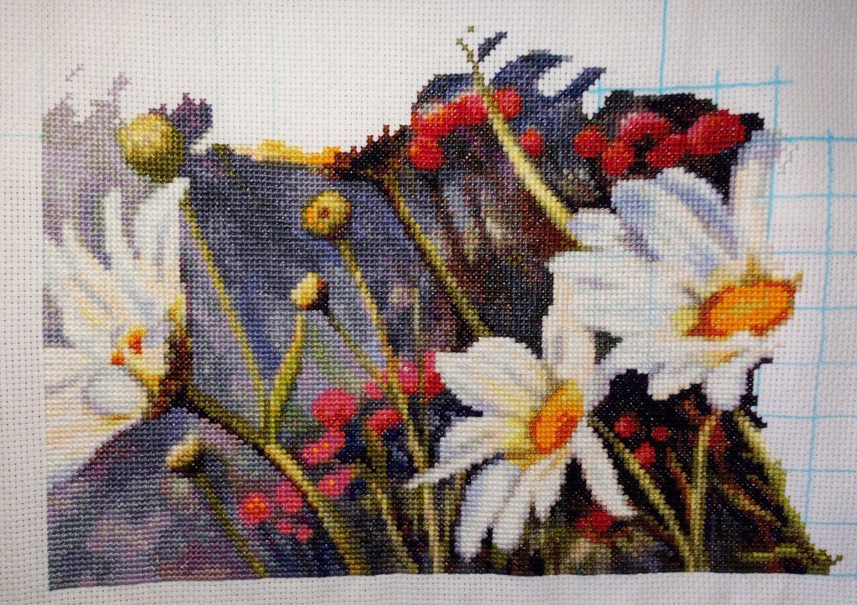 7 октября 2019 Что-то две недели выдались не особо вышивальные. Особенно конец сентября. Еле-еле успела вышить норму на Церкви в Овере. Было: Стало: Похоже, планирование - это все-таки не мое. Особенно, когда на целый год! Почему-то все время "прыгают в руки" не те наборы, которые стоят в плане. С другой стороны эти тоже продвигаются и это радует! А вот с Ромашками наоборот. Вышилось 2000+ крестиков и еще хочется! На этой неделе буду продолжать. Было: Стало: Не знаю, может, парковкой шить тоже удобно, но я избрала другую тактику. Беру кусок в 30 клеток по горизонтали на всю высоту листа (примерно 70-80) и в его пределах стараюсь отыскать все значки одного цвета. К ним цепляю следующий цвет и т.д. Нравится, как картинка проявляется. И объем, который получается, тоже нравится. Все-таки медленно дрейфую к "многоцветкам", к которым пока отношу Юнону, КК и Кандамар. На бОльшее не замахиваюсь, т.к. это будет очень долго! irisheckin, Kattrielle, TheSunniestDay и 12 других сказали спасибо Поделиться сообщением Ссылка на сообщение