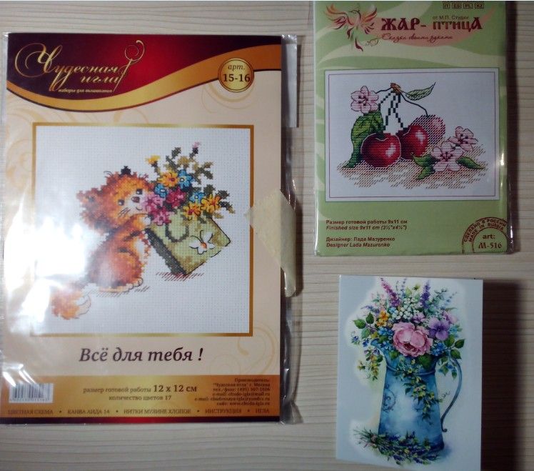 6 декабря 2020 Ну что ж, пришло время хвастовства!!! 1. Сундук сокровищ Эта игра полюбилась мне давно, участвую в третий раз. С почты тащила коробку весом почти 6 кг, из дома на почту - 7,5. Не знаю, почему так тянет оправдаться. Но я положила гораздо больше, чем взяла! Вот! Это взяла дочка. Коробочка с ее запасами растет! Первое фото - это целые наборы. Милую открыточку захомячила себе. Все остальное - остатки для подбора. Хотя, в Клубнике (косметичка) и наборах Неокрафт, скорее всего, ниток хватит на повторный отшив. Шовчики на синем - совершенно отдельная песня. Дочка внезапно оказалось фанаткой бэка, теперь вот и шовчики решила попробовать. Это я нахапала себе (остатки): Для Чертополоха от Панны уже придумала применение. Надеюсь в ближайшую неделю показать или, хотя бы, рассказать. Наверное, стартую в красивую дату 12,12,2020. Фаворит есть у меня в запасах в виде схемы с нитками Бестекс. Думаю. наступило время их заменить. ))) Ну и, против тряпочек устоять тоже не смогла: Осталось подобрать для них подходящие дизайны. Но море восторга уже имеется. Очень благодарна всем девочкам, кто сложил в эту большущую коробку свои "ненужности". Мне они очень даже нужны! 2. Черная Пятница В этом году у нас в городе появилась болталка вышивальщиц. Наша небольшая вышивальная компания тоже влилась в нее. И вот, девочки решили организовать "раздачу слонов" - обмен подарками между участницами группы. Распределили участников. Мне досталась девушка из группы, а мой феей оказалась Иришка Norna003 с нашего форума. И вот, она воплотила несколько из моих хочушек-схем в жизнь! Вы только посмотрите: Ириша, я тебя обожаю! Огромное-преогромное спасибо!!! Моя одариваемая на форуме не зарегистрирована, поэтому можно показать. Я ей дарю кактус от Волшебной страны: Канву купила себе, ниже покажу, для чего. Мир вышивки прислал симпатичный календарик с новинкой МП-Студии. Ну, я жеж, тоже туда же. Когда есть скидки, как тут устоять? Еще одна схема в мои Закрома: 3. Покупки Этот набор оказался у меня, можно сказать, случайно. Классический случай "любопытство+добрать до бесплатной доставки"! Покупали дочке толстовку на Озоне, а бесплатная доставка начинается с 1000. Ну и вот: Совершенно неизвестная мне фирма. Интересно было заценить комплектующие. Оказалось, состав вполне приличный: канва и мулине - от Гаммы. Отличная нарезка и удачный вариант схемы. Правда, белая канва мне показалась скучной, и я прикупила вот такую веселенькую от МП-Студии: Мне кажется, будет классно смотреться! Ну и, главный враг Непокупайки. Вот такой чудесный тигрище! Он промелькнул ненадолго в новинках, а потом пропал. И тогда я поняла, что он мне обязательно нужен! Опять же - всё "по классике". Начала его мониторить в трех магазинах и вот, он появился! Да еще и со скидкой. Ну, схватила, конечно! На Озоне увидела, что у какой-то, мне тоже неизвестной, фирмы есть похожие дизайны с другими животными. Видимо, по картинам какого-то художника. Олень приглянулся... Но я тут же закрыла страницу, убеждая себя, что мне это не надо! Магазин вложил интересные рекламки. Вот, посмотрите, я даже не знала, что Пермин выпускает и Аиду, а не только лён: Захотелось заценить, но в Геле не оказалось канвы 16го каунта. Жаль. 4. Волшебный интернет Думаю, вы все уже знаете, что я еще и "схемный маньяк". Коллекция давно уже исчисляется не штуками, а гигабайтами, т.к. оценить количес