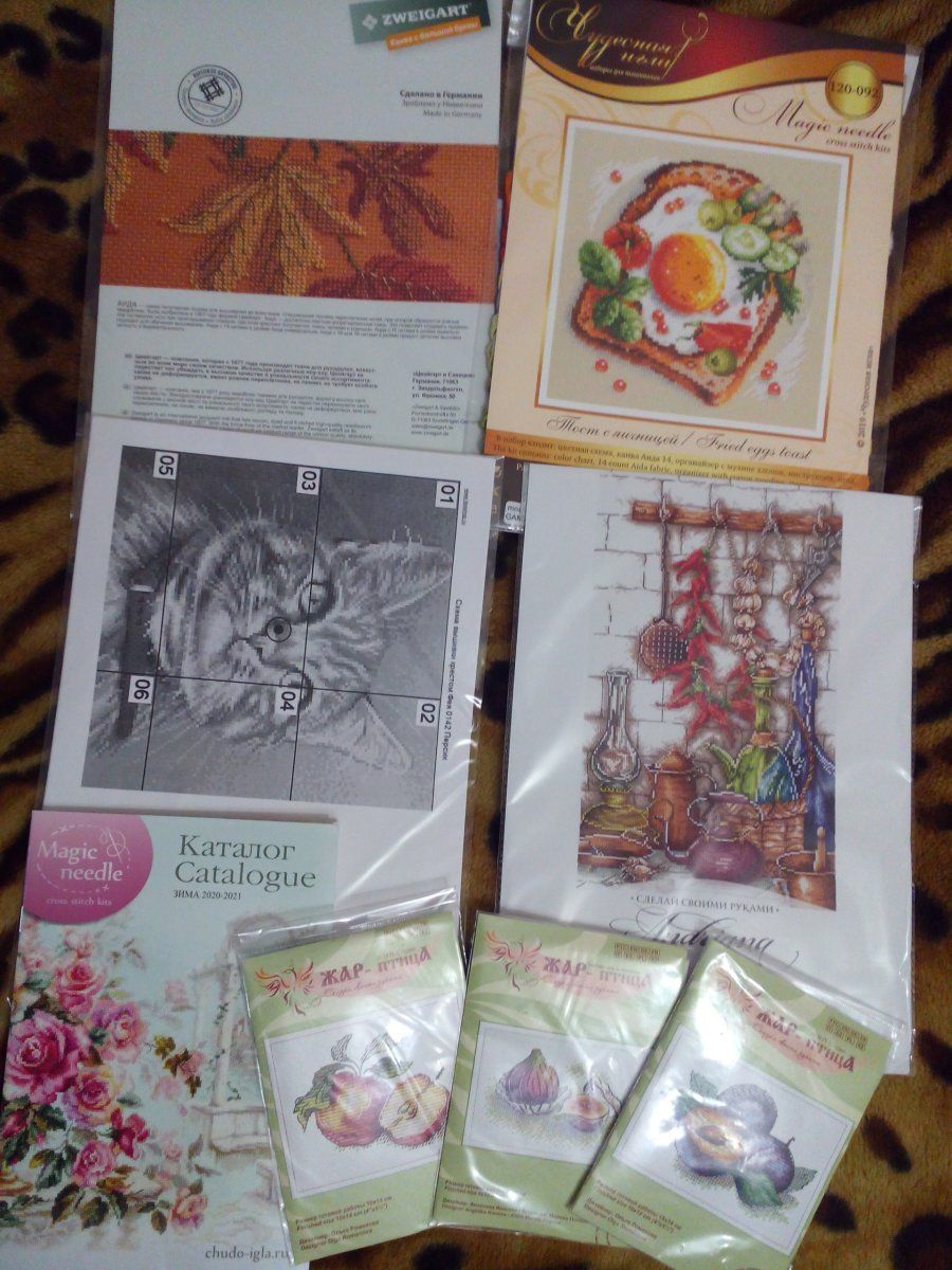 28 января 2021 Покупки. Заказ оформлен и оплачен перед НГ, просто долго ехал, а потом всё никак не могла собраться о нем написать. Вот, что приехало: Каталог наборов Чудесной иглы - сам по себе подарок. Очень люблю листать и рассматривать картинки. Сделала открытие, что некоторые наборы, оказывается, являются частью серий. Три симпатичных наборчика с фруктами для дочки: Схема "Персик" - портрет чудесного котейки. Захотела заценить, что за схемы создает интернет-магазин "Фея". Голубая канва для мережкинского кота на санках. И два набора для меня. Пряный уголок очаровал скопищем посуды и какой-то деревенской атмосферой. Тост с яичницей - яркое море позитива и хорошего настроения! Кроме этого, за январь купила конверты, в которых собираюсь систематизировать остатки ниток по производителям. Сейчас у меня их шесть и конвертов в магазине было ровно шесть! И мулине для нового ЛонгДога. Сейчас еще схожу, всё добавлю в "мешочек". Войлиса, Tari, Tatiana Ch. и 12 других сказали спасибо Поделиться сообщением Ссылка на сообщение