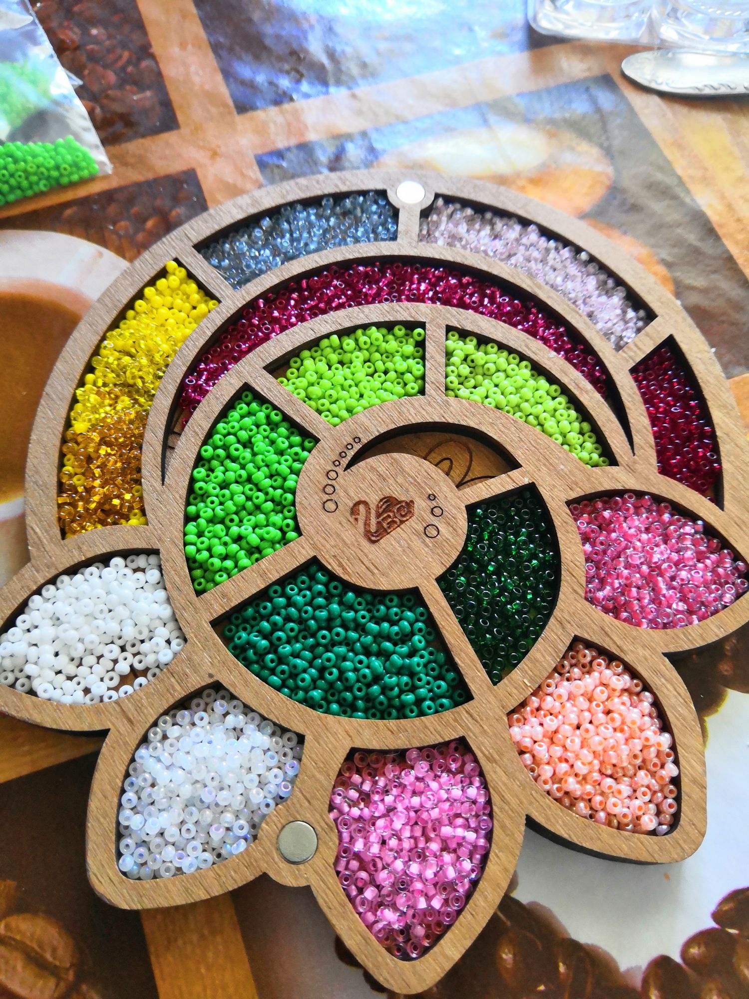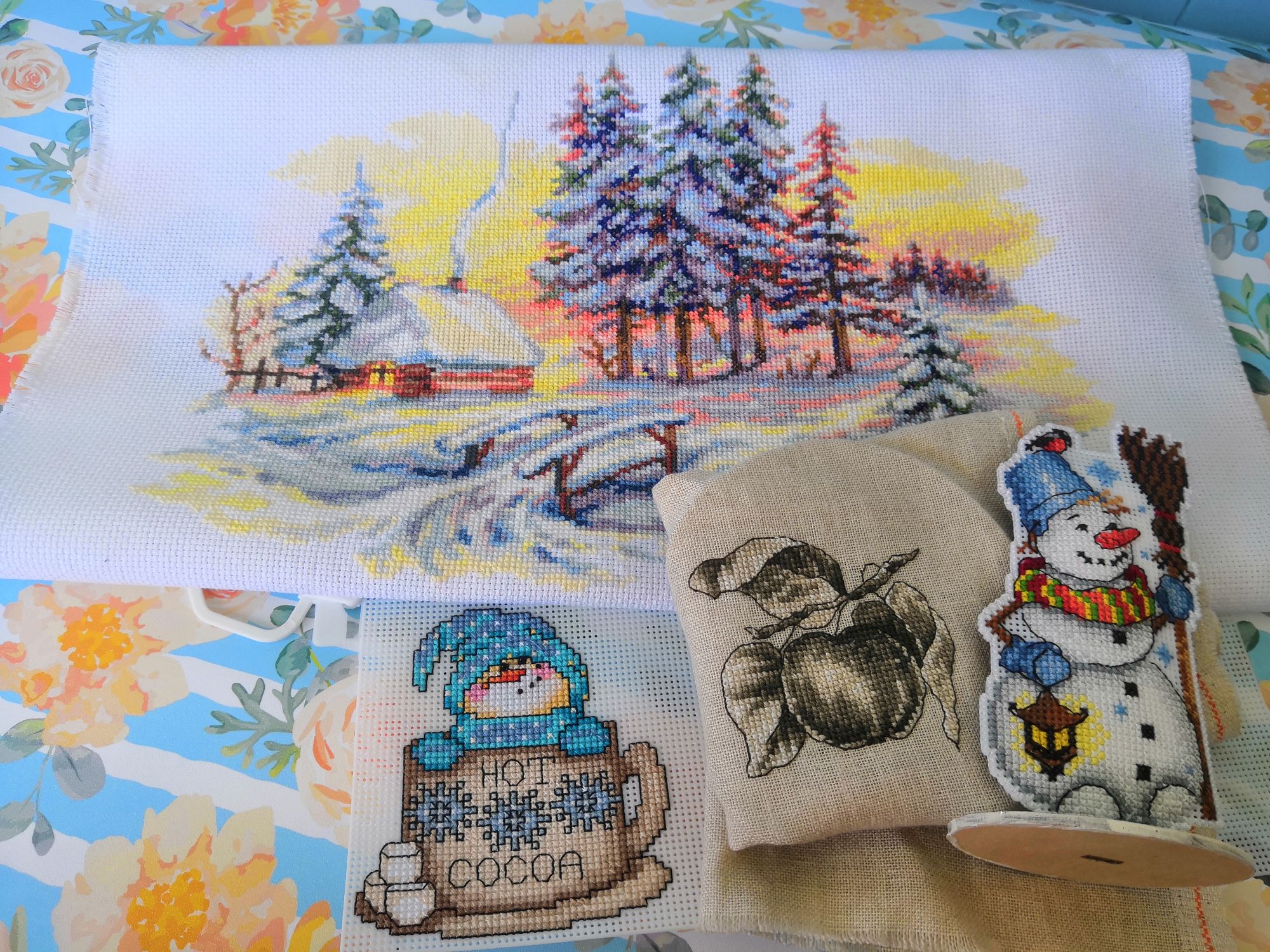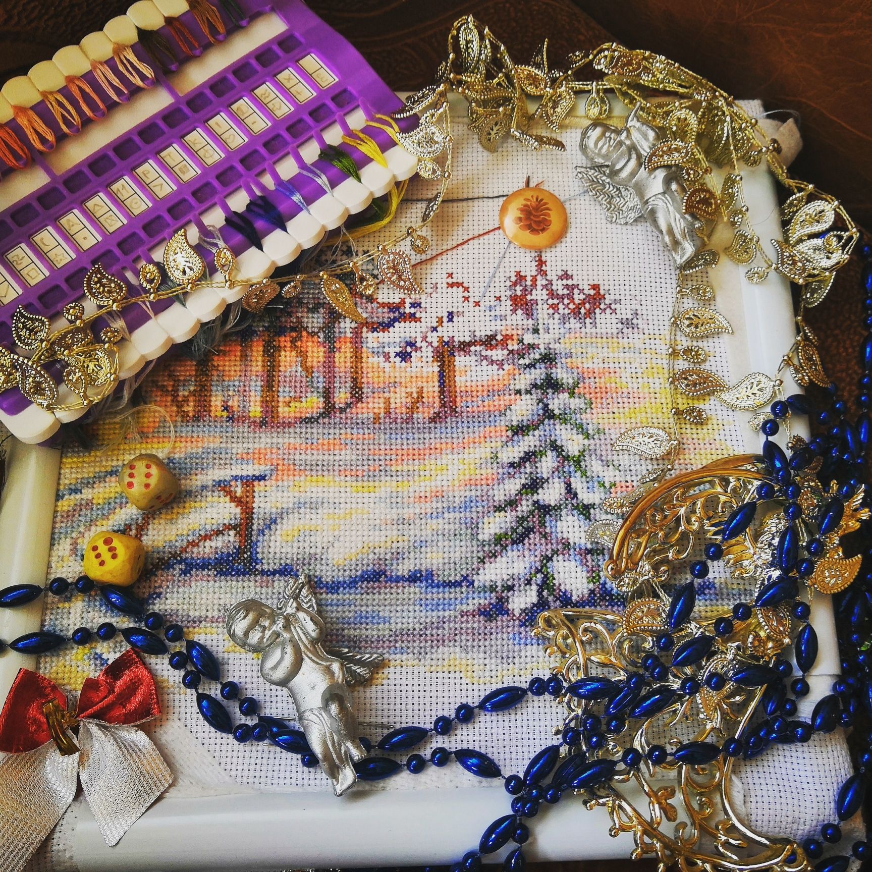 16 июня 2019 С праздником Святой Троицы! Мира, любви и уюта в Ваши дома! В прошлые выходные не успела отчитаться, т. к. сына не побаловал долгим дневным сном, отчитываюсь за две недели. Тем более показать есть что. 1.Для начала зеленим гаечку. Зимние красоты от РТО Было Стало Процесс принёс удовольствие от первого до последнего крестика. Комплектация на высоте. В общем первое знакомство с РТО прошло очень успешно. 2. Небольшой мини-финиш в снеговиках от design works, готов первый снеговик (осталось только помпончик на шапку пришить) Было Стало Бэка тут, конечно, море. У меня на него ушло два вечера. Но он такой простой и весь счётный, что совсем не напрягает. Появилась идея вышивать по 2 снеговика в месяц, тогда к концу лета этот процесс я полностью закончу. 3. У бабочки полностью вышилась одно крыло, вроде в последнее время вышивать её стало попроще, правда уже сломала 2 иглы на этом процессе. Было Стало По бабочкам тоже идея в голову пришла: в неделю вышивать по половине одного крыла, такими темпами за месяц будет появляться одна бабочка. 4. Ну а поскольку зимние красоты я закончила, бабочку разбила понедельно,то взялась за завершение следующего процесса. Честно говоря, я хотела сегодня его уже готовым показать, но он так тяжело идёт, что пока что только продвижения, а закончить постараюсь к следующим выходным. Toile Fruit Ornaments (яблоко) Было ((Уважаемые модераторы, добавьте эти фото в гаечку, а то их там нет) Стало : 5. И ещё одно возвращение из дальних глубин шкафа. Освободив органайзер от оставшегося после сирени бисера я решила временно расположить там бисер для садовых роз. И что - то мне так итог понравился, что видимо там он и останется, а в новый органайзер, который заказала для этого процесса буду размещать бисер для бабочек и новогодних игрушек. (фото не для гаечки) : Ну а раз бисер разместила, то надо было попробовать как с такой организацией вышивка пойдёт. И, скажу я Вам, неплохо пошла. На фото результат трех обедов (вечером пока руки не дошли до бисера) Садовые розы. Было Стало Из вышивального на этом всё. Из рукодельного покажу небольшие покупки из Леонардо Скрап-бумага, которую я использую в качестве фотофона и бусины для помпонов снеговиков. И моя радость: в конце весны начали понемногу обкстраивать лоджию, которую я планирую превратить в свой рукодельный уголок, глобальный ремонт с заменой окон и утеплением предстоит значительно позже, поэтому основательно я пока там не обустраиваюсь. Но уже приобрели стеллаж и я собрала на него почти все свои рукодельные запасы. Надеюсь, однажды лоджия превратится в очень уютное место, ну а пока радуюсь тому, что есть Нерукодельная часть будет позже, сына уже проснулся. Пушистая, InnaN, maui и 12 других сказали спасибо Поделиться сообщением Ссылка на сообщение