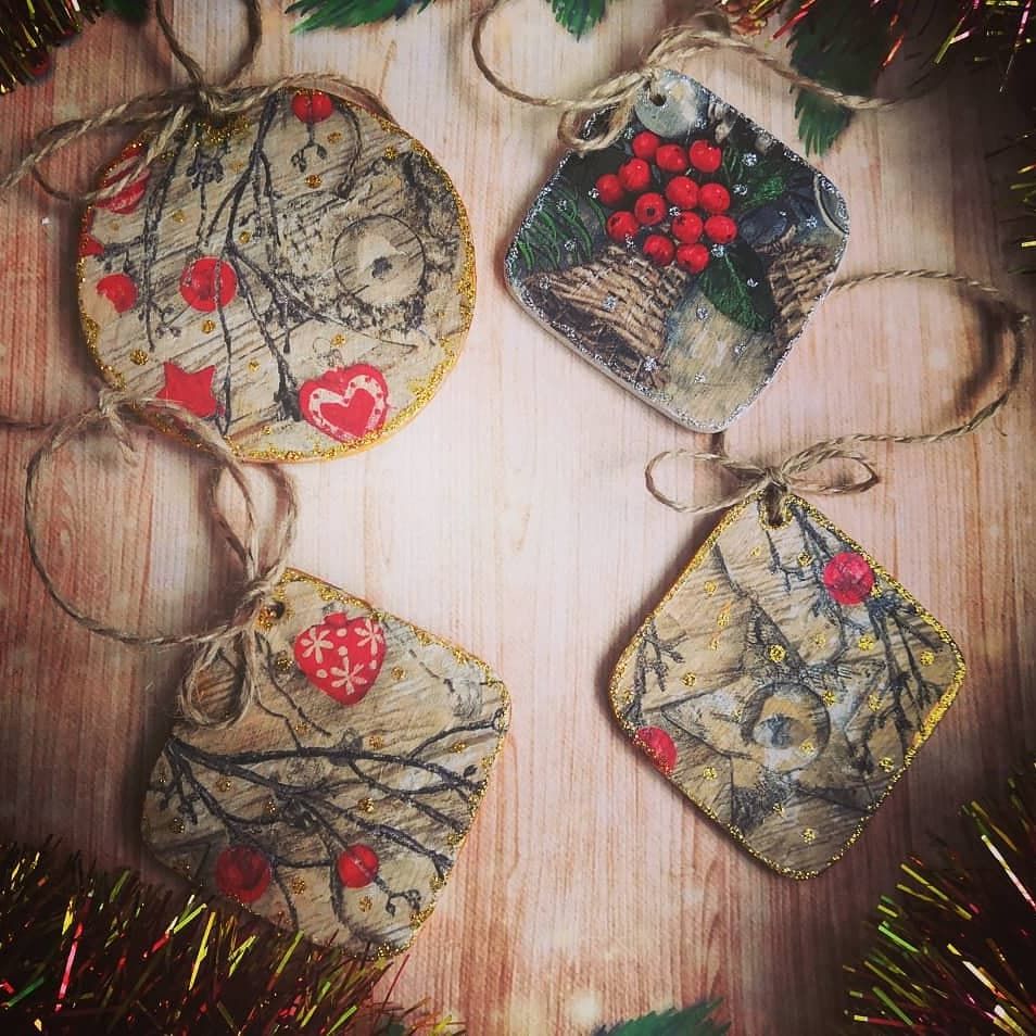 2 января 2020 Ну а теперь можно начинать подводить итоги. Начну со статистики за декабрь: - полностью вышит один наборчик из запасов (домик) . - 1 набор - закончен один текущий процесс. - ничего не куплено. Итого на конец декабря и на конец года у меня 12 процессов (7 старых и 5 этого года) и 30 наборов в запасах. Это на один процесс и один набор меньше, чем было в начале 2019 года. Кроме того в запасах 8 авторских схем, это на 1 больше, чем было в начале 2019 года. Так что в принципе за год ни мои запасы, ни мои процессы не "разбухли". И общее фото работ, законченных за ноябрь - декабрь (и вышивка, и вязание) Кроме этого в последние дни уходящего года успела сделать небольшие сувениры для родных - ёлочные игрушки в технике декупаж Прошу строго не судить, это был второй опыт декупажа, причём на первом я просто изучала что да как. Хозяйка смешных зверей, Marusya1978, Catopuma и 7 других сказали спасибо Поделиться сообщением Ссылка на сообщение