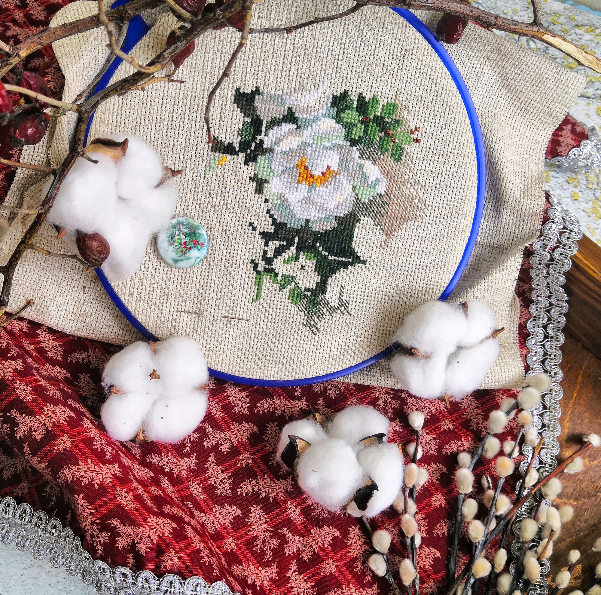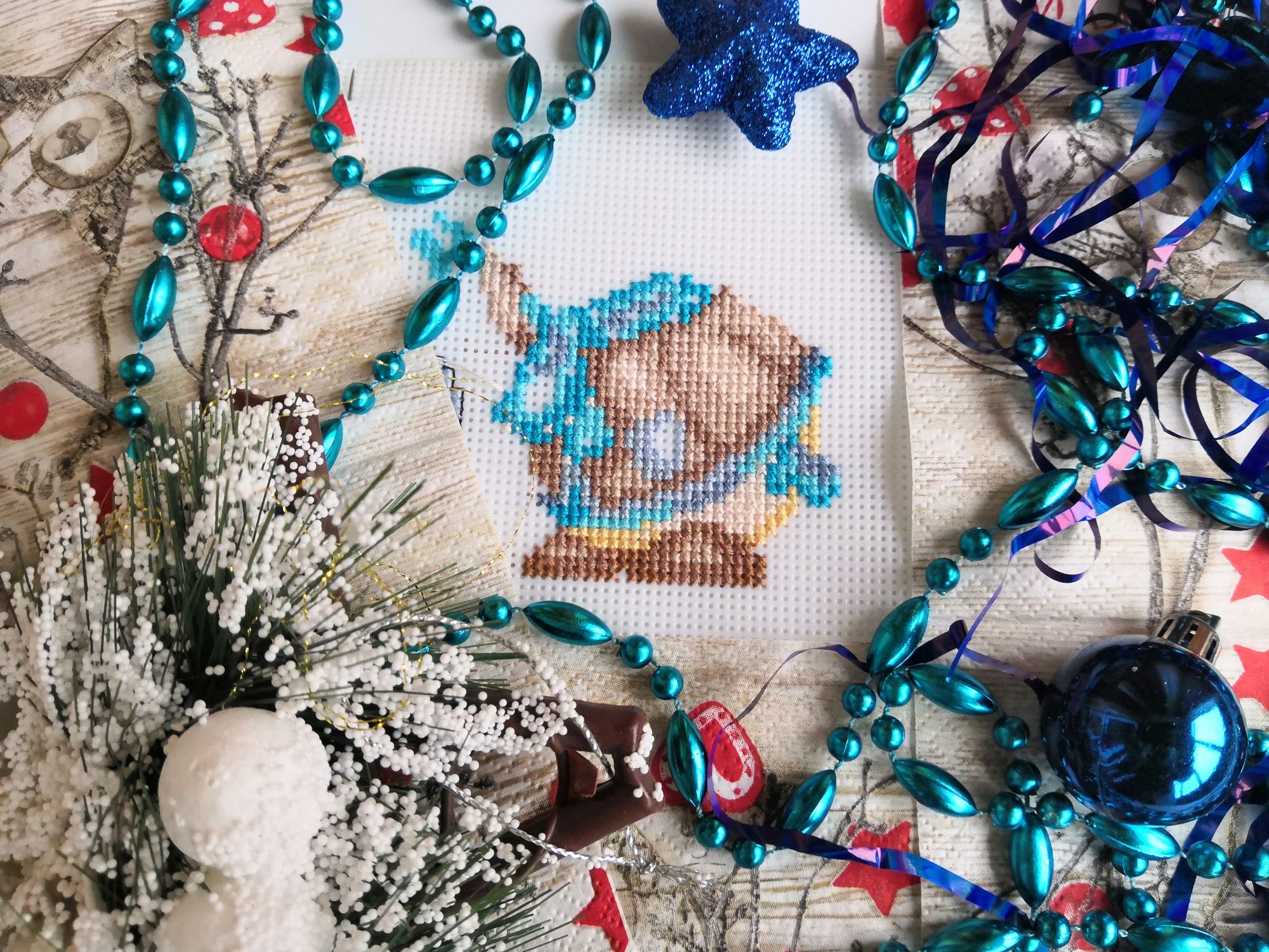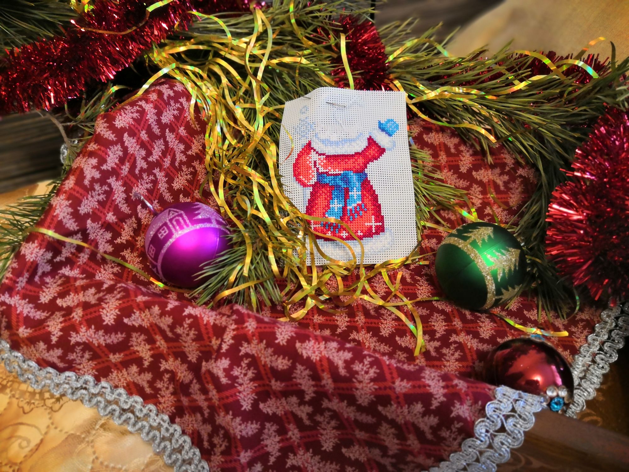 12 января 2020 Всем привет! Вот и подошло воскресенье, пора бы уже и отчитаться. В прошлый раз не показала рукодельные подарки, полученные мной на Новый год. Родители сделали вот такой шикарный поднос А мужу заказала набор для вышивки в ковровой технике, давно хотела попробовать С мамой сделали рождественскую салфетку (ткань соответствующую теме обшили кружевом, получилось очень фотогенично, дальше на фото Вы её увидите, теперь задумалась над такой же весенней). Провела "ревизию" всех своих начатых процессов, на 10 января это выглядело так : Пока настрой сократить количество начатого. 1. Первым на очереди дед Мороз от Жар-птицы. Было в конце декабря: Передняя сторона И столько нашито на второй части (немного не успела довышивать) 2. До Нового года ещё немного продвинула "белый шиповник" от Риолис. БылоСтало Из вышивального на этом всё. На Рождество к нам пришла зима, приятно было наконец-то снег увидеть: А вернулись в город, здесь снегом и не пахло, но через полтора дня и в Воронеж зима заглянула : Это когда всё засыпало огромными хлопьями снега: А это уже после снегопада : Всем хорошей наступающей недели! ОльгаТольна, Marusya1978, irchick2308 и 12 других сказали спасибо Поделиться сообщением Ссылка на сообщение