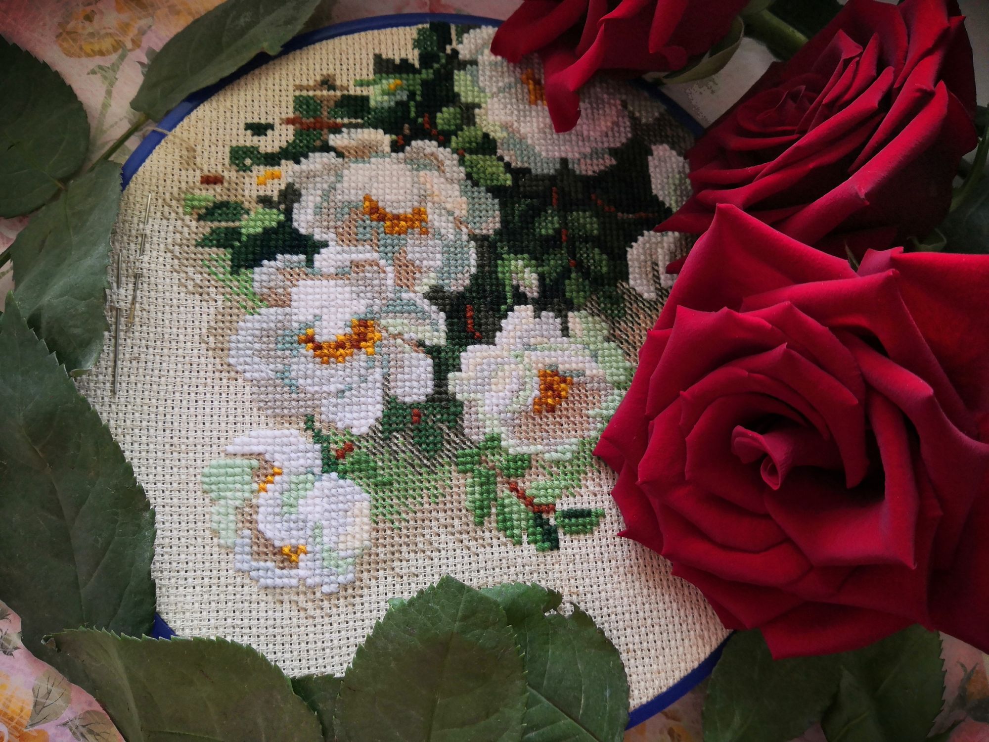 29 февраля 2020 Вот и последний день этой незимней зимы наступил. Такая странная погода и отсутствие солнца никак не настраивали на творческий лад, не хотелось ни фотографировать пейзажи за окном, ни сочинять что-либо, да и новые идеи не хотели приходить в голову. Оставалось не творить, а "заниматься ремеслом" и подтягивать многочисленные вышивальные хвосты, накопившиеся за прошлые несколько лет. Ну а теперь всё же скажем зиме : "До свидания!" И перейдём к вышивке. 1. Ожидаемо финишировал "Белый шиповник" от Риолис. Это был один из стартов в прошлом апреле-месяце стартов и вот работа готова (из апрельских стартов 2019 года остался только один процесс). Было Стало Это один из самых любимых мною дизайнов у Риолис. Давно хотела его вышить, но сначала всё никак не могла купить набор, а затем, начав его в апреле, зависла на первой паре сотне крестиков и никак не могла продвинуться дальше. В итоге перед Новым годом процесс наконец-то "попросился ко мне в руки" и до самого финиша я уже больше не откладывала его. Информация для тех, кто будет вышивать этот набор в новой комплектации: поаккуратнее с оттенком №9. Я читала, что у некоторых даже экономя нитки, этого оттенка не хватило, поэтому я сразу решила, что подберу этот цвет из остатков и экономить не стала. В итоге верхнюю толстую веточку и верхнюю тонкую левую веточку я вышила из остатков, остальное вышивала нитками из набора и у меня осталось немного оригинальных ниток. У меня сложилось впечатление, что с моим количеством оригинальных ниток их бы хватило, но только в случае постоянной экономии, а может быть и не хватило на 5-10 крестиков. В общем, аккуратнее. 2. После шиповника взялась за следующий процесс от Риолис "Баночки с вареньем" . Все половинки вышиты, но гаечку пока не зеленим, т. к. впереди ещё сборка. Было Стало Стало Кроме этого удалось неплохо продвинуть "Подарок для мамы", но сегодня без фото, т. к. вышиваемый нынче участок представляет собой россыпь крестиков, часть из которых уже вышита, а часть - нет. Так что, надеюсь, показ будет в следующем отчёте. Ну и поскольку подошёл конец месяца, то пришла пора статистики. Закончено 3 процесса (здесь я всё же посчитаю баночки, как законченную работу, в отличие от гаечки). Начато 0 процессов (сама себе удивляюсь) Итого на начало месяца в работе было 13 процессов, на конец месяца - 10 (1 процесс 2020 года, 2 процесса 2019 года, 5 процессов 2018 года, 1 процесс 2017 года, 1 процесс 2011 года) Ничего не куплено (вернее заказ в ИМ сделан, но придёт уже в марте, тогда и посчитаю), в запасах движения ни в плюс, ни в минус нет. Итого на начало и конец месяца 28 наборов и 8 авторских схем в запасах. В целом итог за февраль меня порадовал. Ну и поскольку в прошлом году мне очень понравилось подводить промежуточные рукодельные итоги раз в два месяца, то и в этом году я решила продолжить эту практику. Общий итог на фото: И в плюс к нему уже подаренная корзинка из текстильной пряжи. В планах было 3 вышивальных финиша, и 3 невышивальных (а просто рукодельных финиша). В итоге получилось 4 вышивальных и 3 невышивальных финиша. План на январь - февраль выполнен (правда я предполагала некоторые другие финиши, но главное по цифрам мы сошлись). Посмотрим, что удасться нарукоделить за март-апрель. Ну а всем заглянувшим желаю отлично проводить Масленицу и встретить весну. Nadinka-Blondinka, Marusya1978, irchick2308 и 7 других сказали сп