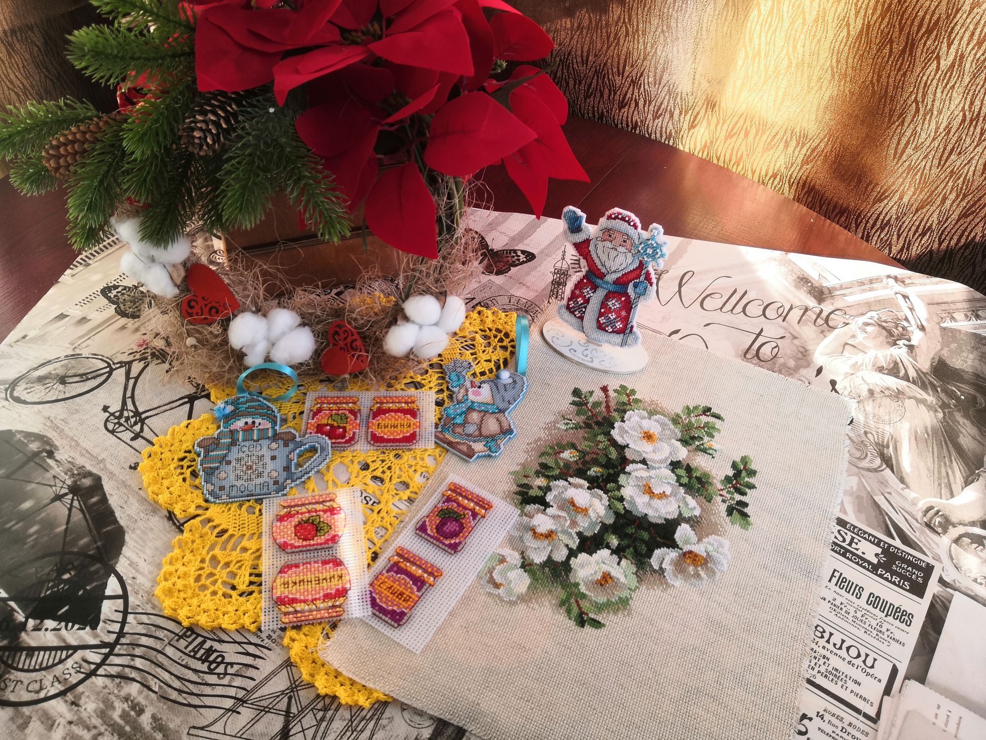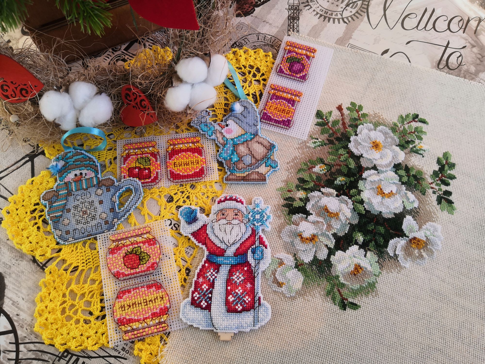 15 февраля 2020 Всем привет! Отчитаюсь сегодня, т. к., что сегодня, что завтра у меня невышивальные дни и соответственно никаких продвижений не будет. Начнём по порядку. 1. Зеленим гаечку со снеговиками "Кофе и лёд" от design works. Как давно я хотела вышить этот дизайн и наконец-то он готов. Все в сборе с помпонами И в законченном виде (решила сделать из них гирлянду) Ещё один апрельский старт закончен, осталось два и я надеюсь, что один из этих двух тоже вскоре финиширует. 2. А вот, собственно, и он "Белый шиповник" от Риолис. Было Стало Заметила за собой интересную особенность в этой работе : как только переставила пяльца и впереди большой незашитый участок, то мне сложно себя заставить взяться за него, а когда уже есть вышитые крестики, то не могу себя оторвать от него, хочется заполнить поскорее всё доступное пространство. Вот и этот участок дошила в спешке, а теперь уже несколько дней не брались за эту работу. 3. "Баночки с вареньем" всё от того же Риолис. Продвигаются неспеша, согласно плану, по одной стороне баночки в неделю. Может позже возьмусь за них активнее, но пока в приоритете другие процессы. Было Стало На этом всё на сегодня, ещё довязала салфетку, но пока не успела её постирать-погладить и устроить ей фотосессию,так что покажу в следующий раз. Гало4ка, Любушка1985, Egelia и 7 других сказали спасибо Поделиться сообщением Ссылка на сообщение