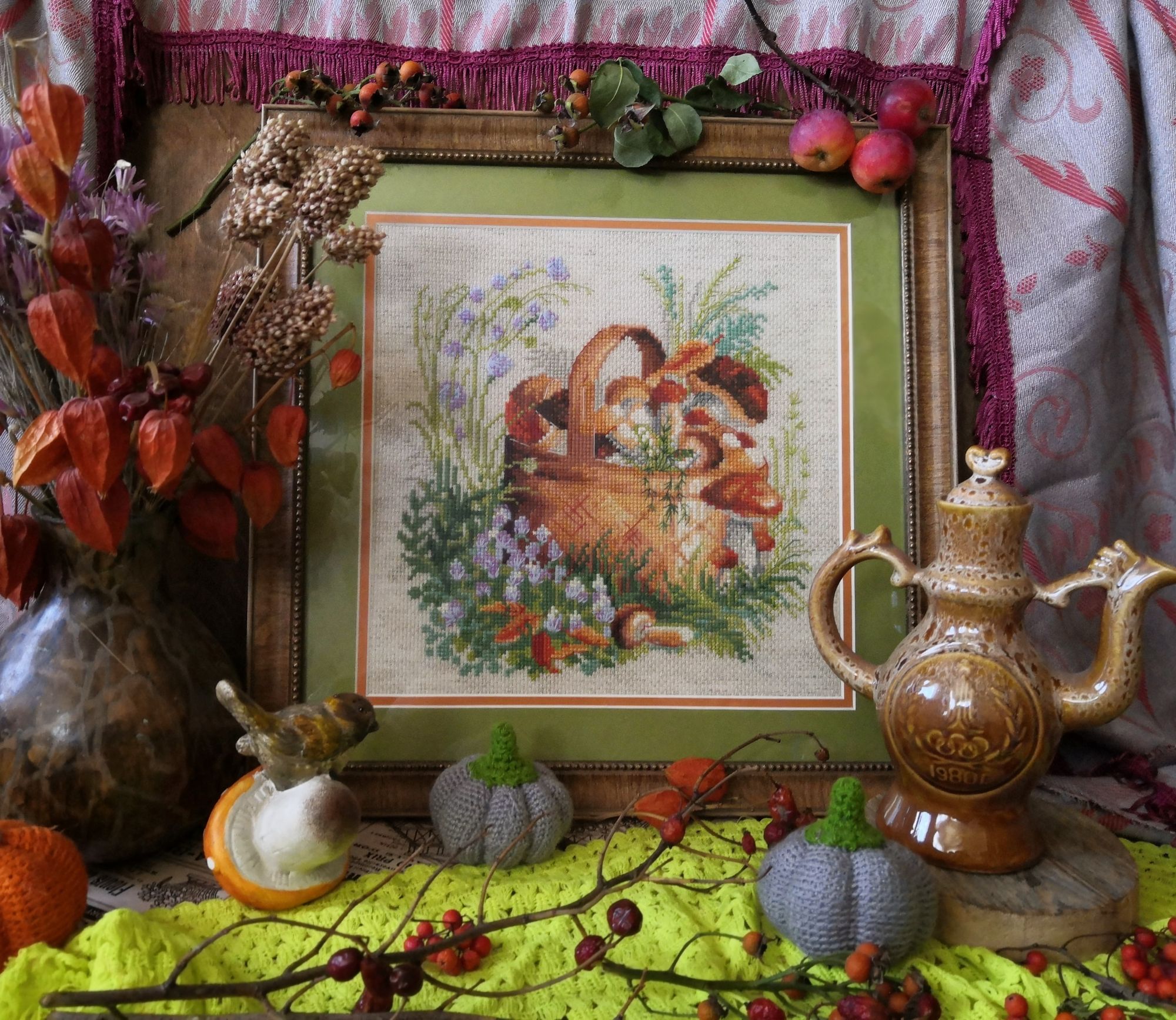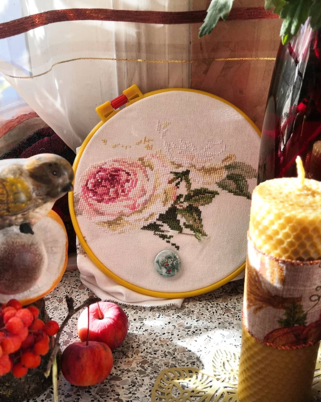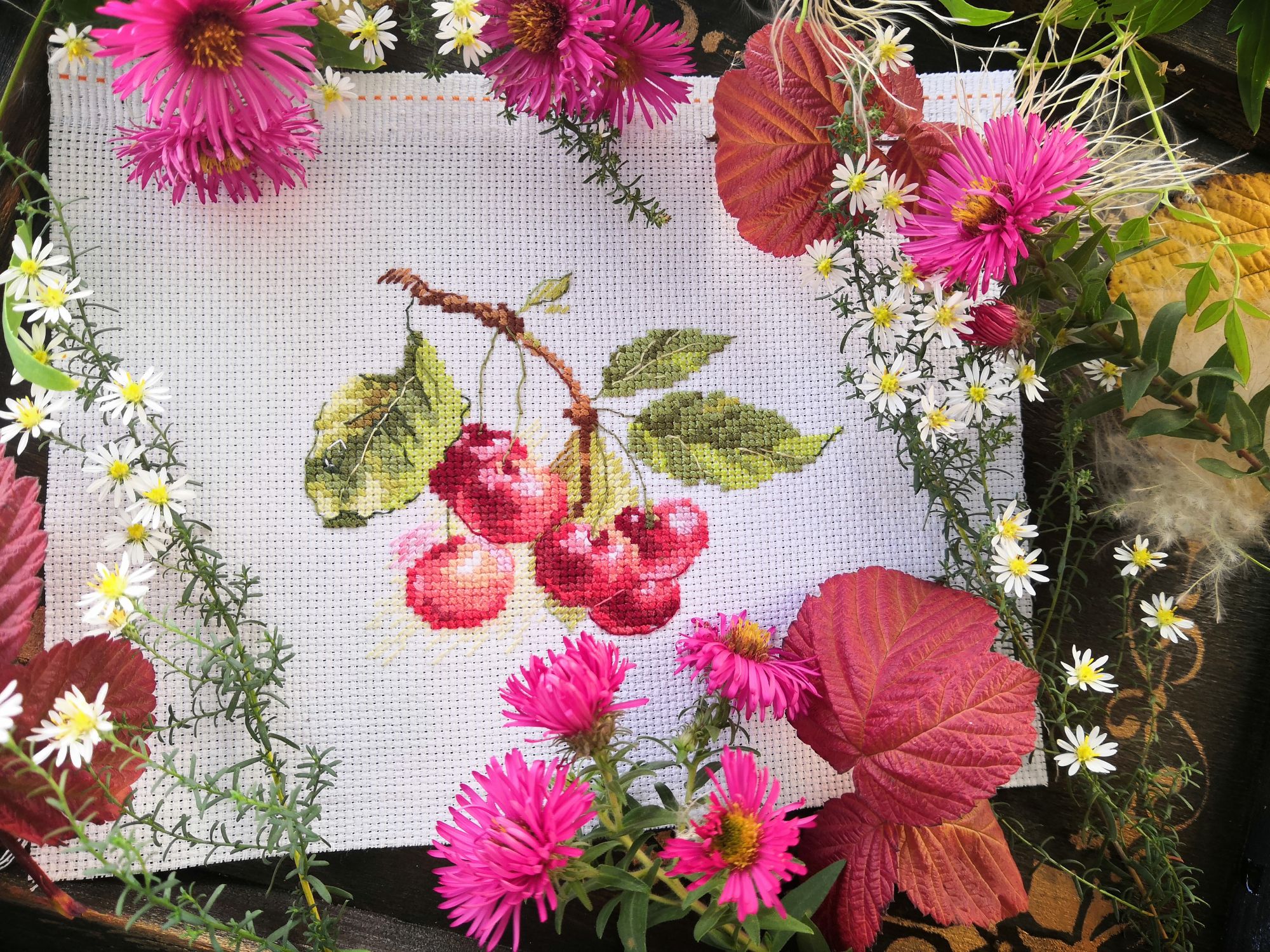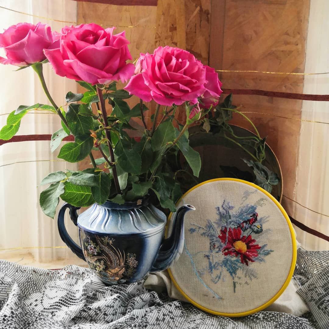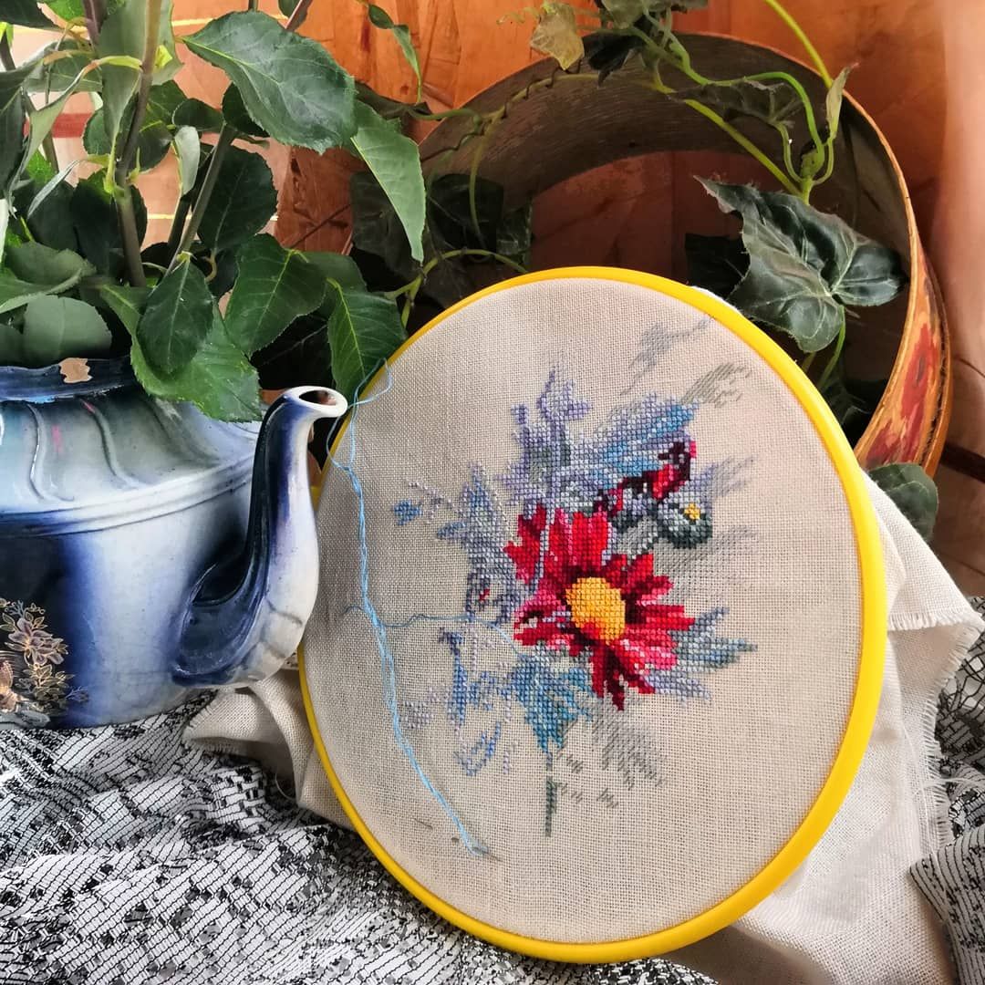 18 октября 2020 Всем привет! Вот и пролетели очередные две недели года, пора показать, что у меня навышивалось и нафотографировалось за это время. А фотографий накопилось порядочно. И я всё больше прихожу к выводу, что отчёт раз в 2 недели является оптимальным: и показать есть что, и не слишком надолго пропадаю с форума. Правда и писать много приходится. Начнём с вышивальных новостей. 1. Оформительское. Ёжик от Жар-птицы оформился в мешочек для детского белья. Жасмин от Риолис оформился в багетке в раму. Но покажу его попозже, поскольку он в упаковке до того момента пока не будет подарен. 2.Финиш. Предсказуемо финишировали Вишни от Алисы (спасибо плакату с заданиями вышивальщицы за ускорение этого процесса) Было Стало И две самых значимых для меня вышивки вместе Крыжовник начинала в роддоме перед первыми родами, вишни - тоже в роддоме, перед вторыми. 3. Продвижения. Две недели подряд, выделенные на борьбу с долгостроями позволили продвинуться красным хризантемам от Марьи Искусницы. Было Стало И самое главное достижение, я решила их не откладывать после окончания этих двух недель, а продолжить вышивать. И даже уже придумала ротацию для некоторых своих процессов, в которую отлично вписались эти хризантемы. И всё бы было замечательно, если бы чудесная игла не выпустила свои новогодние новинки. Я очень редко покупаю новинки сразу после выхода, обычно хочушка должна "вылежаться" в моем вши-листе. А тут не удержалась, заказала. Так что как приедет, сразу начну, до Нового года надо успеть отшить и оформить. (плюс ещё два обязательных новогодних дизайн из коллажа). А пока держу курс на сокращение количества процессов и удобнее всего это делать с помощью отдыхалочек, которых в последнее время многовато у меня развелось. Поэтому следующие продвижения покажу в пиратских магнитах от Жар-птицы. Было Стало На этом с вышивальным всё. Дальше пойдёт нерукодельное. Похвастаюсь покупочкой,увидела в магазине такой чудесный заварочный чайничек, не удержалась купила (причём цена вполне демократичная была) Купила, принесла домой, а потом сообразила, что у меня уже целая мини-коллекция собралась в таких оттенках Неделю назад мы таки выбрались к родителям. Я, что называется, "дорвалась" до маминых запасов винтажных вещей и до её садовых цветов, поэтому вволю нафотографировала разных натюрмортов. Буду показывать частями Этот ещё дома снимала А эти уже у родителей Остальные фото пока не разобраны и не отредактированы И немного нашей осени Иногда так похожей на лето: Но как бы то ни было, осень перевалила через свой экватор и всё ближе и ближе Новый год. Так что скоро будем приниматься за активную подготовку. Теперь точно всё, что хотела показать и о чем рассказать - показала и рассказала. Отличных осенних денёчков Вам и крепкого здоровья! ОльгаТольна, Marusya1978, Гало4ка и 6 других сказали спасибо Поделиться сообщением Ссылка на сообщение