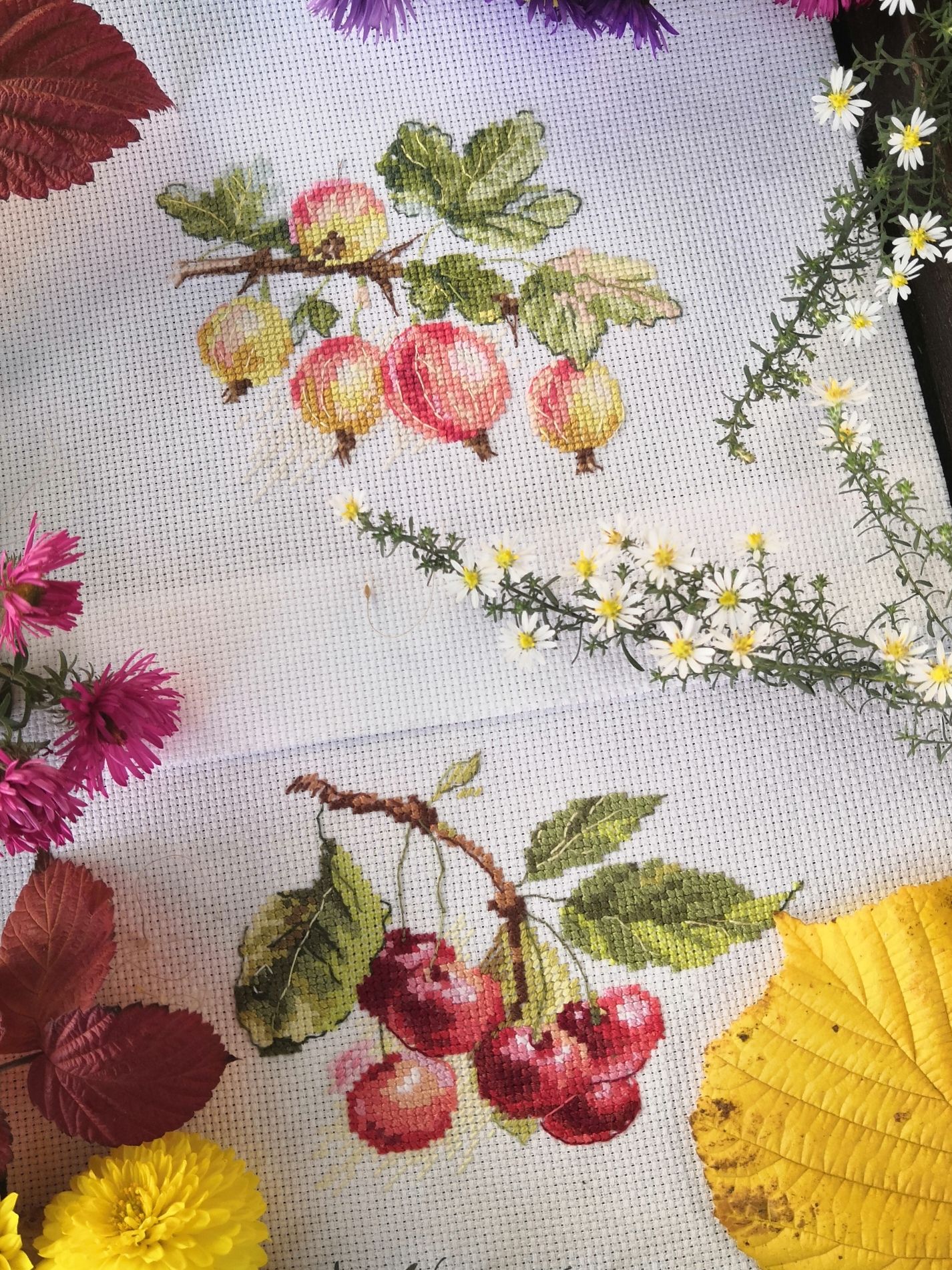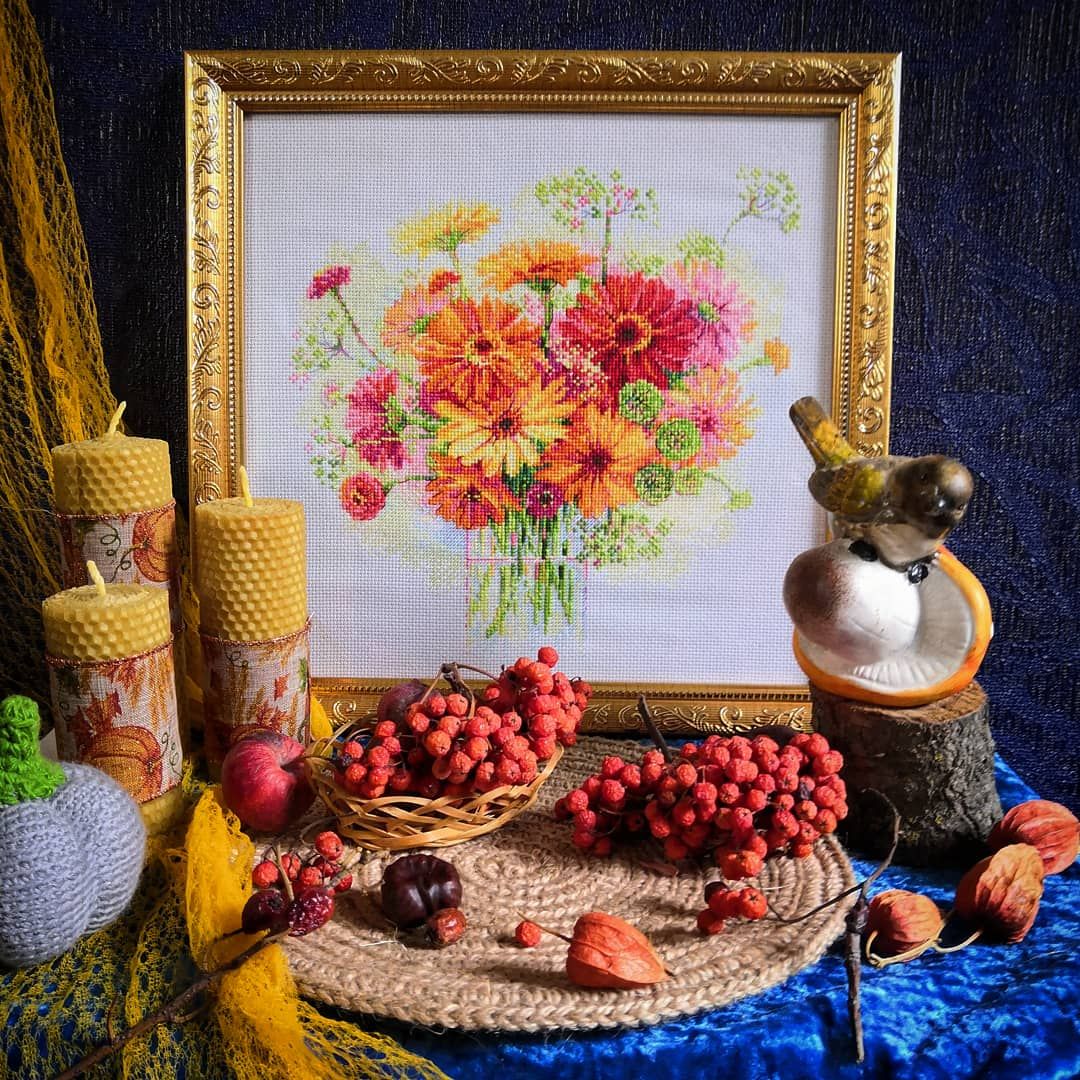 4 октября 2020 Всем привет! Очередные две недели пролетели, пора показать, что у меня за это время нарукоделилось и нафотографировалось. Начнём с вышивки. Во-первых, у меня произошёл полный раздрай, что, когда и следом за чем вышивать. В итоге хваталась то за один процесс, то за другой. С учётом того, что свободного времени сейчас с гулькин нос, итоги всего этого были довольно - таки удручающие. "Так дальше нельзя! " - решила я и села составлять вышивальные планы на остаток осени. Написала один вариант, посмотрела на него - не вдохновляет, написала другой - та же история. Как оказалось, только наличия планов мне мало, они должны быть ещё максимально наглядны. Стала делать третий вариант. И вот он наконец-то меня полностью устроил. Два коллажа. Первый - начатые процессы, которые я хочу закончить в идеале до конца осени, в реальности, скорее всего, крупные работы займут ещё и часть декабря : Второй - новогодние дизайны, большую часть которых буду вышивать в декабре, но что-то начну и раньше С планами определилась и перешла к их реализации. В первую очередь закончила ёжика от Жар-птицы "Сладкая находка" Было Стало Продолжила "Вишни" от Алисы. Вернее, я собиралась закончить их до начала октября, но, видимо, в лучшем случае, к середине октября закончу. Было Стало Ну а с наступлением осени в руки стали всё чаще проситься осенние процессы (дальше не в гаечку) . Немного подросли тыквы от Марии Бровко "На пороге зимы" Было Стало В рамках недели борьбы с долгостроями достала "Красные хризантемы" от Марьи искусницы. Так они выглядели на старте Пока ещё вышиваю и прошу пожелать мне удачи. Процесс хоть и небольшой, но идёт очень трудно. А теперь, раз очередной месяц закончился, перейдём к статистике В сентябре у меня было 2 новых старта и 1 финиш. Таким образом на конец месяца начато 12 процессов, ничего не куплено,в запасах 32 набора и 9 авторских схем. А процессы сентября выглядели вот так: С рукодельным на этом всё. У нас в самом разгаре сезон золотой осени. На прошлых выходных выбрались в центральный городской парк, полюбовались на осеннюю природу. А это сквер около дома Красиво, но очень быстротечно. А я всё больше и больше увлекаюсь натюрмортами и предметными фото. Правда от летних красок уже перешла к осенним: Скрытый текст Младшему сделали анализ. По результатам анализов аллергии у него нет. Откуда тогда красные пошелушенные щеки непонятно. В начале недели город практически был окружён пожарами. Горело около 150 га. Сушь, ветер, трава загорается как порох. В области в одном селе сгорело 25 домов. Жуть! Дожди нужны. Пока на 3 недели запретили посещать леса и ввели режим чс из-за пожаров. Ну и закончу на приятной ноте. Вчера наконец-то выбралась в парикмахерскую, привела волосы в порядок, обстригла все посеченные концы, теперь можно дальше отращивать. На этом точно всё. Здоровья всем и продуктивной осени! InnaN, ОльгаТольна, Полли и 7 других сказали спасибо Поделиться сообщением Ссылка на сообщение