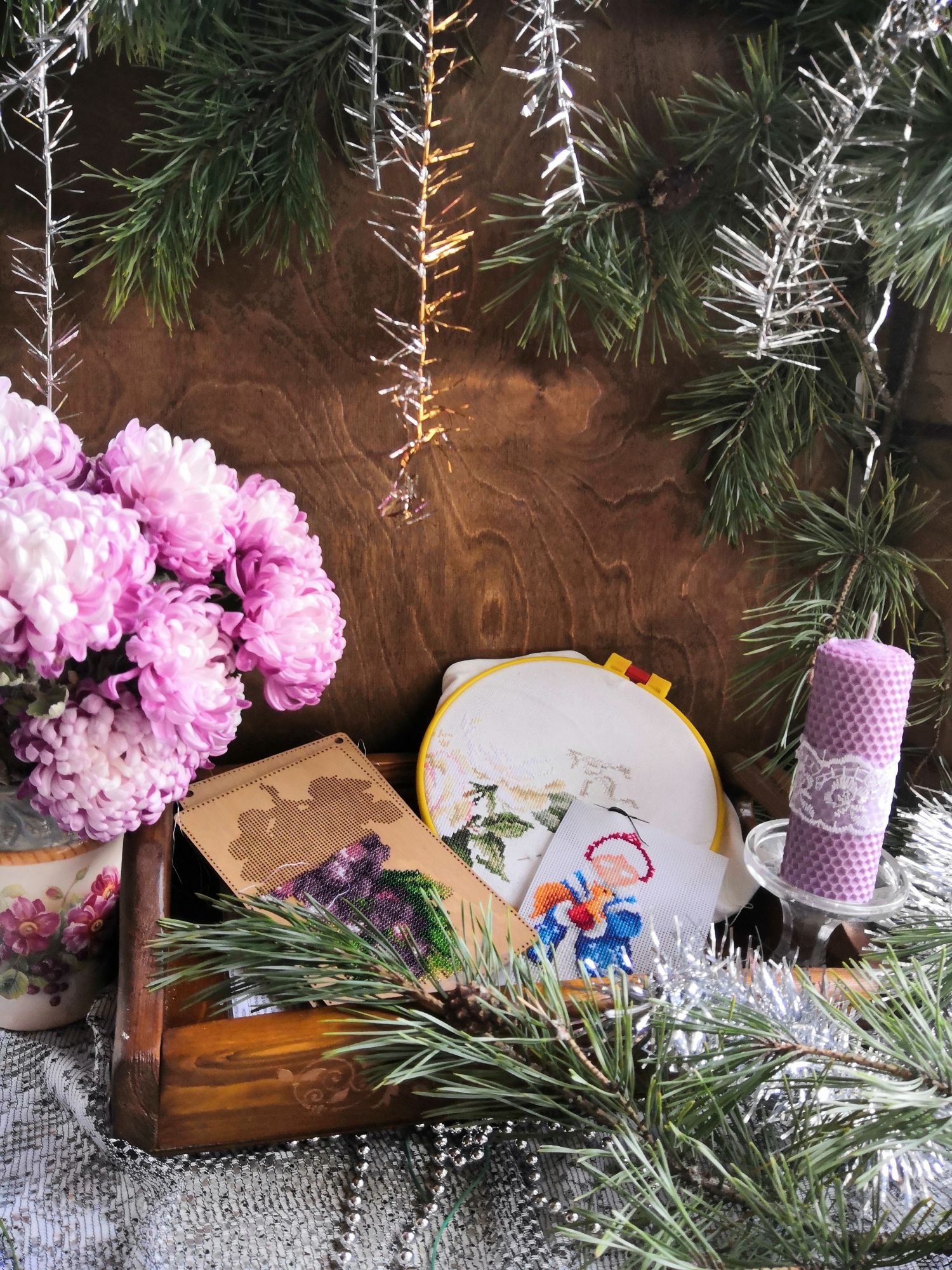 29 ноября 2020 Ну а теперь и время отчёта подошло. Но для начала хочу поздравить всех мамочек с днём Матери! Пусть Ваши дети почаще радуют Вас! Будьте здоровы, счастливы и любимы! А теперь к вышивальным новостям. 1. Закончила последний магнит из набора Пиратских магнитов. Осталась сборка, но она застопорилась из-за отсутствия клея. Так что пока полежат вышитые, но не оформленные. 2. Продвинула бисерный органайзер от Волшебной страны. Было Стало С продвижениями на этом пока всё. В парочке процессов тоже крестиков прибавилось, но пока без фото. Зато перефотографировала несколько ранее оформленных картины прошлых лет А мой "покупательный" ноябрь продолжается. Купила со скидкой схему от Химеры "Регата" , заказала 8 наборов от Волшебной страны и на пробу наборчик от Вышивариума. Буду ждать, когда придут. И в конце месяца, как обычно, подведу статистику. На начало месяца в работе было 12 процессов, 1 закончила, новых стартов не было, поэтому декабрь я встречаю с 11ю процессами. Количество наборов увеличилось на 1 (считать буду только те наборы, которые уже получила, а это пока только 1 набор от Чудесной иглы). Итого в запасах 32 набора. Количество схем увеличилось на 5 штук, итого 14 схем в запасах. А процессы ноября выглядят в этот раз вот так Такое переходное фото от осени к зиме. А с осенью хочу попрощаться таким сезонным букетом. До встречи в декабре. ОльгаТольна, Гало4ка, maui и 5 других сказали спасибо Поделиться сообщением Ссылка на сообщение