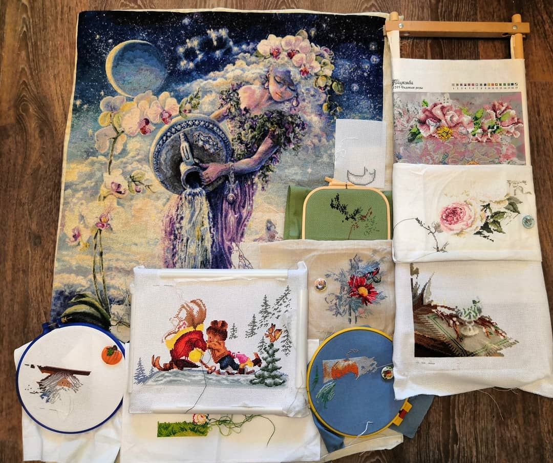 31 января 2021 Всем привет! Кратенький отчёт за предыдущие две рукодельные недели. На самом деле показать бы хотелось побольше всего, но, прошу понять и простить, времени, чтобы сфотографировать всё., что хочу показать катастрофически не хватает, приходится выбирать. Вот я и выбирала. Для начала решила зафиксировать отправную точку этого года (пусть и не с первого января, но я решила всё - таки сфотографировать все свои начатые процессы, ибо такие фото очень меня потом мотивируют на вышивку. И на 20 января мои процессы выглядели вот так : Для сравнения фото образца начала января прошлого года Изменений, конечно много, что радует. Большие процессы продвинулись не очень сильно, что в свою очередь не радует. Работ стало меньше и их состав обновился практически наполовину, что тоже плюс. И ещё интересный момент : получилось так, что в январе у меня активными были 3 процесса, и все на зимнюю тематику, на моей памяти такого единообразия в активных процессах у меня ещё не было Затем я продолжила организовывать хранение рукодельных запасов на лоджии и попутно сфотографировала все свои наборы Правда на фото не попали 2 набора - физалис от фрузелка и рождественская полка риолис, просто в какой-то момент забыла положить их в общую коллекцию. А затем ко мне в руки наконец-то попали покупки, которые мы с коллегой заказывали совместно в период с ноября по январь. Моя часть выглядела вот так В этом году у меня большие рукодельные планы на Пасху, поэтому подготовку к ней надо начинать пораньше. И, забегая вперёд, я не дождалась февраля, как первоначально планировала, и уже приступила к первому пасхальному наборчику. Но сначала о текущих процессах. В январе случился первый за полгода относительно крупный финиш, я закончила процесс по дизайну "На горке" от Екатерины Немшиловой. Было Стало Очень лёгкая и понятная схема, ненапряжный бек и милейший итог. В общем, мне очень понравилось работать со схемами этого автора. Обязательно буду вышивать ещё. Вышивала мулине Гамма на канве 14 каунта с люрексом от Гамма. Снежинки на фоне в отличие от оригинальной схемы вышила не белым мулине, а шерстью, блендом белого и голубого оттенков. Получилось объемнее и заметнее. А теперь к обещанным новым стартам. И да начнутся голодные игры стартует пасхальная подготовка. Первый старт в рамках подготовки к Пасхе - яйцо с незабудками на подставке от Волшебной страны К этой работе уже приступила, а вот второй старт планирую сделать завтра. Посетила тут меня идея в этом году каждый первый день месяца начинать по одной новой работе (в основном они будут небольшие, поэтому вышиться должны быстро). Для февраля я выбрала набор "Колокольчики" от Риолис Ещё прошлым летом я открыла этот набор, но, испугавшись количества начатого, отложила. И вот по заданиям плаката наступило время нового старта и я решила начать именно этот дизайн. Продвижения по другим процессам тоже были, но их я покажу в следующий раз (и статистику за январь подведу). Гало4ка, Полли, Isinka и 3 других сказали спасибо Поделиться сообщением Ссылка на сообщение