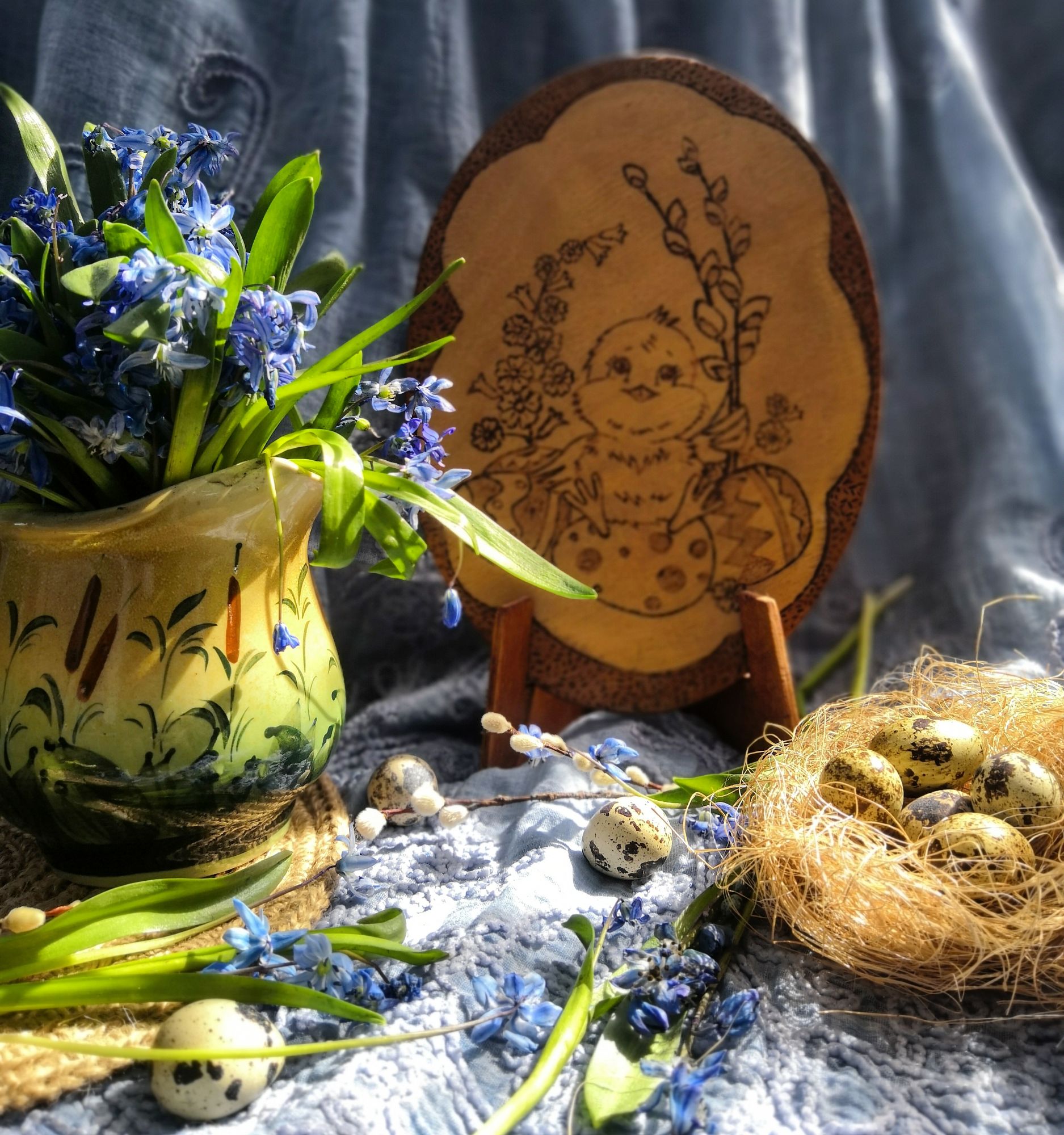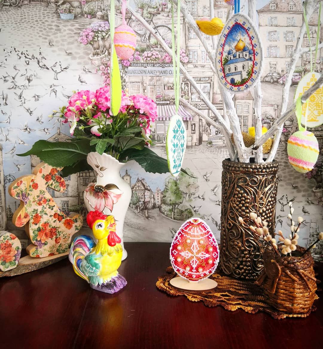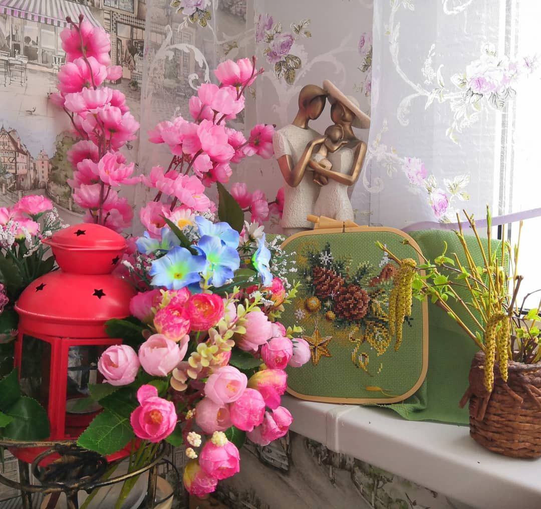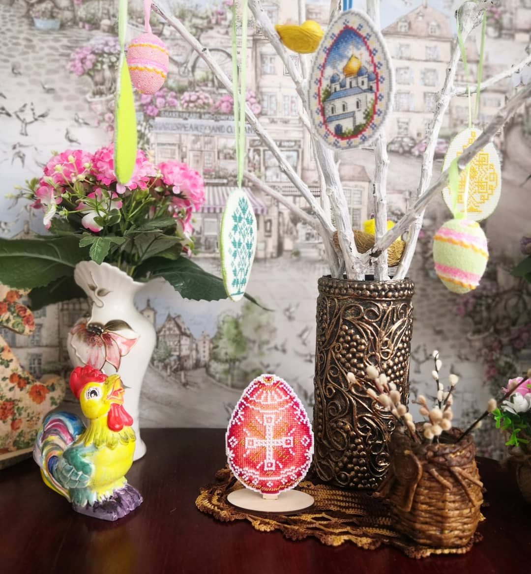 25 апреля 2021 Всем привет! Я, честно признаться, в этот раз прямо заждалась воскресенья, так хотелось показать свои вышивальные продвижения. Но перед тем как приступим к вышивке хочу поздравить всех православных с праздником Вербного Воскресения! И небольшая фотозарисовка в тему. Теперь перейдём к процессам. Я по-прежнему стараюсь успеть вышить к Пасхе все запланированные подарки, пока вроде получается. Яйцо с храмом от Жар-птицы . Финиш. (не в гаечку) Было Стало без бека Стало с беком Оформление Пасхальная курочка с незабудками на подставке от Волшебной страны. Финиш. (не в гаечку) Было Продвижения Финиш И в продолжение серии сразу же приступила к кролику из этой серии. Пасхальный кролик с незабудками на подставке от Волшебной страны. Старт. (не в гаечку) Подготовка Дальше процессы в гаечку. Эта часть отчёта получилась в трех классических частях : старт, продвижение и финиш. Начнём с финиша. Алая писанка от Жар-птицы. Финиш. Было Стало Впервые решила пришить бисер в подобном дизайне не нитками мулине, а ниточками для бисера (взяла из остатков наборов от Волшебной страны). И то ли с этой работой так совпало, то ли со всеми так будет, но итог мне не понравился, слишком уж бисер "гуляет" при этом. Здесь оставила как есть, а в следующих подобных дизайнах снова вернусь к мулине. Потихоньку подрастает процесс от Чудесной иглы Светлое Рождество. Приспособилась вышивать его в детской пока дети играют без моего участия, но под моим наблюдением. Получается за раз понемногу 50 - 100 крестиков, но суммарно накопилось уже больше 1000 крестиков. Было Стало И новый старт. Для юбилейной сотой гаечки хотелось выбрать не абы какой процесс, а значимый для меня. Выбирала из трёх и решила остановиться на "Мир животных. Кит" от Овен Во-первых, я попробую нового для себя производителя (да-да, наборы от Овен я ещё ни разу не вышивала), во-вторых,бывают такие дизайны, в которых вроде бы ничего такого особенного и нет, но цепляют они тебя в самое сердце. И вот этот кит как раз и стал для меня таким дизайном. Подготовка : Заказала под этот набор дизайнерскую канву, т. к. не хотелось оставлять его на родной. С процессами на этом всё. Покажу как украсился мой рукодельный уголок к Пасхе А попозже и картину наконец-то повесили А на улице наконец-то настоящая весна. Абрикос расцвел: Все зеленеет : И напоследок немного весенних натюрмортов и раскладок : . Это фото назвала "Весна едет". Всем плодотворной предпасхальной недели и крепкого здоровья! ОльгаТольна, Гало4ка, Полли и 5 других сказали спасибо Поделиться сообщением Ссылка на сообщение