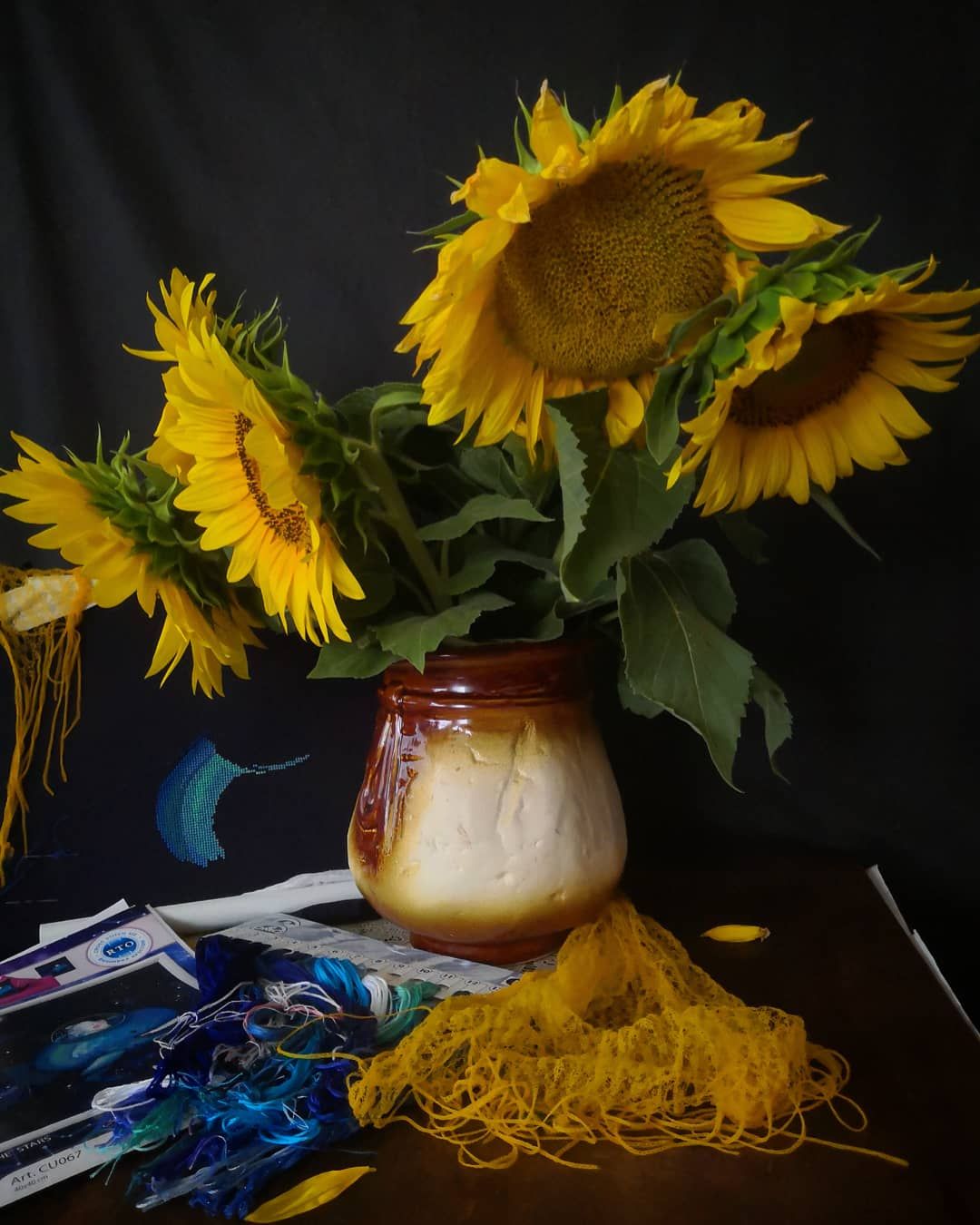 11 июля 2021 Всем привет! Очередные две недели пролетели, подошло время отчёта. Начнём с июньской статистики: Лето я встретила с 13-ю процессами, 1-го числа месяца традиционно начала новый процесс - "Звёздное море" от РТО и это был единственный старт в этом месяце. А вот финишей получилось целых два. Я закончила "Вербу и подснежники" от Риолис и "Светлое Рождество" от Чудесной иглы. В итоге к концу месяца у меня осталось 12 начатых процессов. По запасам - начат 1 набор и куплено 5. Итого +4 набора. По запасам схем изменений нет. Всего в июне вышивала 6 процессов и суммарно в них прибавилось чуть меньше 8300х. Процессы июня в этом году выглядят так : И поскольку прошла уже половина года, то я решила подвести небольшие промежуточные итоги. Готовые работы в виде коллажа : Покрупнее Отдыхалочки Всего 16 работ за 6 месяцев. Ну а дальше наступило 1-е июля и подошло время нового старта. Честно говоря, плодить процессы на тот момент мне мало хотелось, но и нарушать традицию тоже не планировала, поэтому взяла небольшой набор из недавних покупок и начала его. Домик-гномик от Ольги Антроповой. Подготовка : Процесс : И... финиш Да, процесс захватил меня настолько, что я закончила его за 5 вышивальных дней. Очень понравилась нарезка ниток в наборе, их хватало как раз на отшиваемый участок, закрепку и немного см. оставалось для спокойствия на тему "а вдруг не хватит нитки?" Хватало как раз. И следующий процесс, выбранный в качестве основного и продвигаемый к финишу, - это Ракушки от Дим. Было Стало и ещё стало :. Готова половина работы. Продвигается очень легко и с удовольствием. Думаю, что в следующий раз принесу готовую работу. С вышивальным на этом всё, а вот ещё немного рукоделия покажу. Два года назад я начала вязать салфетку, связала около половины и поняла, что мне до жути неудобно вязать выбранными нитками. Забросила. Около года этот недовяз пролежал у меня без дела. Прошлой весной попыталась реанимировать и закончить эту работу, хватило меня ненадолго, поняла, что довязывать не буду. Появилось два варианта : распустить уже связанное или придумать, что можно сделать из этого недовязанного блинчика. Выбрала второй вариант, придумала, что буду из него делать, начала и снова отложила. В конце июня - начале июля объявила неделю борьбы с отложенными делами и одним из пунктов - закончила это вязание. Получилась игольница. А ещё в начале июля исполнился год как я начала целенаправленно снимать натюрморты и предметные фото. Решила сравнить,насколько я "выросла" в этом плане за год. Первый натюрморт от прошлого года И с такими же цветами и частично реквизитом натюрморт этого года : А дальше не для сравнения, а просто полюбоваться : Закатное небо: Всем хороших летних дней и крепкого здоровья! Tata44, Гало4ка, Хозяйка смешных зверей и 4 других сказали спасибо Поделиться сообщением Ссылка на сообщение