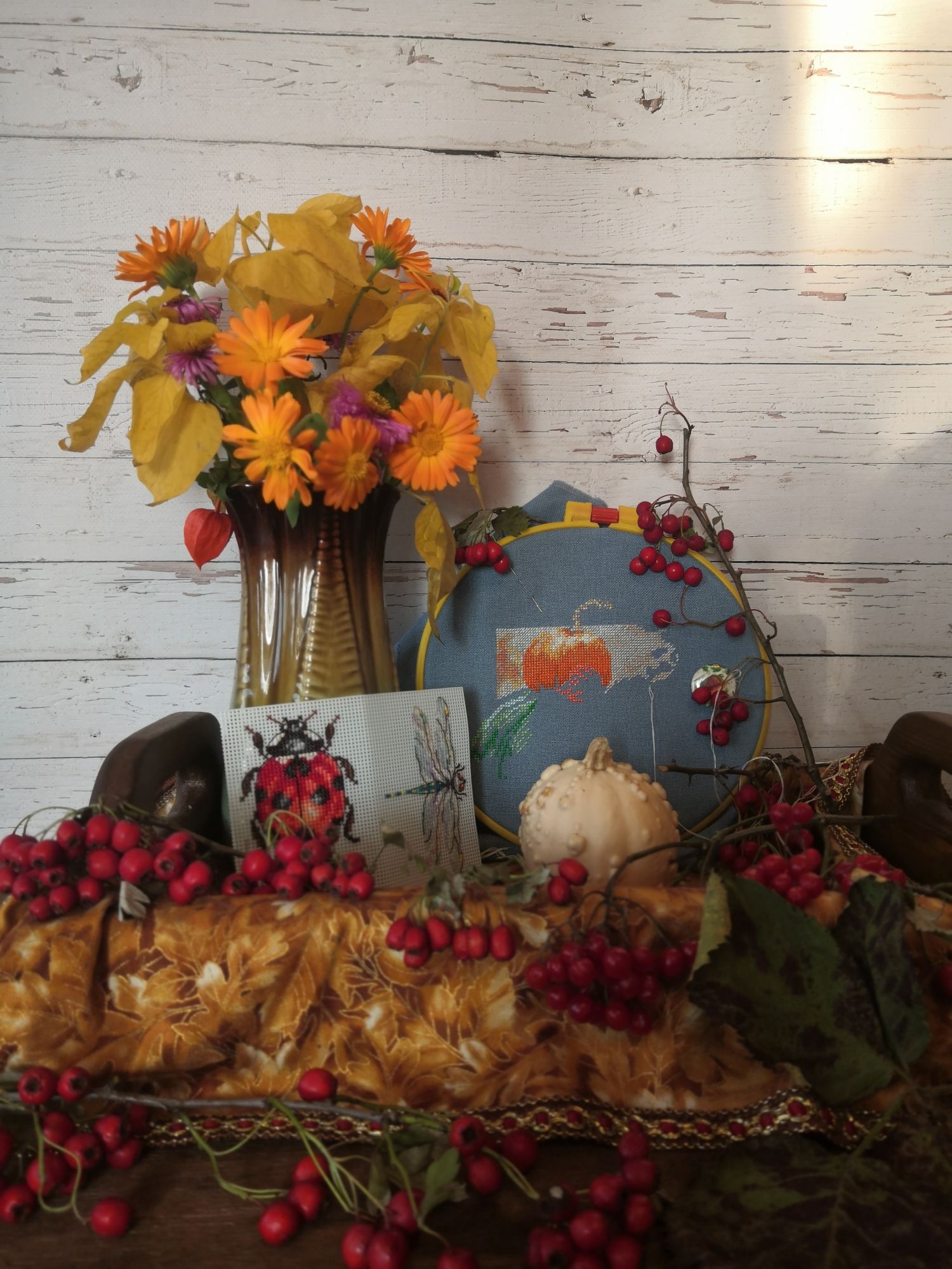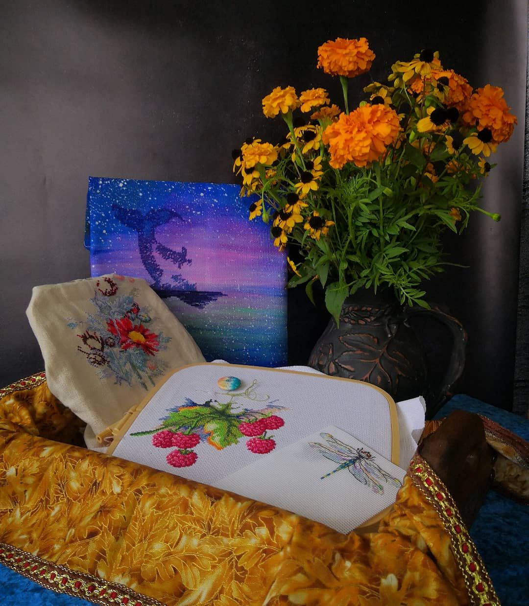 3 октября 2021 А теперь перейдём ко второй части отчёта - статистической. Здесь все фото будут не в гаечку. Процессы сентября в этот раз выглядят следующим образом : Правда, откровенно говоря, здесь правильнее было бы оставить только насекомых, в тыквах не такое уж и большое продвижение получилось, да и вышивала их пару вечеров по остаточному принципу. Но жучки уж слишком одиноко бы смотрелись, а в других работах вышитое было ещё меньше, чем в тыквах. В целом же, несмотря на то, что за месяц я вышила чуть больше 9000х, итогами сентября в вышивальном плане я осталась очень довольна : 1 старт сразу же ставший финишем и ещё 2 законченные работы из недели летних стартов. Итого месяц я начала с 15 процессами, закончила с 13-ю. Минус один набор из запасов и плюс 3 авторские схемы. В октябре хотела бы больше внимания уделить продвижению давно начатых процессов, но и от традиции "в каждом отчёте финиш" пока есть возможность в виде небольших начатых работ, уходить не хочу. Думаю, что следующими к финишу прилетят насекомые от Жар-птицы, а потом... Потом пока оставлю интригу. Ну и несколько фотозарисовок напоследок : Пишите, какое фото больше всего понравилось. Мне очень интересно. Мои фавориты - 3 и 5 фото. Гало4ка, tavenir, Tata44 и 3 других сказали спасибо Поделиться сообщением Ссылка на сообщение