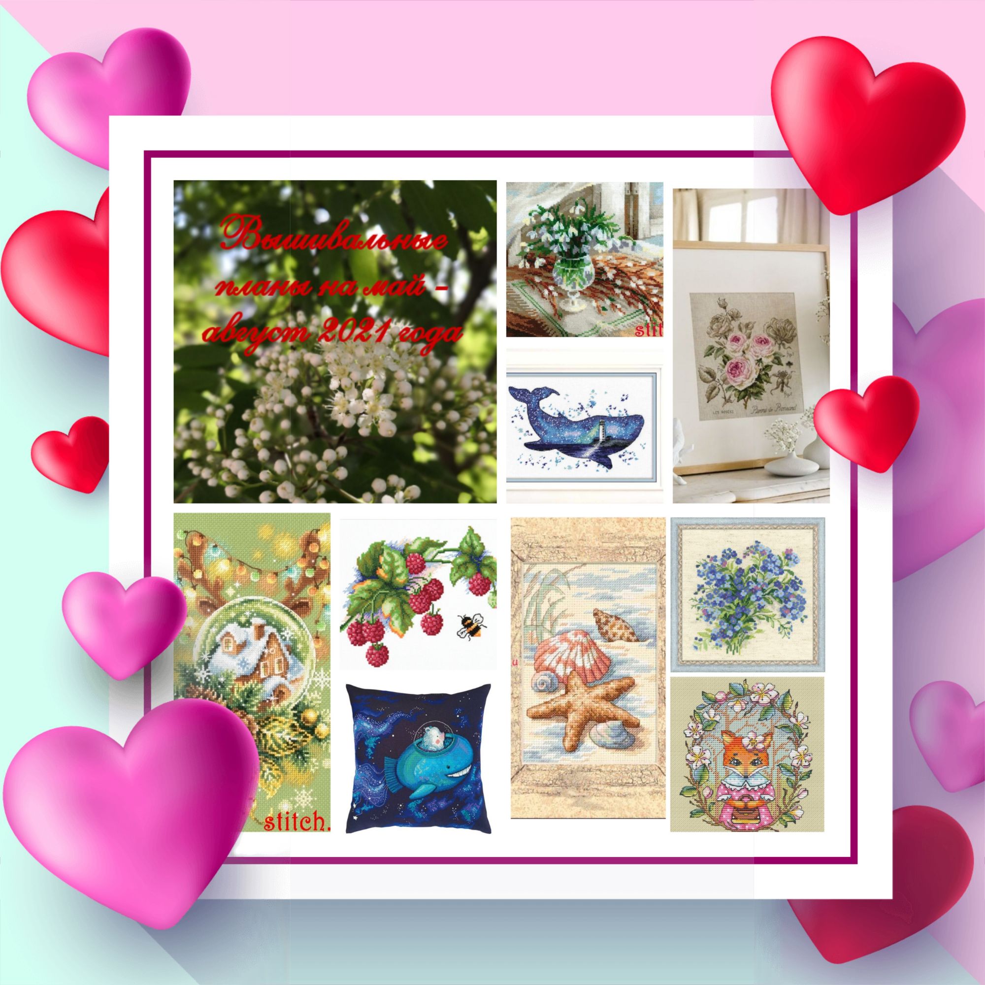 6 сентября 2021 Небольшой перерыв получился на весь день,но наконец-то можно перейти к статистической части отчёта. Процессы августа выглядели так : Август в вышивальном плане у меня разделился на две части, практически полностью совпав с календарными первой и второй половиной месяца. Сначала я самоотверженно ковыряла кита от Овен в качестве отдыхалочки, разбавляя его осенней миниатюркой от Алисы и... спала. Последнее, к слову, получалось лучше всего, но абсолютно не устраивало меня в плане продуктивности, потому как высыпаться всё равно не получалось и за вышивкой не отдыхала. Прекрасно понимая, что такая ситуация сложилась из-за отсутствия вдохновения к начатым процессам я приняла мудрое, как потом показала практика, решение - устроить неделю летних стартов и всю вторую половину августа вышивала эти новые процессы (а, вернее сказать, в основном один процесс). Правда ближе к концу месяца я спохватилась, что не хочу заканчивать месяц и сезон с таким количеством начатых работ и оперативно закончила два небольших процесса, но всё равно итогом лета стало 15 начатых дизайнов к новому сезону. Впрочем, вышивальное вдохновение ко мне вернулось, так что я ни разу не пожалела об этой неделе стартов. Правда жалею, что такое решение не пришло в мою голову раньше, тогда бы август закончился не со скромными 5-ю тысячами вышитых крестиков + две непосчитанные работы, а с намного лучшим результатом. Но, что имеем, то имеем. 5 стартов, 2 финиша, 1 мини-финиш и 11 процессов, каждому из которых досталась хотя бы крупица моего внимания. Ну а на фото, как обычно, фавориты - те, кому этого внимания досталось больше всего. По запасам ситуация следующая : количество наборов уменьшилось на 2 (- 4 набора стартовали и 2 купила) и - 1 схема из запасов. Но это ещё не всё подведение итогов. Закончился очередной период, на который я строила вышивальные планы. Коллаж с запланированными работами выглядел так Из этих работ кита от РТО и малину от Чудесной иглы хотела только начать и продвинуть, остальные - закончить. Коллаж с итоговыми работами выглядит следующим образом : Вербу - закончила, Рождество - закончила, кита от Рто начала и продвинула, Малину - начала и продвинула, ракушки - закончила, весеннюю лисичку - закончила - это выполненные пункты. Невыполненные - роза Пьер де Ронсар - совсем немного продвинула, но не закончила, кита от Овен - продвинула, но не закончила, незабудки заменила на бархатцы - пока только начала. Внепланово вышила домик-гномик и осеннюю миниатюру от Алисы, начала процесс "Крылатые друзья" от Жар-птицы и вышила из него стрекозу. Таким образом, выполнено 2/3 от запланированного. По-моему, неплохой результат. И кроме вышивки немного позанималась и другими видами рукоделия : А теперь перейдём к общегодовому списку планов : 1. В Новый год у меня переходит 10 начатых работ. К концу года 5 работ из этого списка хотелось бы закончить - 3/5 2. Начать 3 набора из запасов, купленных до 2019 года - 2/3 3. Вышить 4 авторских схемы (по одной каждого сезона зима - весна - лето - осень) - 2/4 4. Допройти плакат 150 заданий вышивальщицы - сейчас на 29 задании и уже прекрасно понимаю, что этот пункт плана провалится. 5. Оформить 12 работ, вышитых до 2021 года - 4/12 6. 12 крупных покупок из давних хотелок - 8/12 В целом, понимаю, что какие-то пункты выполнить в этом году уже не удасться, но всё равно планы стимулируют. Поэ