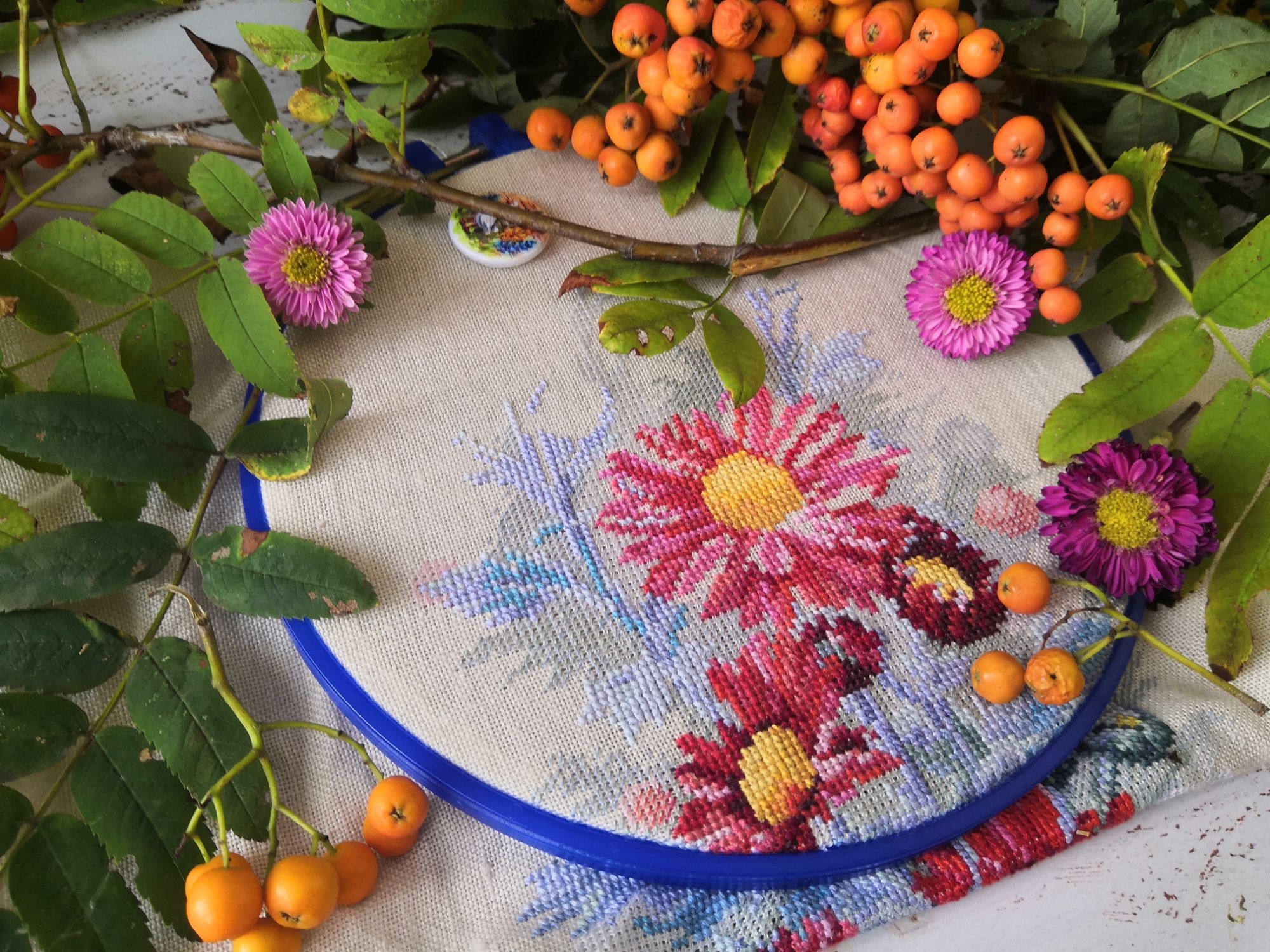23 октября 2022 Доброго времени суток всем! Несмотря на абсолютно несъемочную погоду, совершенно не подходящую для фото, я всё - таки решила притащить отчёт сегодня. Поэтому сразу честно признаюсь: снимала за полчаса до заката сегодняшнего пасмурного дня, пытаясь выправить ситуацию дополнительным светом и пост-обработкой, так что цвета на фото могут немного "гулять" от настоящих. Наверное, однажды я пересниму эту работу более интересным кадром, сегодняшний меня устраивает далеко не на все 100 процентов. Но, по всей видимости, у неё такая карма - не устраивать меня в каких-то отношениях от самого старта до финиша. Чем ещё объяснить то, что дизайн в 9000х я вышивала больше 4 лет? И, если бы не нашла перенабор, то, полагаю, и все 6 лет бы могла вышивать. Итак, барабанная дробь.... Красные хризантемы от Марьи Искусницы. Было Стало Зеленим гаечку. Ох, сколько же моей кровушки попил этот дизайн! Вроде бы на первый взгляд ничего сложного, но когда видишь схему.... Мама родная, да у меня Хаед на 80% участков проще вышивается. Особенно сильно я возмущалась в конце работы. Ну зачем пихать в эти маленькие бутончики столько оттенков? Да их же пополам можно вполне сократить без особого ущерба для красоты дизайна. Из плюсов - бек относительно крестиков очень простой, нитки приятные, к основе попривыкнуть надо. В общем, если бы не схема, то вполне нормальный набор получился бы, а так мне пока хочется убрать его на какое-то время с глаз долой и остыть. Радуют два момента : итоговый результат вполне себе красивый, и этот дизайн наконец-то убрался из списка моих процессов. Для справки : раньше него у меня только 2 процесса начаты - Водолейка и Садовые розы. Однажды я закончу и их, а пока снова вернулась к любимому числу начатых процессов - 13. Хорошей всем недели и пусть все долгострои обязательно дошиваются. Marusya1978, Nyurka-86, Беладонна и 7 других сказали спасибо Поделиться сообщением Ссылка на сообщение