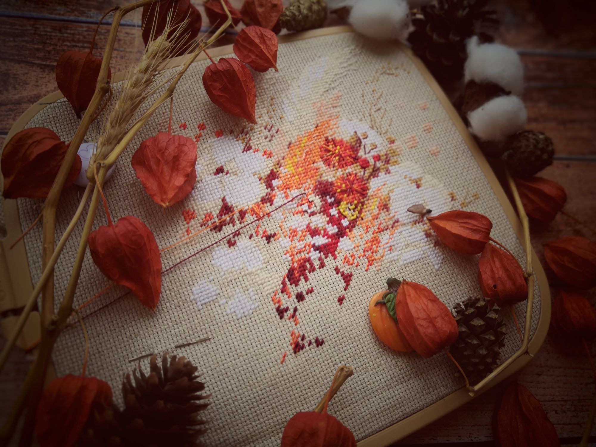 30 октября 2022 Всем привет! Вот и пролетела еще одна неделя, пора показывать что я успела навышивать за неё. В этот раз, если судить только по показанному процессу результаты будут скромными, но как я раньше писала многие мои продвижения в процессах набираются далеко не за одну неделю, так вот прошедшая неделя была как раз такой, когда делался "задел" на следующие отчёты, которые будут показаны однажды в будущем. Так что в целом рукодельными итогами недели я вполне довольна. Но перейдём, собственно, к процессам : самыми ближайшими кандидатами на финиш у меня являются 2 дизайна - букет с ларгусом и хлопком от Риолис и самовар от Жар-птицы (в прошлый раз забыла его указать), но поскольку две прошедшие недели вышивать самовар я практически не могла, дабы не "засветить" подарок, то сегодня покажу Риолис. Букет с ларгусом и хлопком Было Стало Потихоньку продвигаюсь, вышила уже 40% полукреста, начала местами вышивать бекстич. Работа с этим дизайном достаточно кропотливая, но встречаются и лёгкие места. Так что пока я полна решимости закончить его в обозримом будущем. Ну а кроме вышивки в последние парку недель я ещё отвлекалась на вязание. В итоге у Паолы появился новый осенний наряд, в цвете спелых тыкв или осенней листвы (кому что больше нравится) И немного нашей осенней погоды : Листья пока далеко ещё не все облетели, так что радуемся тому что осталось. На сегодня у меня всё, всех благ и мирного неба над головой! Путешественница, Любушка1985, Marusya1978 и 7 других сказали спасибо Поделиться сообщением Ссылка на сообщение