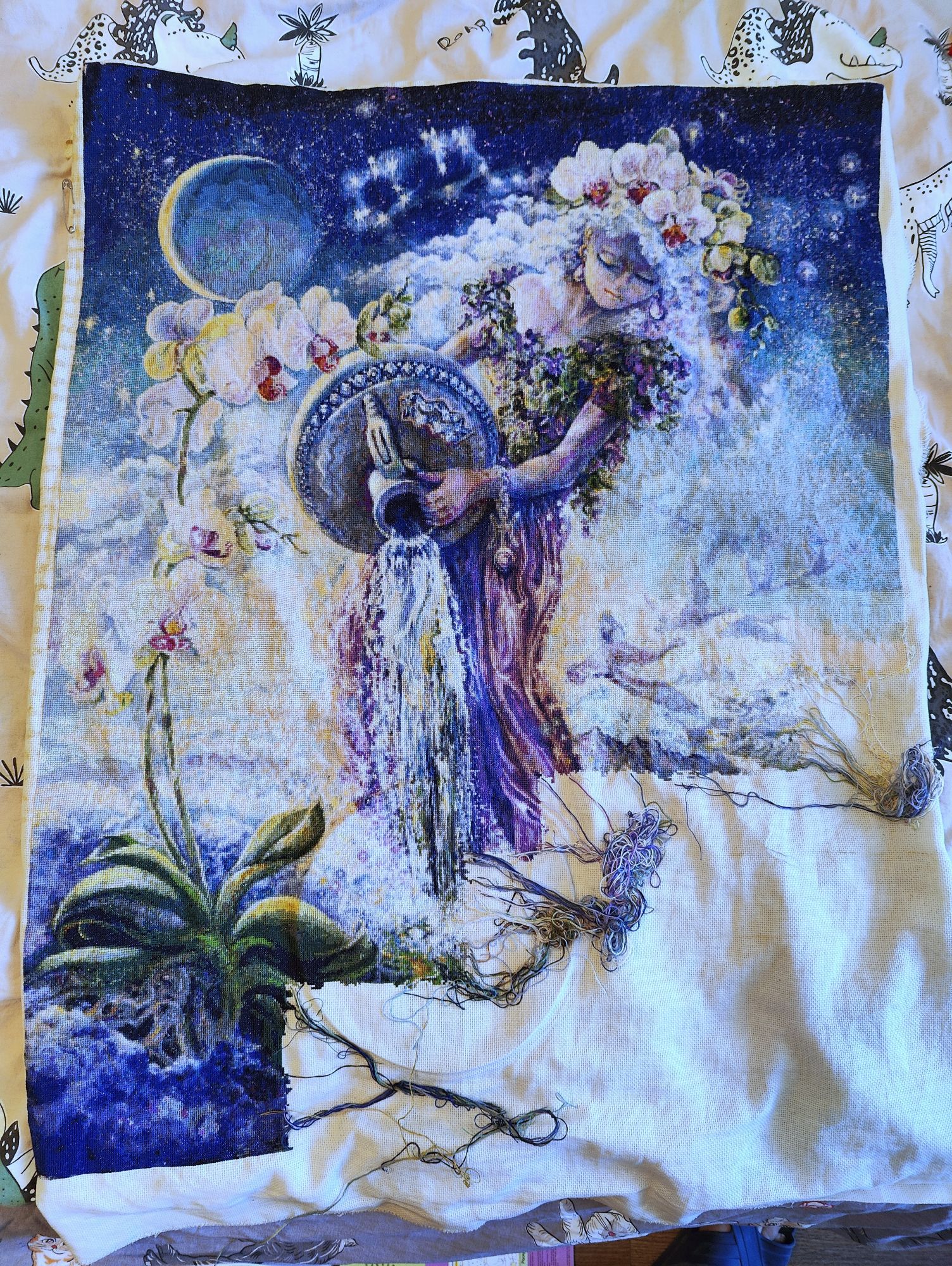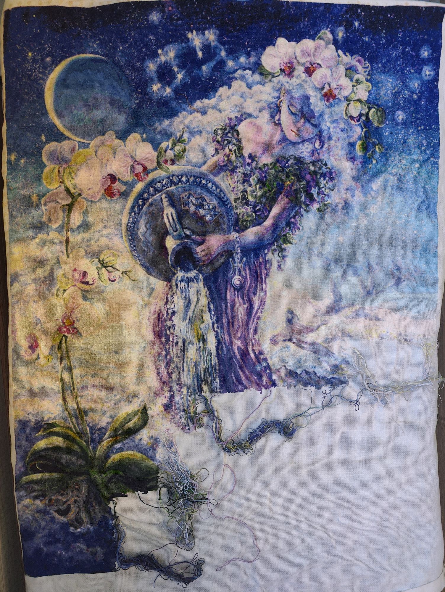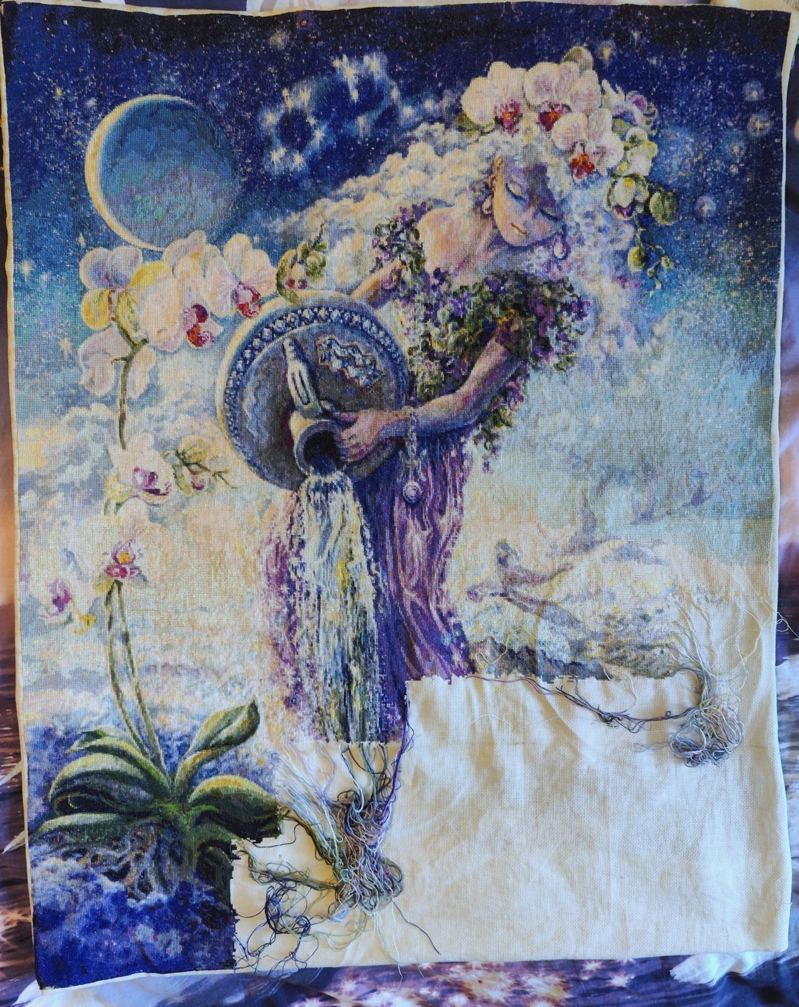 30 марта 2024 Всем привет! Не буду тянуть до завтра, отчитаюсь сегодня. Итак, что же у меня произошло в рукодельной жизни за предыдущие две недели. Как я писала ранее, январь и февраль прошли в какой-то слишком сильной вышивальной суете. Скрытый текст Многие со мной, наверное, поспорят, но, сидя дома с детьми, рукоделие для меня - это не столько способ отвлечься от рутины, сколько сфера, где я могу ставить себе какие-то цели и достигать или не достигать их. Такой своеобразный маячок "о, да я могу чего-то добиваться". С моим дурным характером (не в плане вредности, а в плане преуменьшения собственных заслуг) совместные достижения я в основном приписываю второй стороне, а совместные провалы - валю на себя. Ребёнок за день прочитывает толстенную книгу - молодец, ему это интересно, ребёнок хамит и грубит - моя недоработка в воспитании ну и прочее и подобное. Поэтому к вышивке я отношусь серьёзнее, чем следовало бы относиться к хобби. И, надеюсь, это небольшое пояснение поможет в дальнейшем лучше понимать некоторые мои "загоны". И это была даже не суета в делах, а больше суета в мыслях. Как я потом поняла, наводили её в общем два моих начатых процесса. Напрягали они меня своей незаконченностью, редко такое бывает, но вот случилось. Этой парочкой были виноград от Вышивариум и дракон от Жар-птицы. Дракона я продолжаю медленно, но верно продвигать, а вот виноград дождался своего финиша. 1. Виноград от "Вышивариум". Финиш Было Стало и с беком Мои впечатления: с точки зрения схемы работа простая и, местами, даже скучная, особенно листочки. С ягодами поинтереснее, а вот листочки идут скучновато. Запас ниток хороший, запас иголок тоже, их тут 5 и я сильно удивлялась зачем столько. Удивляться пришлось ровно до этапа бека, на котором я сломала 3 иглы, это прям мой рекорд для одной вышивки. По поводу основы - у меня она немного выгнулась за время хранения набора, но, если не смотреть сбоку, то этого совсем не заметно. Ну и стоит сразу купить круглогубцы для того, чтобы протягивать иголку при закреплении нитки в конце и при выполнении бекстича. На то, чтобы довышивать этот процесс у меня ушло 2 дня (к началу года вышить оставалось пару ягодок и чуть больше половины верхнего листа), закончила и почувствовала как сразу уменьшилась эта моя внутренняя суета. Так что теперь потихоньку продвигаю дракона, чтоб уж совсем успокоиться Правда и о новом старте я не забыла 2. МH 18-2013 Spring Ahead "Весна впереди" Нечасто я вышиваю наборы данного производителя. Этот уже давно лежал в запасах, ждал пока я куплю ему парный дизайн. И вот, когда осенние часики в шаге от меня, я позволила себе начать весенние. Тем более и погода за окном уже соответствующая. Так, финиш был, старт был, осталось показать продвижение. А какое же продвижение показать? Пусть это будет Водолейка. Очередные почти 5 тыс. крестиков за март. Было Стало Совсем немного прибавилось платье и более значительно продвинулся водопад. Причём водопад с его одиночками вышивать было значительно интереснее, чем относительно простое платье. Готово почти 80% работы и до финиша остаётся чуть меньше 52 тыс. крестиков Сегодня - завтра я уже вышивать не буду, так что сразу подведу статистику за март. В этом году первый весенний месяц бьёт рекорды по количеству вышитых крестиков. Всего вышито 18709х в 14 процессах (если считать 2 лукошка из СП как 2 разных процес