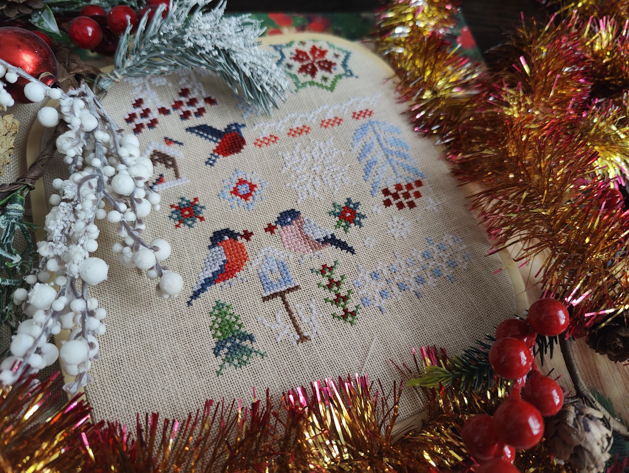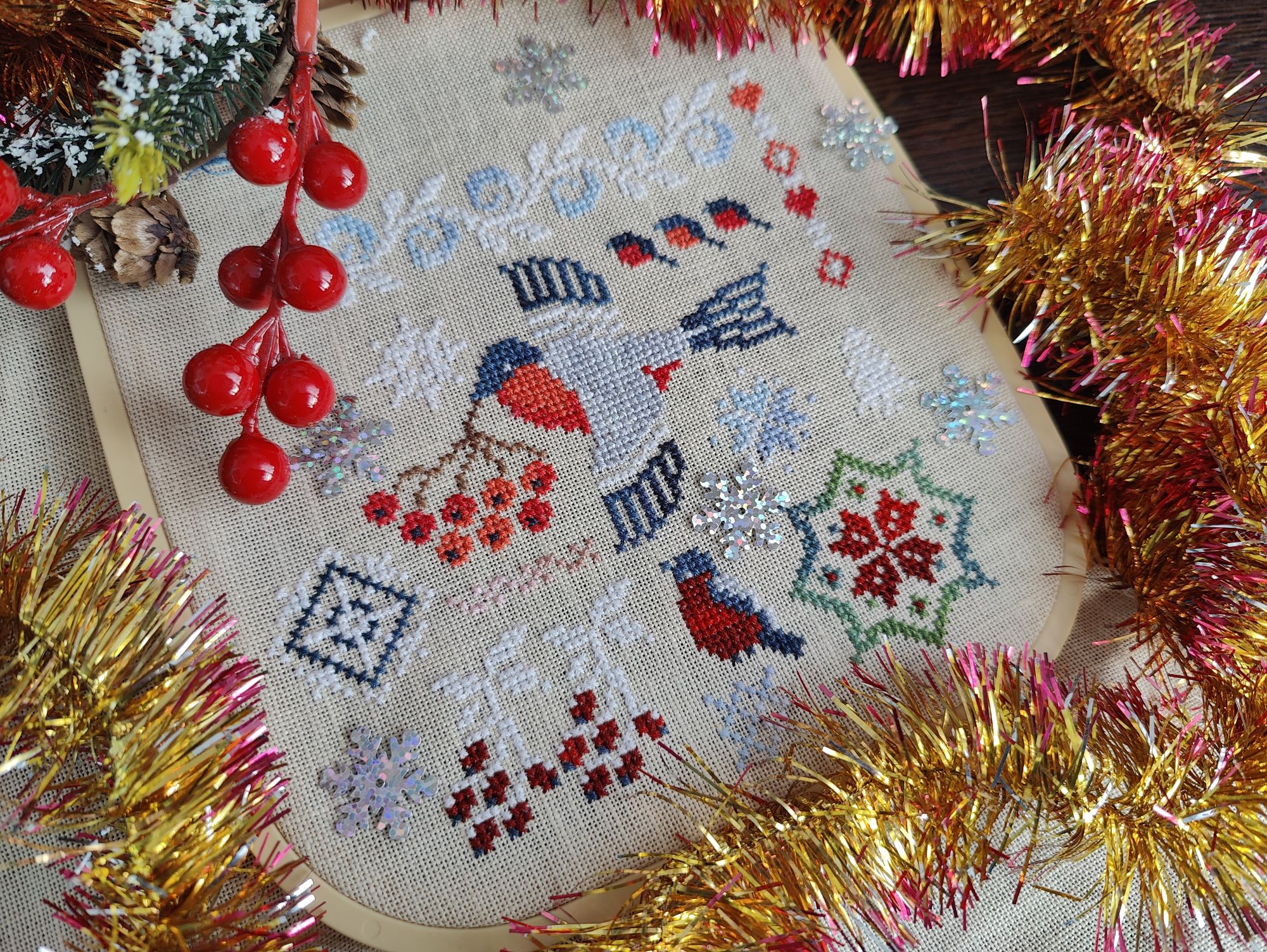 17 марта 2024 Поздравляю всех с последним днем Масленицы - Прощенным Воскресеньем. Прошу прощения у всех, кого обидела, вольно или невольно. Мирного неба над головой, любви и добра в сердце. Ну а теперь перейдем к вышивке. Март месяц начался с того, что я усиленно дошивала второе лукошко из совместника. В этот раз оно было с яблоками и грушами. К сроку успела и уже получила схему для третьего (правда пока ещё к ней не приступила). Ну а второе получилось достаточно ярким и аппетитным. Затем я поняла, что мне в моей сложной поэтапной системе вышивки для следующего этапа нужны пустые пяльца, а их нету. Прикинув, откуда можно их дёрнуть, принялась за "Снегирей" от Совиного леса. Снегири (в гаечку) Было: Стало По площади вышита примерно четверть работы, а вот по процентам - 36%, так что на остальных участках плотность зашивки будет поменьше. Ну и немного моих впечатлений: нитки ПНК - фуу, но, я традиционно их не люблю в наборах (в мотках как-то, по-моему, они получше), окрас - да, такими мулине вышивать интереснее, но дмс меланж в этом плане мне нравится гораздо больше (как минимум тем, что их можно стирать), сама разработка - а вот здесь явный плюс, интересно вышивать небольшие сюжеты, каждый из которых становится отдельной логической частью картины и хочется вышить ещё и ещё один. Итого пока для себя делаю вывод: вполне можно покупать схемы от Совиного леса, но вот нитки на основе ПНК - это мимо. В общем вышила планируемый кусок, а пяльца по итогу с другой работы забрала Ну а в начале этой недели Алина Игнатьева выпустила новую дюймовочку, которая сразу же поразила меня прямо в сердце. Знакомьтесь, дюймовочка Масленица Ну и кроме вышепоказанного потихоньку вышиваю другие свои процессы, которые обязательно покажу, когда будут вышиты какие-то логические участки. В целом же пока март проходит достаточно продуктивно в плане вышивки. Даже несмотря на то, что творится дома. А дома происходит вот что (дальше не вышивальное). Уютную комнату наших мальчишек и совсем неуютную лоджию рядом с ней мы превратили в это... Было: Стало: В общем, делаем ремонт на лоджии с утеплением и попутно ремонт в комнате с выравниванием стен, пола, прокладыванием новой проводки. Соответственно попутно страдает остальная часть квартиры в которую перенесли всё из этой комнаты, ну и стандартная пыль, грязь и все прелести ремонта. Радует, что в отличие от прошлого мастера, нынешний не пропадает на несколько недель в процессе ремонта и на сегодня уже практически доделаны все грязные работы. Так что жду красоту. Marusya1978, Любушка1985, relax_cross_stitch и 7 других сказали спасибо Поделиться сообщением Ссылка на сообщение
