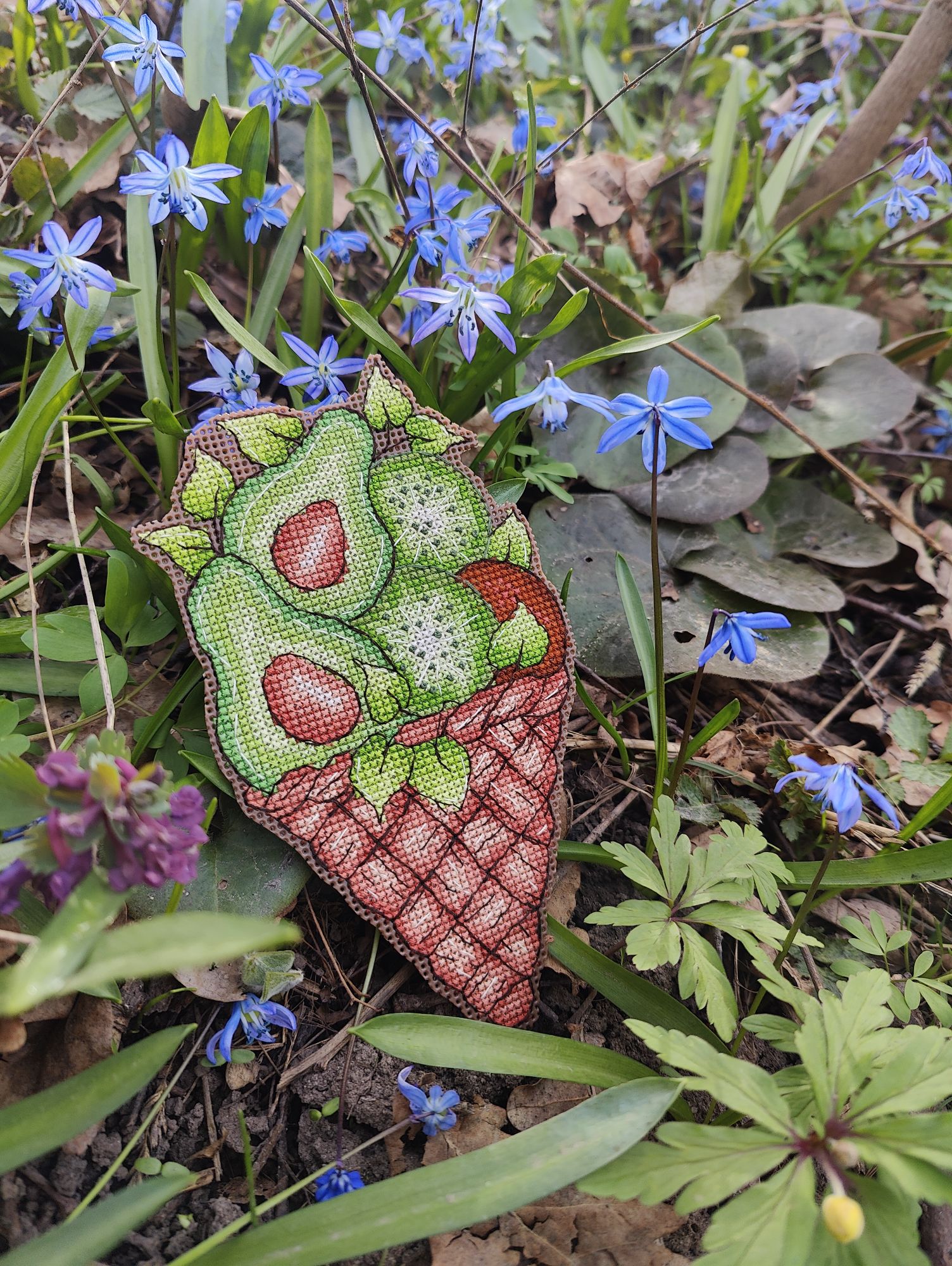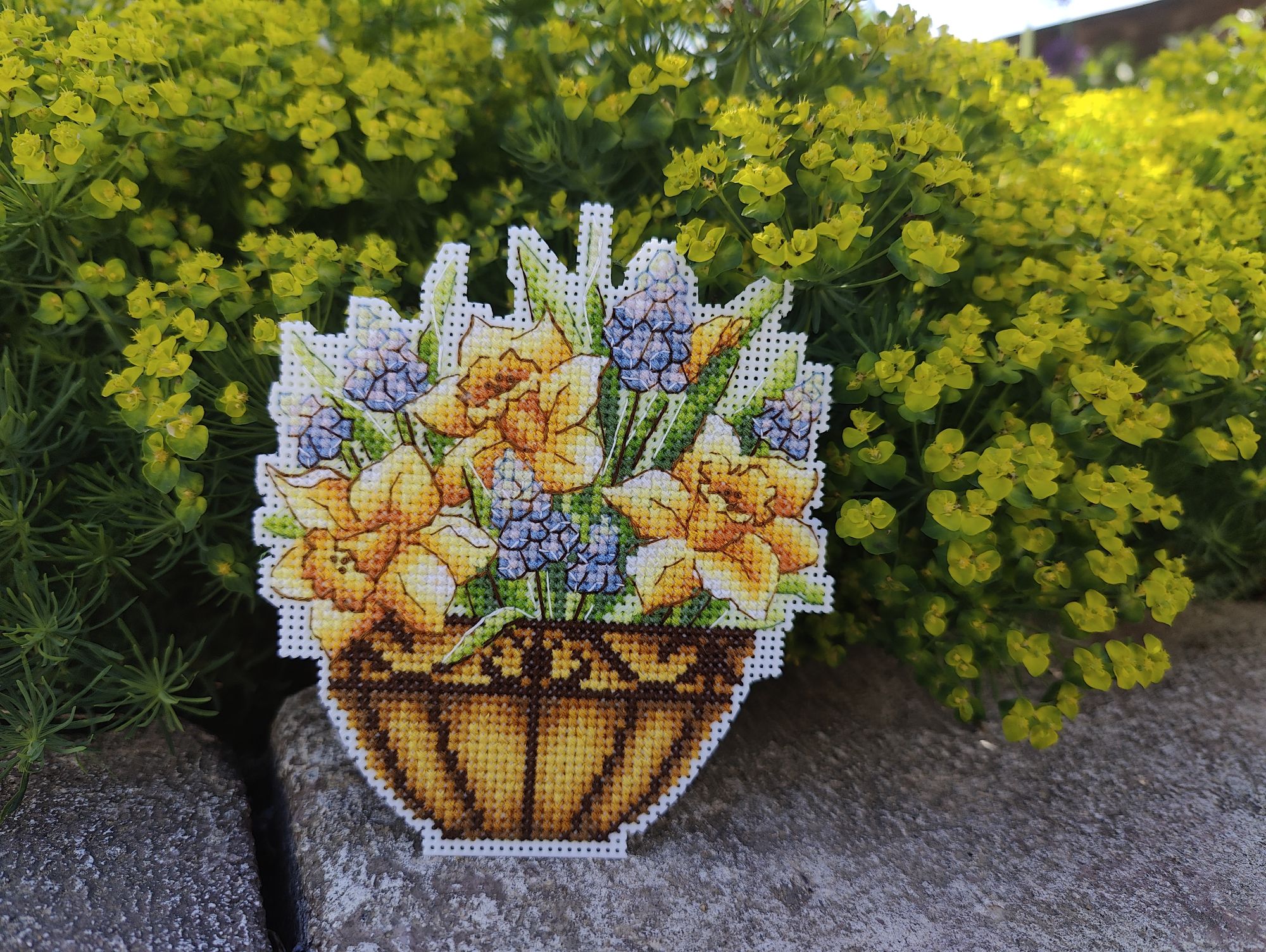 19 мая 2024 Ну что ж, а теперь пора потихоньку собирать в отчёт майские крестики. Вопрос как пойти, по хронологическому порядку или по принципу "в гаечку - не в гаечку"? Наверное, выберу первый вариант. Итак, начало мая ознаменовалось у меня вышивкой ко всяким разным совместникам. Первым по сроку сдачи очередного этапа был новый совместник "Цветы на веранде" от Алины Игнатьевой. В нём вышивалось симпатичное кашпо с нарциссами и мускариками. Успела в срок, правда бек дошивала с температурой (как раз на праздники мы умудрились заболеть всей семьёй) Следующим финишем стала "Плетенка с тыквами" от Корнеевой Ольги (СО "Лукошко") Её дошивала в последний день сдачи отчёта (благо это оказался самый небольшой дизайн из совместника и он занял не так много времени в отшиве). Праздники мы провели в деревне у родителей и в связи с этим у меня была одна идея по фотосессии готовой работы, которую, к сожалению, воплотить мне не удалось. Тем не менее с собой я взяла недовязанный бактус и после финиша срочных дизайнов из совместников, закончила и его. Красивой фотосессии не получилось, но итог я Вам всё-таки покажу. А это в развороте На этой красивой ноте закончились наши майские выходные и мы вернулись домой, где в пункте выдачи меня уже ждал новый набор, который очень быстро превратился в новый старт. Но сначала нужно было немного сократить количество начатого. И поскольку весна уже движется к финишу, логичнее всего заканчивать именно весенние сюжеты. С такими мыслями я достала свой mill hill "Впереди весна " и дошила его. Зеленим гаечку. Было Стало финиш Пока не оформила, с оформлением всей этой мелочевки у меня в этом году затык, откладываю на лето, потом буду оптом всё клеить, обшивать, вырезать. Но зато этот финиш позволил мне с чистой совестью сделать новый старт "Огни ночного города" от Чудесной иглы (в гаечку) Девочки, ну это же просто что-то! Сколько настроения в этом сюжете. Ночь, город, дождь, огни фонарей, как это всё атмосферно передано в дизайне, кажется даже ощущаешь этот сырой воздух с примесью запаха бензина. В общем, сопротивляться желанию начать сразу после покупки этот набор я не могла и не хотела. Тем более теперь Чудесная игла представляет по запросу электронную схему для своих наборов. Но как Вы понимаете в этой бочке мёда обязана была оказаться ложка дёгтя, я снова накосячила, невнимательно прочитав инструкцию, посему снова пороть, теперь правда всего 170х, а не 3 тысячи, но всё же. По ходу это превращается в плохую привычку. Но закончить я всё-таки хочу на хорошей ноте. Совместники сделали свой двухнедельный круг (продолжительность 1 этапа) и подошло время сдачи следующих отчётов. И заключительным финишем на сегодня будут милейшие незабудки от Татьяны Шаровой Вот такие майские крестики и петельки были у меня в эти две декады, их было значительно меньше по количеству, но они очень удачно распределились между процессами таким образом, что готовых работ получилось порядочное количество. Ну и ещё одна хорошая новость - к нам вернулось тепло. Впереди лето Путешественница, Marusya1978, Гало4ка и 4 других сказали спасибо Поделиться сообщением Ссылка на сообщение