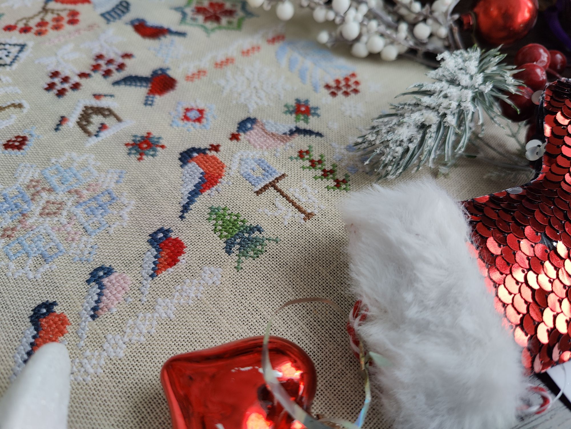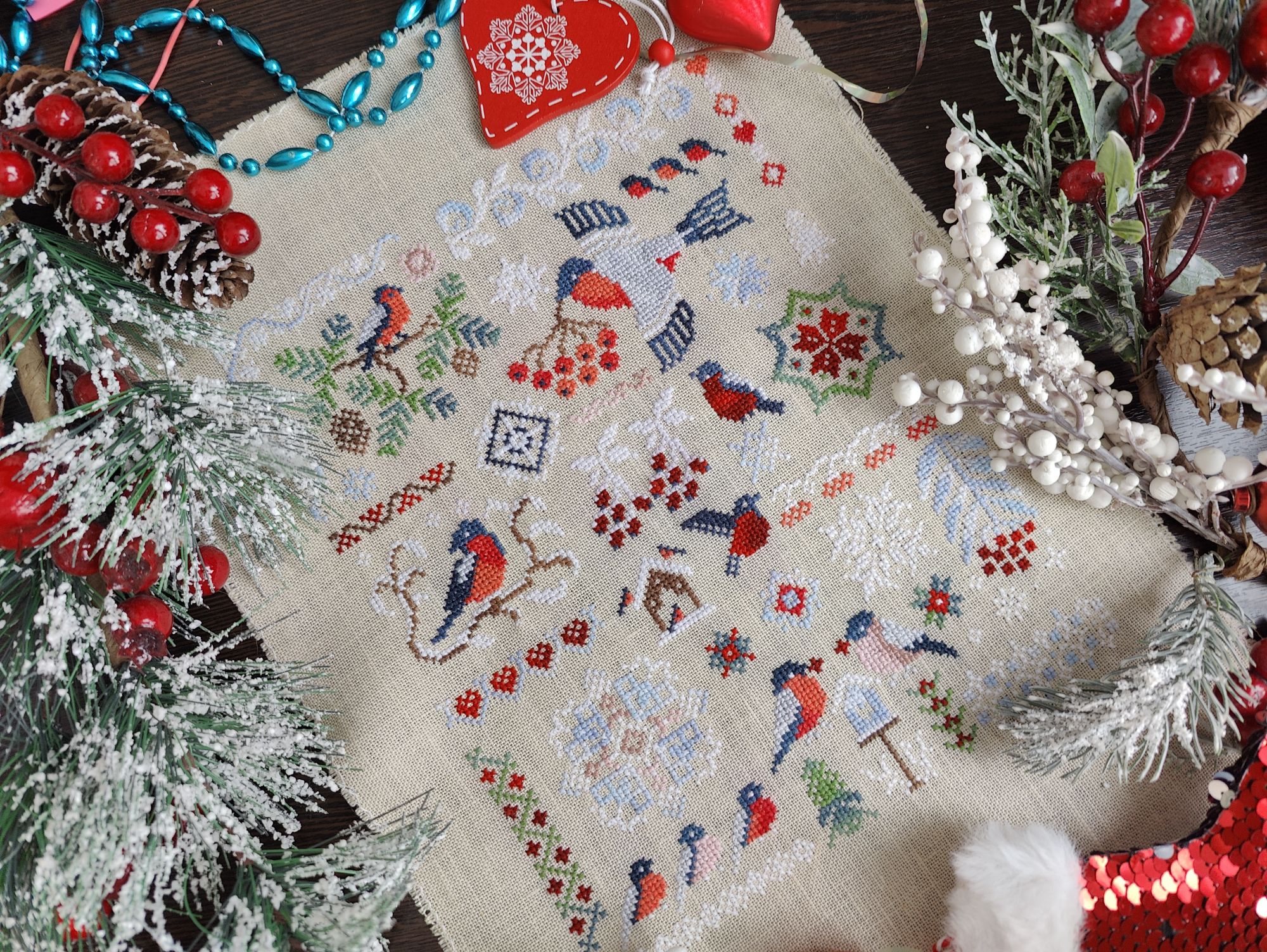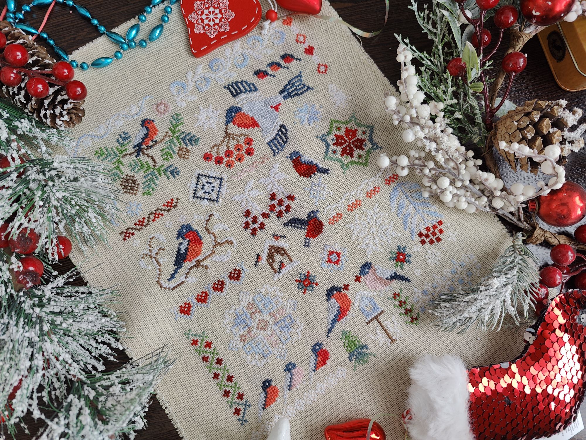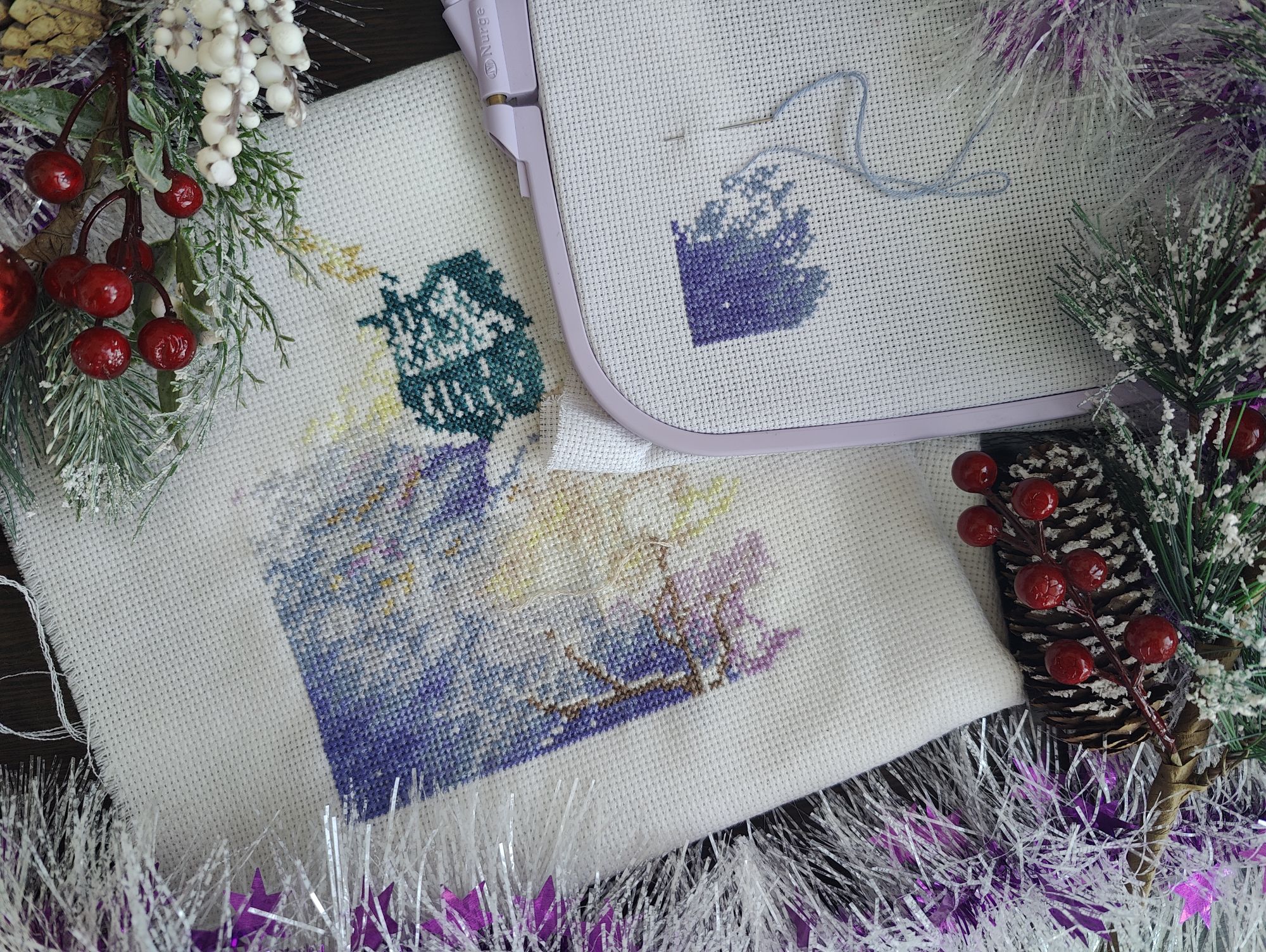 3 марта 2024 Всем привет! Возьму-ка я в руки метелку и смахну пыль со своей темки. После прошлого отчёта на меня не то, чтобы невышивун напал, а скорее вдохновение, махнув рукой, растворилось в "прекрасном далёке". И я даже знаю почему так произошло. Вышивала я в основном Водолейку и Морской бой, разбавляя их срочными процессами для СО и так мне скучна стала эта ограниченность в процессах, что просто жуть. В итоге после долгих колебаний я-таки начала новый процесс. Старт. "Снегири" от Совиного леса Впервые буду вышивать дизайн от этого производителя. Встречала много хвалебных отзывов, но всё-таки решила составить своё мнение об этих работах. У самого СЛ купила схему и набор ниток, основу приобрела по ключу в ИМ. Нитки ручного окрашивания на основе ниток ПНК. Пока по ощущениям, такого большого восхищения нет, но посмотрю, как дальше пойдёт. Но зато свою основную задачу они выполнили - вышивальное вдохновение вернули и после нескольких десятков крестиков на снегирях я снова вернулась к своим начатым процессам. И финишировала, стартовавшую ещё в конце января красную машинку от Ольги Антроповой. Небольшой дизайн, но растянулся он у меня на вполне порядочный срок. Впервые (если не путаю) вышивала нитками dmc этолле, прикольные по ощущениям. Ну и, естественным образом я продолжила вышивать свои большие работы. Морской бой покажу в следующий раз, а вот нашитое за февраль на Водолейке продемонстрирую сегодня. Итак, было Стало Чуть меньше 5000х за месяц. А основным успехом считаю вышитый кусочек с водопадом на фоне платья, там реально одиночка на одиночке и одиночкой погоняет. Правда теперь такой же сложности участок ожидает в ряду ниже, но всё - таки медленно, но верно я ползу к финишу. На конец февраля вышито 77,58%. А всего за февраль (перейдём к статистике) вышито 15 658х в 9 процессах. Тройка лидеров - это Водолейка (4845х), Морской бой (3687х), лукошко с гранатами (3227,5х). Антилидер - Рождественская полка с 12х. В голову пришел ещё один показатель для месячной статистики - % вышитых крестиков в старых (начатых до текущего года) работах. В феврале он составил 55%, в январе, кстати, тоже посчитала задним числом и получила 55,5%. По количеству процессов и запасам ситуация такая : количество наборов осталось прежним, количество авторских схем увеличилось на 3 (4 куплено, 1 начата), количество процессов не изменилось (2 финиша, 2 старта), количество начатых процессов по прежнему составляет 21 (в гаечке есть не все, так что не путаемся). Кроме вышивки повязала спицами бактус (пока не закончила). Ну и прослушала 1 аудиокнигу "Эркюль Пуаро и путаница в Гриншоре" Агаты Кристи. В целом итоги месяца относительно неплохие, особенно учитывая пропадающее вдохновение. relax_cross_stitch, Забава_, Хозяйка смешных зверей и 5 других сказали спасибо Поделиться сообщением Ссылка на сообщение