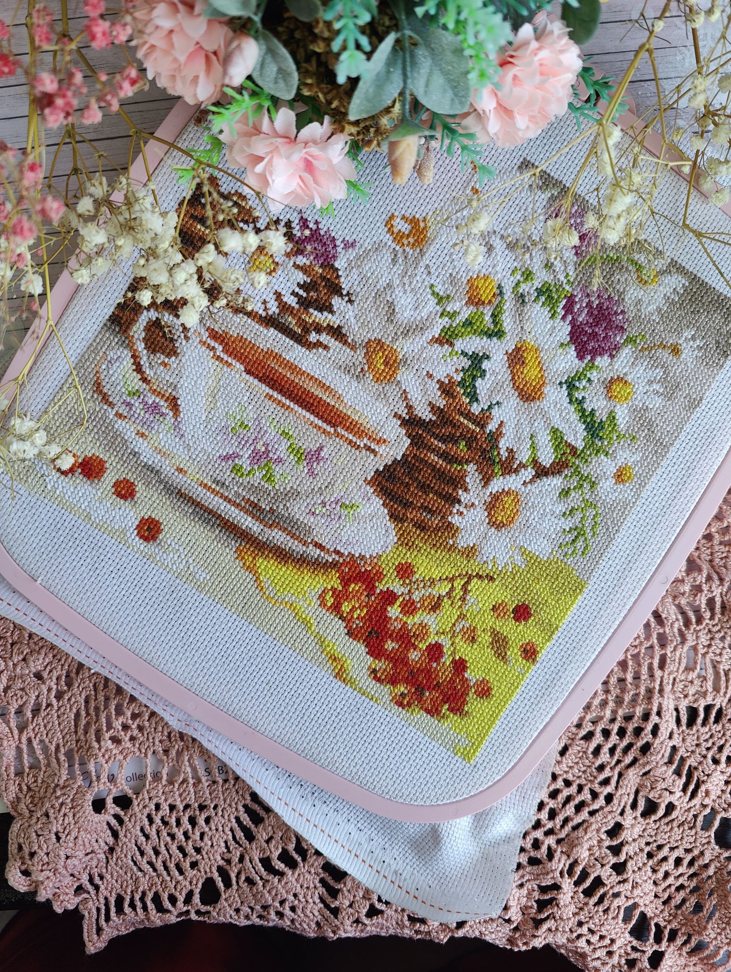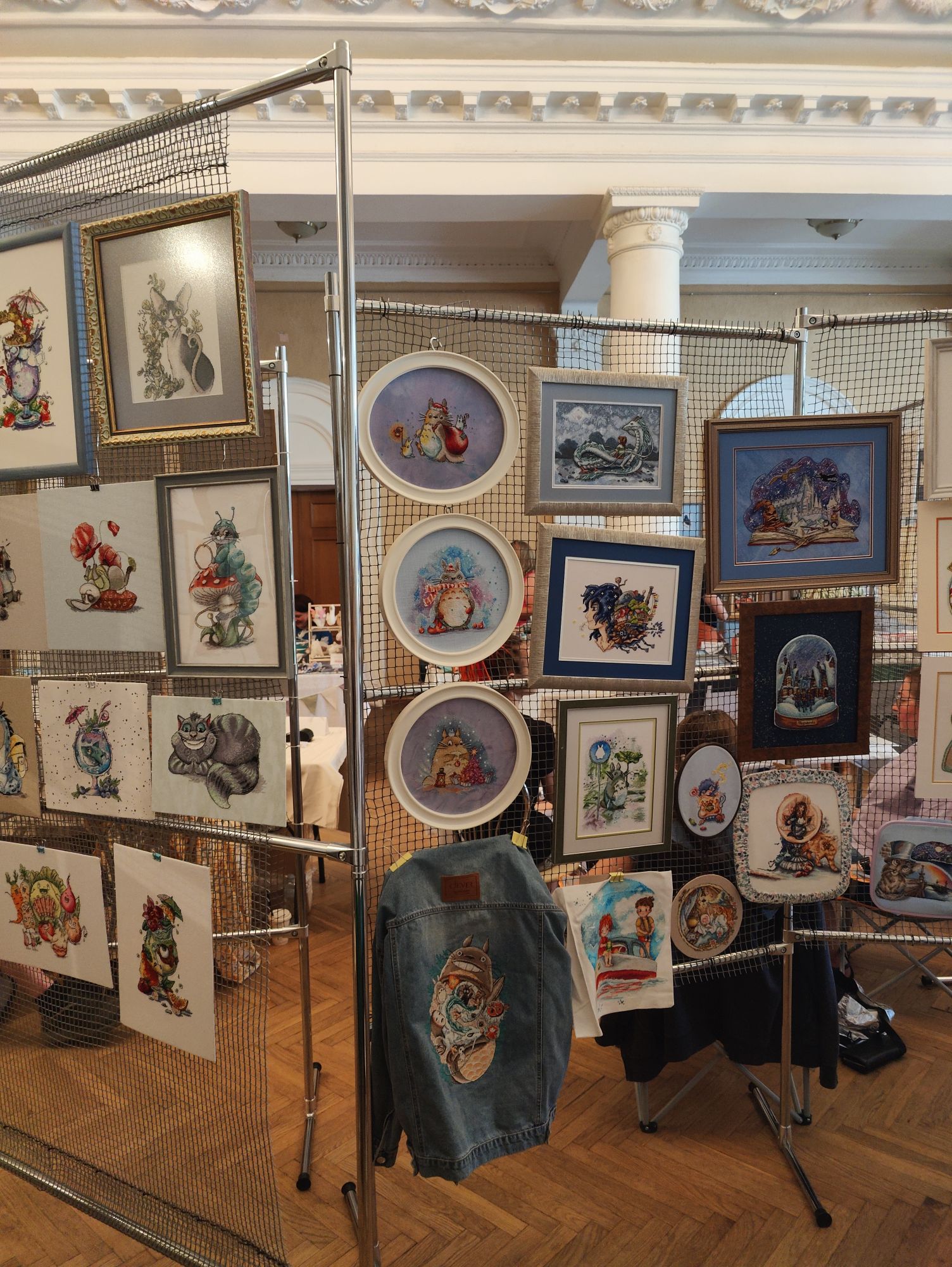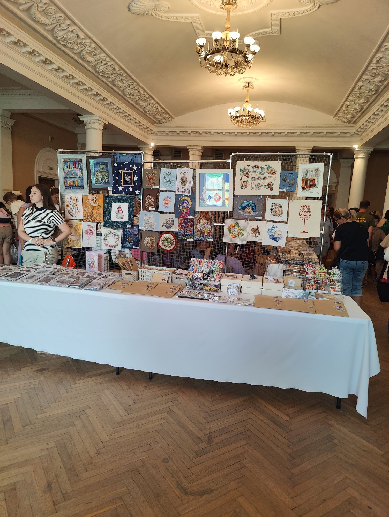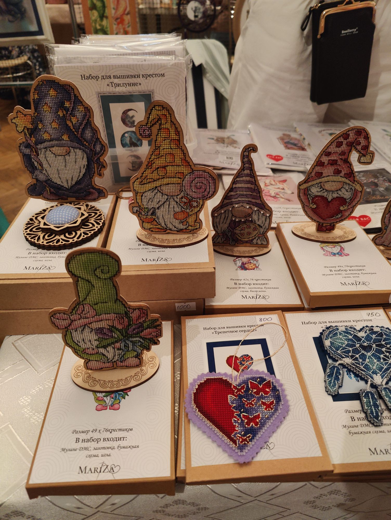 2 августа 2024 Всем привет! Почти месяц пролетел с прошлого отчёта и в этот раз моя пропажа объясняется не тем, что "хотела написать, да было некогда", а тем, что показывать особо было нечего. Я практически превратилась в одгопроцессницу с небольшими шагами влево - вправо, такими небольшими, что в них и показывать было нечего. А нести один процесс, мне честно говоря, не хотелось. Теперь, когда фотографии и события поднакопились, можно и показать нос. Буду писать не по хронологии или значимости, а как лучше в текст будет ложиться. Ну и сначала, наверное, стоит показать причину моего отсутствия. "Полуденный чай" от Алисы. Финиш. Было: Стало ещё немного и финиш Напомню, что вышивала этот дизайн в пару к ранее вышитому "Утреннему чаю", но, в отличие от первого дизайна, здесь я начала процесс с самого лёгкого участка, а сложное - оставила под конец. Как же я была рада такому решению! Ибо "50 оттенков бело-серого" на ромашках я вышивала буквально на морально - волевых и втором предфинишном дыхании. В остальном же дизайн вполне классный, надеюсь, что поход в багетку не будет отложен в долгий ящик. Двигаем дальше. Поскольку у меня закончились все срочные совместники на пластике, то мои руки наконец-то дошли до давно начатых и благополучно отложенных в долгий ящик "Летних флажков" от Анны Петуновой и Елены Ларцовой. Столько было вышито на начало года: За июль я вышила первый флажок И приступила к второму Что сказать по впечатлениям? Отдыхалочкой здесь можно назвать только размер каждого отдельного флажка, в остальном же - ни разу не простой дизайн. Не дико сложный, но и не простой. А, если брать все флажки суммарно, то и достаточно большой по крестикам. Ну и в последний день июля, я решила, что могу попробовать ещё немного улучшить свою вышивальную статистику и устроила мини - марафон по завершению "Домика винодела" от Ольги Антроповой. Финиш Было в гаечке только стартовое фото: к утру 31 июля процесс был вышит ровно наполовину: Ну и дальше фото в течение дня: И готовая (но пока не оформленная) работа: Вообще неоформленный пластик в этом году копится у меня с какой-то сумасшедшей скоростью и я решила, что пора наконец-то начать разгребать эти Авгиевы конюшни. Ну и зачем мелочиться с одним - двумя дизайнами, если можно оформить сразу шесть? Так на свет появился кубик с фруктово-ягодными дизайнами от Татьяны Шаровой, вышитыми в прошлом году. С процессами на этом всё, а с вышивальными новостями - нет. 27 июля у нас в Воронеже прошёл вышивальный фестиваль "Белая ворона". Я не могла пропустить такое мероприятие и с вышивальной подругой отправилась туда. Немного фото со стендов Как же круто побывать на таком мероприятии. Это прям концентрат творчества и вдохновения. А вживую увидеть дизайнеров и всяких известных рукодельниц, о которых раньше только читала. Круто. Единственный, даже не минус, а нюанс, не с пустым кошельком оттуда уйти невозможно. Я перестала покупать, только после того, как покупать стало не на что . Но в памяти пару закладочек, что ещё нужно будет купить, сделала. Ну и, собственно, мои покупки с фестиваля: Часть наборов хочу вышить уже этой осенью, а остальное пока пойдёт в запасы (наборы Риолис и маленький с птичкой - это выигрыши в проводимой на фестивале лотерее). Далее невышивальное. Что было ещё в июле? Мы отпраздновали 11 годовщину свадьбы. Отметили её поездкой в