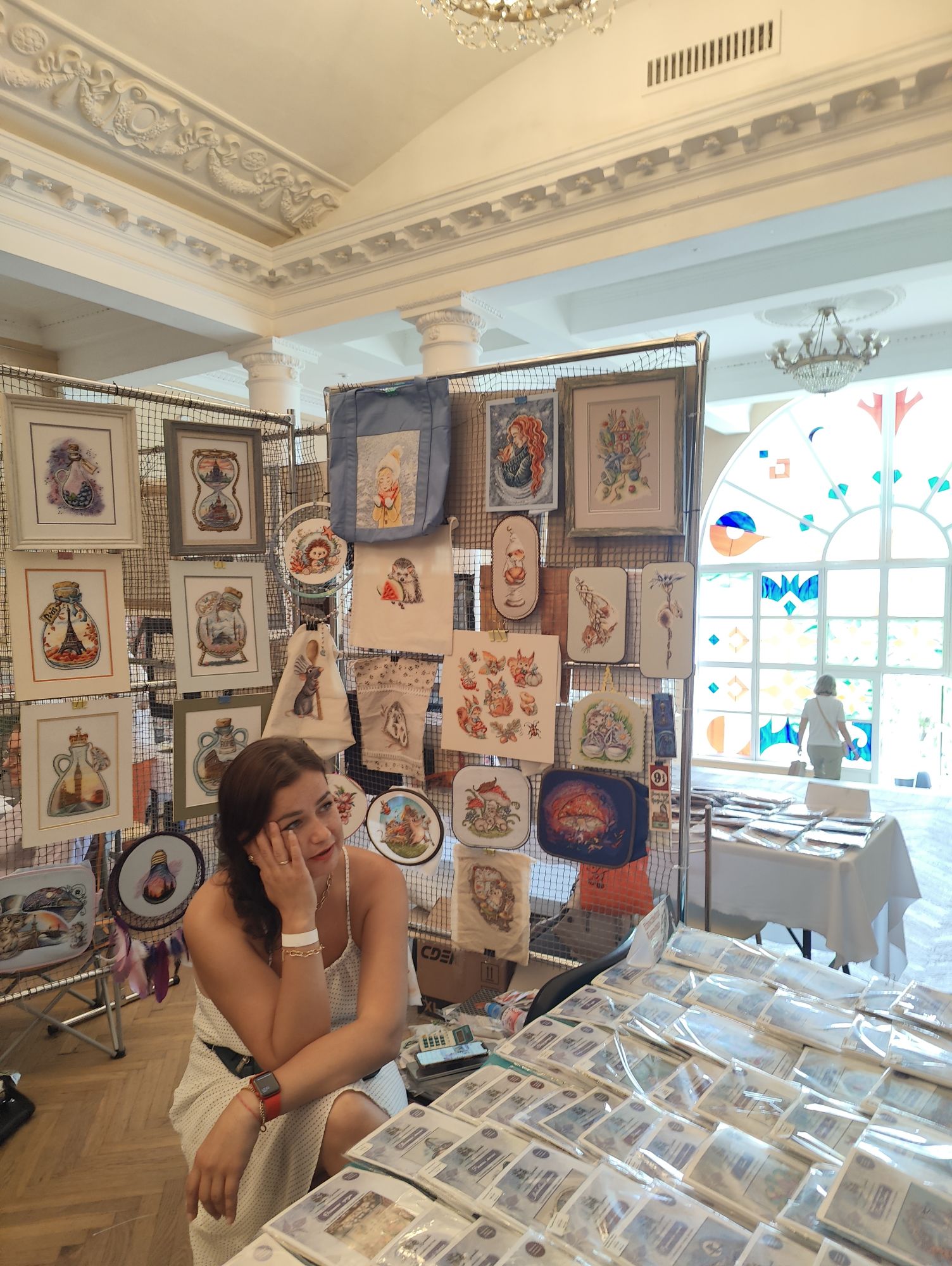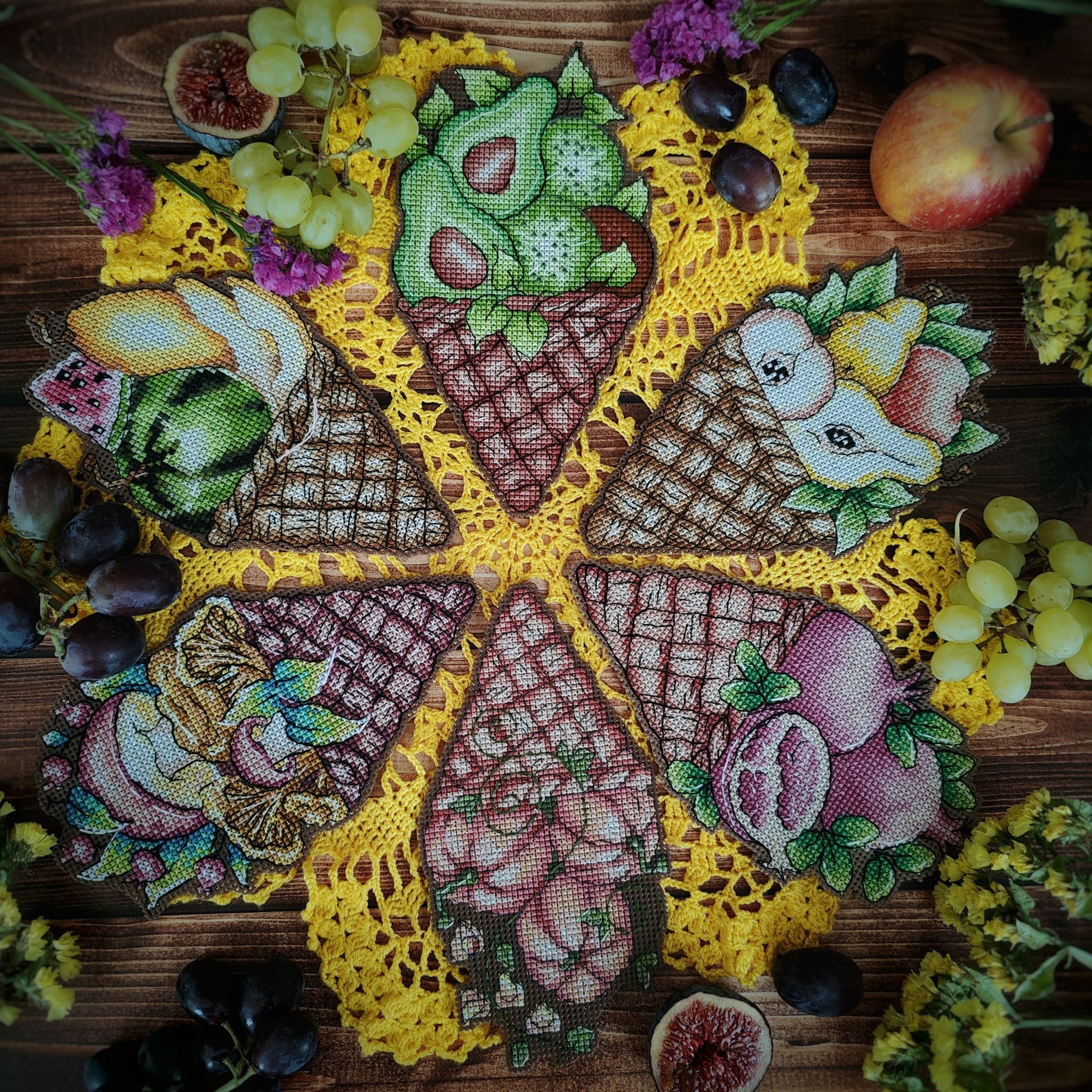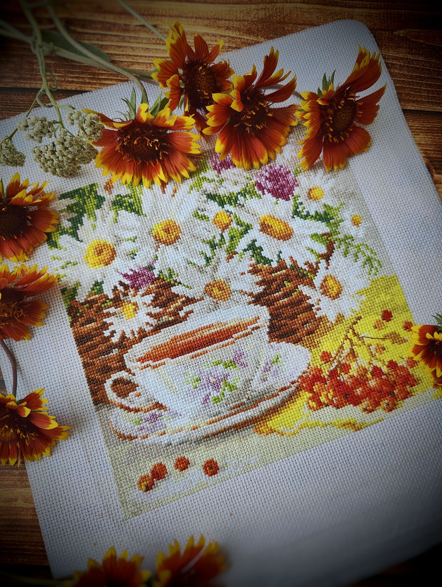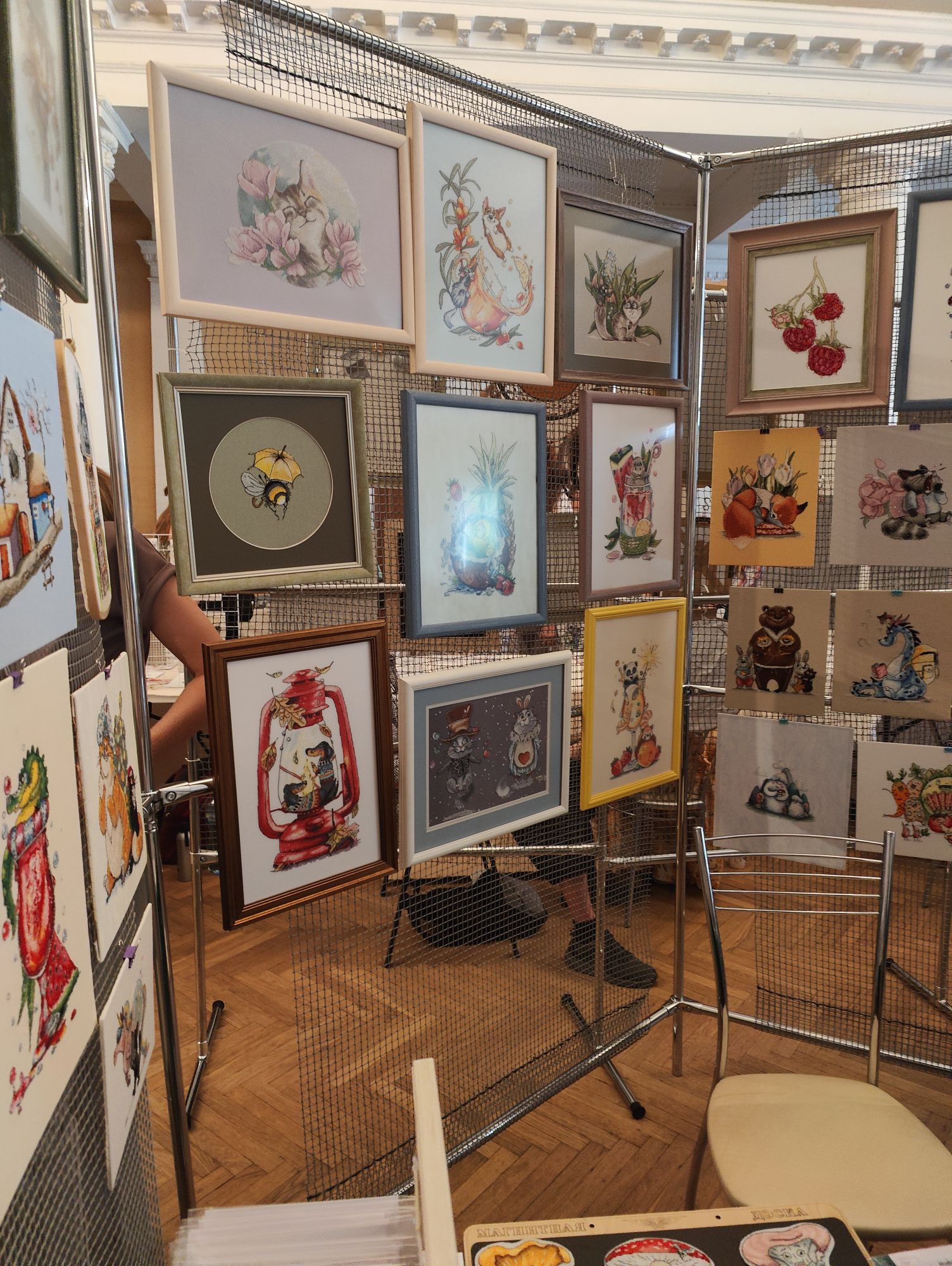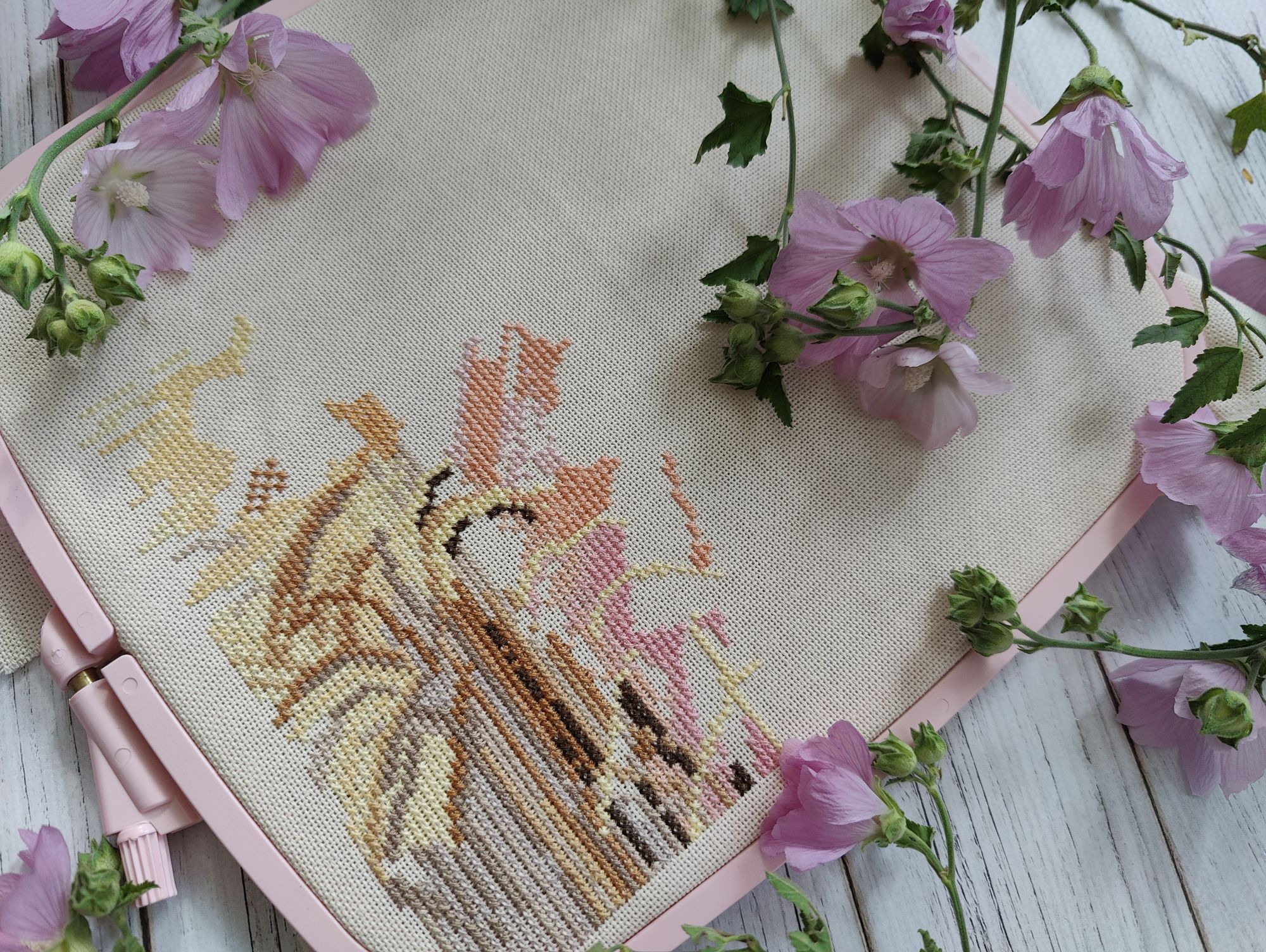2 августа 2024 Всем привет! Почти месяц пролетел с прошлого отчёта и в этот раз моя пропажа объясняется не тем, что "хотела написать, да было некогда", а тем, что показывать особо было нечего. Я практически превратилась в одгопроцессницу с небольшими шагами влево - вправо, такими небольшими, что в них и показывать было нечего. А нести один процесс, мне честно говоря, не хотелось. Теперь, когда фотографии и события поднакопились, можно и показать нос. Буду писать не по хронологии или значимости, а как лучше в текст будет ложиться. Ну и сначала, наверное, стоит показать причину моего отсутствия. "Полуденный чай" от Алисы. Финиш. Было: Стало ещё немного и финиш Напомню, что вышивала этот дизайн в пару к ранее вышитому "Утреннему чаю", но, в отличие от первого дизайна, здесь я начала процесс с самого лёгкого участка, а сложное - оставила под конец. Как же я была рада такому решению! Ибо "50 оттенков бело-серого" на ромашках я вышивала буквально на морально - волевых и втором предфинишном дыхании. В остальном же дизайн вполне классный, надеюсь, что поход в багетку не будет отложен в долгий ящик. Двигаем дальше. Поскольку у меня закончились все срочные совместники на пластике, то мои руки наконец-то дошли до давно начатых и благополучно отложенных в долгий ящик "Летних флажков" от Анны Петуновой и Елены Ларцовой. Столько было вышито на начало года: За июль я вышила первый флажок И приступила к второму Что сказать по впечатлениям? Отдыхалочкой здесь можно назвать только размер каждого отдельного флажка, в остальном же - ни разу не простой дизайн. Не дико сложный, но и не простой. А, если брать все флажки суммарно, то и достаточно большой по крестикам. Ну и в последний день июля, я решила, что могу попробовать ещё немного улучшить свою вышивальную статистику и устроила мини - марафон по завершению "Домика винодела" от Ольги Антроповой. Финиш Было в гаечке только стартовое фото: к утру 31 июля процесс был вышит ровно наполовину: Ну и дальше фото в течение дня: И готовая (но пока не оформленная) работа: Вообще неоформленный пластик в этом году копится у меня с какой-то сумасшедшей скоростью и я решила, что пора наконец-то начать разгребать эти Авгиевы конюшни. Ну и зачем мелочиться с одним - двумя дизайнами, если можно оформить сразу шесть? Так на свет появился кубик с фруктово-ягодными дизайнами от Татьяны Шаровой, вышитыми в прошлом году. С процессами на этом всё, а с вышивальными новостями - нет. 27 июля у нас в Воронеже прошёл вышивальный фестиваль "Белая ворона". Я не могла пропустить такое мероприятие и с вышивальной подругой отправилась туда. Немного фото со стендов Как же круто побывать на таком мероприятии. Это прям концентрат творчества и вдохновения. А вживую увидеть дизайнеров и всяких известных рукодельниц, о которых раньше только читала. Круто. Единственный, даже не минус, а нюанс, не с пустым кошельком оттуда уйти невозможно. Я перестала покупать, только после того, как покупать стало не на что . Но в памяти пару закладочек, что ещё нужно будет купить, сделала. Ну и, собственно, мои покупки с фестиваля: Часть наборов хочу вышить уже этой осенью, а остальное пока пойдёт в запасы (наборы Риолис и маленький с птичкой - это выигрыши в проводимой на фестивале лотерее). Далее невышивальное. Что было ещё в июле? Мы отпраздновали 11 годовщину свадьбы. Отметили её поездкой в