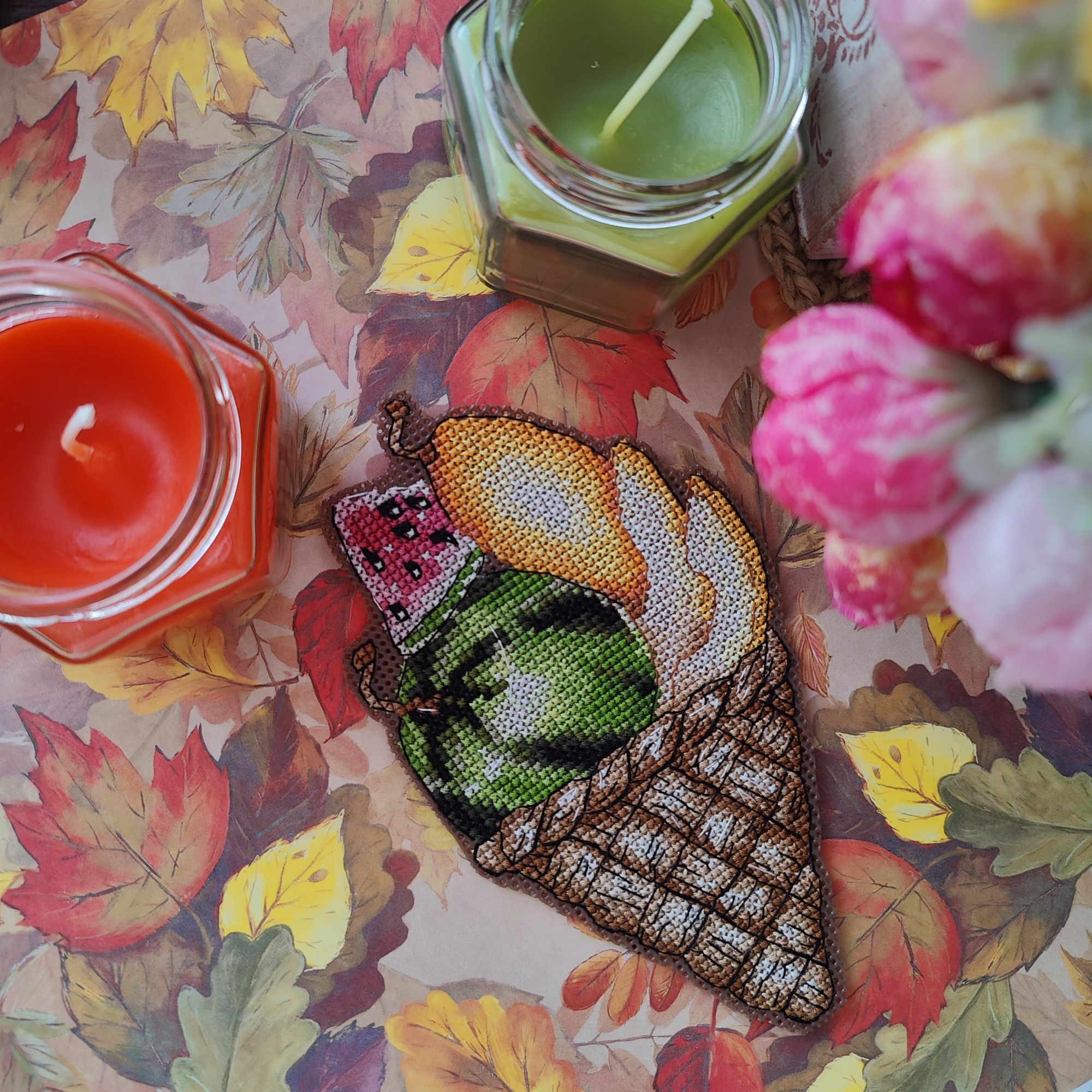 8 сентября 2024 Ну что ж, в этот раз я достаточно быстро со следующим отчётом. Но поскольку времени прошло мало, то будет он относительно небольшим. Во-первых, я вышила следующий летний флажок . В этот раз мой выбор пал на мороженое. Они (флажки) всё ещё ни разу не отдыхалочки, но продвигаться стали побыстрее. Ну а дальше были осенние старты. Домик мечты. Осенний от МаКи студия . Старт и финиш. Набор купила на вышивальном фестивале, после того, как увидела отшив. Практически "наш ответ Чемберлену большим дизайнам mill hill", даже местами круче. Нитки ручного окрашивания, нитки этуаль, бисер, пуговки, раанрмерная основа - всё на высшем уровне. И как завершающий штрих - прекрасный итог. Крайне рекомендую к отшиву. В этом сентябре у нас состоялся "первый раз в первый класс". И это событие я решила запомнить и с вышивальной стороны, начав какой-то значимый для меня дизайн. И для этой цели я выбрала "Булгаковскую осень" от Золотое Руно Это один из так называемых "наборов мечты", дизайн, который отзывается где-то в самых потаенных уголках души. В запасах у меня он лежал уже 3 года, просто так не начинала ибо слишком большой дизайн, а по значимому поводу, почему бы и не стартануть? Из невышивального. Я закончила кота сшит по мастер-классу из бесплатного журнала, которые лежат на входе /выходе в Леонардо. Вот в одном таком, взятом домой, старший сын увидел кота и попросил сшить такого. Швея из меня, конечно, ещё та, но итог главному заказчику понравился Ну и главное событие прошлой недели - сын теперь первоклассник. Я до сих пор стараюсь отойти от стресса, а у него пока "полёт нормальный". Немного фото с праздника: На этом я, пожалуй, буду закругляться. Пора отсыпаться. Спасибо всем заглянувшим. Nadinka-Blondinka, Гало4ка, Хозяйка смешных зверей и 3 других сказали спасибо Поделиться сообщением Ссылка на сообщение