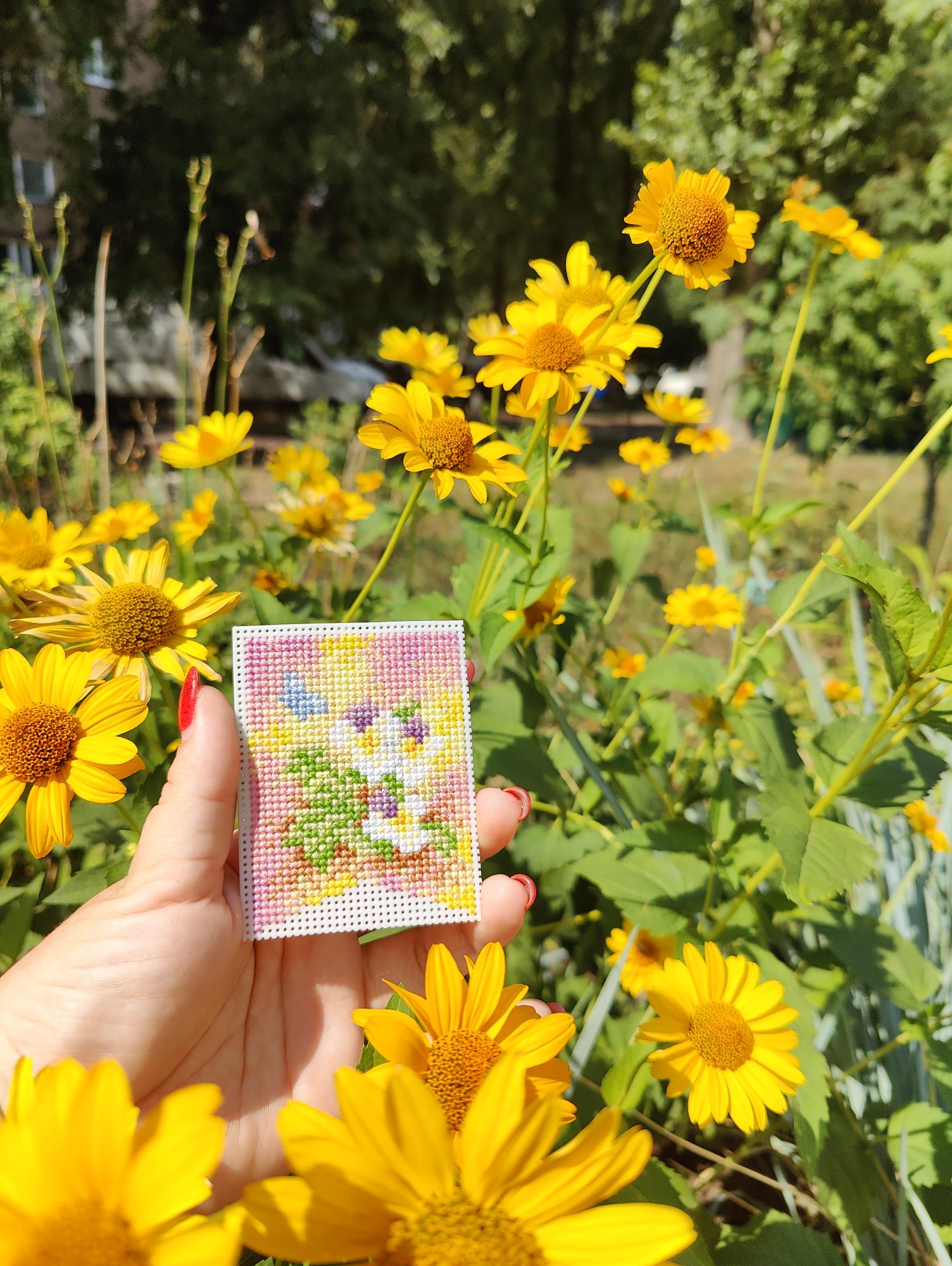 23 июня 2024 Приветствую всех заглянувших и поздравляю с праздником Святой Троицы! Давно меня тут не было, активно вышивала, стараясь сделать побольше готовых работ в конкурс вышивки на пластиковой канве. Зря старалась ибо ни одного приза мне не досталось, но зато готовых работ целая внушительная стопка. Плюсом ко всему, я ни одной работы не вышивала специалспециально для конкурса, просто показывала там текущие процессы, всё и так должно было вышиться примерно в это же время. Итак, что же ещё я успела вышить? Плюс 2 весенних карандаша от Елены Вязгиной. "Мимоза" И "Гиацинт" И все 4-ре вместе Затем я вышила четвёртое кашпо из совместника Алины Игнатьевой "Цветы на веранде" - "Кашпо с анютками" Его заканчивала в последний день конкурса, спешила, успела и это была заключительная работа из совместников, конкурсов, которую нужно было успеть закончить к определённой дате. Дальше уже двигаюсь в своём темпе. И, кстати, я пересняла "Кашпо с примулами" , так оно мне нравится гораздо больше. И все мои конкурсные работы (конкурс шёл с начала весны по середину июня: Что же из своих процессов я взяла потом? Или может начала новый? Ничего нового стартовать мне не хотелось, а вот продвинуть уже начатое, почему бы и нет. Далее в гаечку Внезапно, неплохо "пошёл" "Полуденный чай" от Алисы. Почему внезапно? Просто несколько недель я продвигала его максимум на 300х для отчёта ещё в одном совместнике, а на прошедшей неделе с удовольствием подрастила его на чуть больше чем 2000х. Было Стало Вышивается намного проще, чем первый сюжет, но, объективности ради и участок, с которого начала, значительно проще. На всякий случай "а вдруг пойдёт" ещё достала свой долгострой "Сапожок с кардиналами" от Dimensions . Он, кстати, с прошлого отчёта значительно подрос. Было Стало Ну и особая моя гордость сегодняшнего отчёта - это "Повелитель огня" от Жар-птицы . Процесс, кочевавший из планов в планы вот уже 3 сезона наконец-то закончен. Гаечку пока не зеленим, на наступающей неделе оформлю и тогда сделаем. А пока вторая половина Было: Стало И обе вместе : И на этой радостной ноте о рукоделии пока всё, дальше немного фоточек из жизни. Выбрались на Кудыкину гору: А теперь я с детьми отдыхаю у родителей в деревне, ну как отдыхаю? Отдыхаю детей, в основном и любуюсь местной природой . А вот теперь точно всё. Постараюсь надолго не пропадать. Забава_, Хозяйка смешных зверей, Pearl20 и 8 других сказали спасибо Поделиться сообщением Ссылка на сообщение