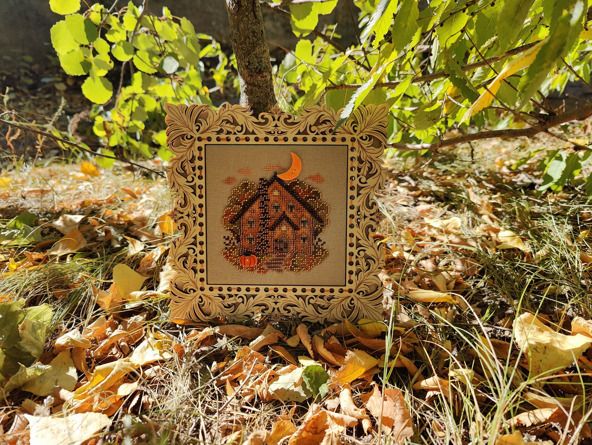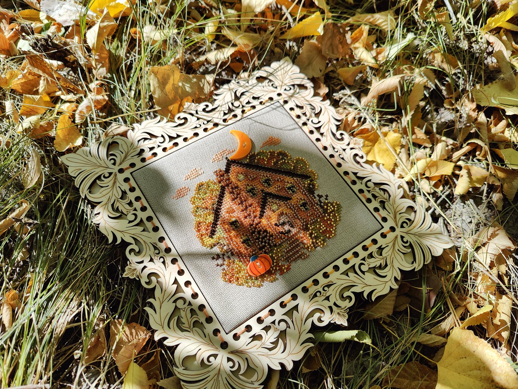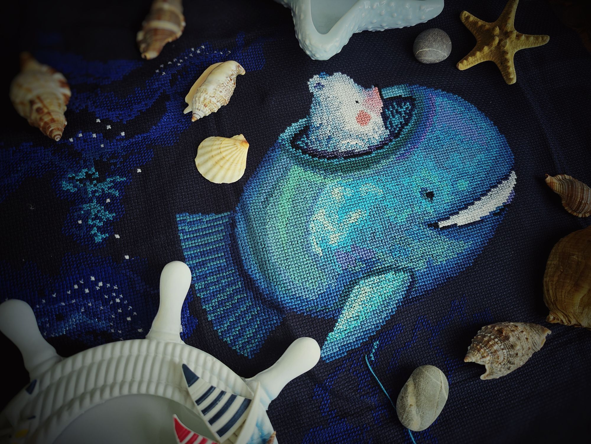 6 октября 2024 Ну а теперь перейдём к, собственно, отчёту. 1. Практически в соответствии с планом, продвигаются Летние флажки от Анны Петуновой и Елены Ларцовой. В сентябре успела вышить 5-й флажок. Вот так все 5 флажков выглядят вместе А в октябре вышила 6-й: 2. Осенние грибочки тоже продвигаются. Вышит второй И третий: Какие же они всё - таки классные и атмосферные! 3. Ну и гвоздь сегодняшней программы (хотя нет, гвоздь будет попозже) Звёздное море от РТО, процесс, который на 2,5 месяца перетянул моё внимание от всех остальных начатых крупных процессов и, который в итоге теперь находится в шаге от финиша. Было : Стало Впереди куча бека и немного французских узелков, работы ещё хватает, но всё - таки основная часть уже сделана. Устала, если честно. Облака вокруг кита казались какими-то бесконечными, вышивала - вышивала, а они всё никак не заканчивались. 4. Ну а теперь точно, гвоздь программы - оформленный Осенний домик мечты. Оформила в раму от Щепки. Покупала её под другой дизайн, но приложила к домику и так мне понравился результат, что решила их совместить окончательно. Оформлять в такую раму очень быстро, а получается вполне симпатично. На этой красивой ноте я на сегодня закончу. Статистику за месяц и не вышивальные новости расскажу в следующий раз, постараюсь сильно не затягивать, а сейчас спать (я как обычно откладываю отчёт на поздний вечер - раннюю ночь). Пока. maui, Полли, vasilisa-1977 и 2 других сказали спасибо Поделиться сообщением Ссылка на сообщение