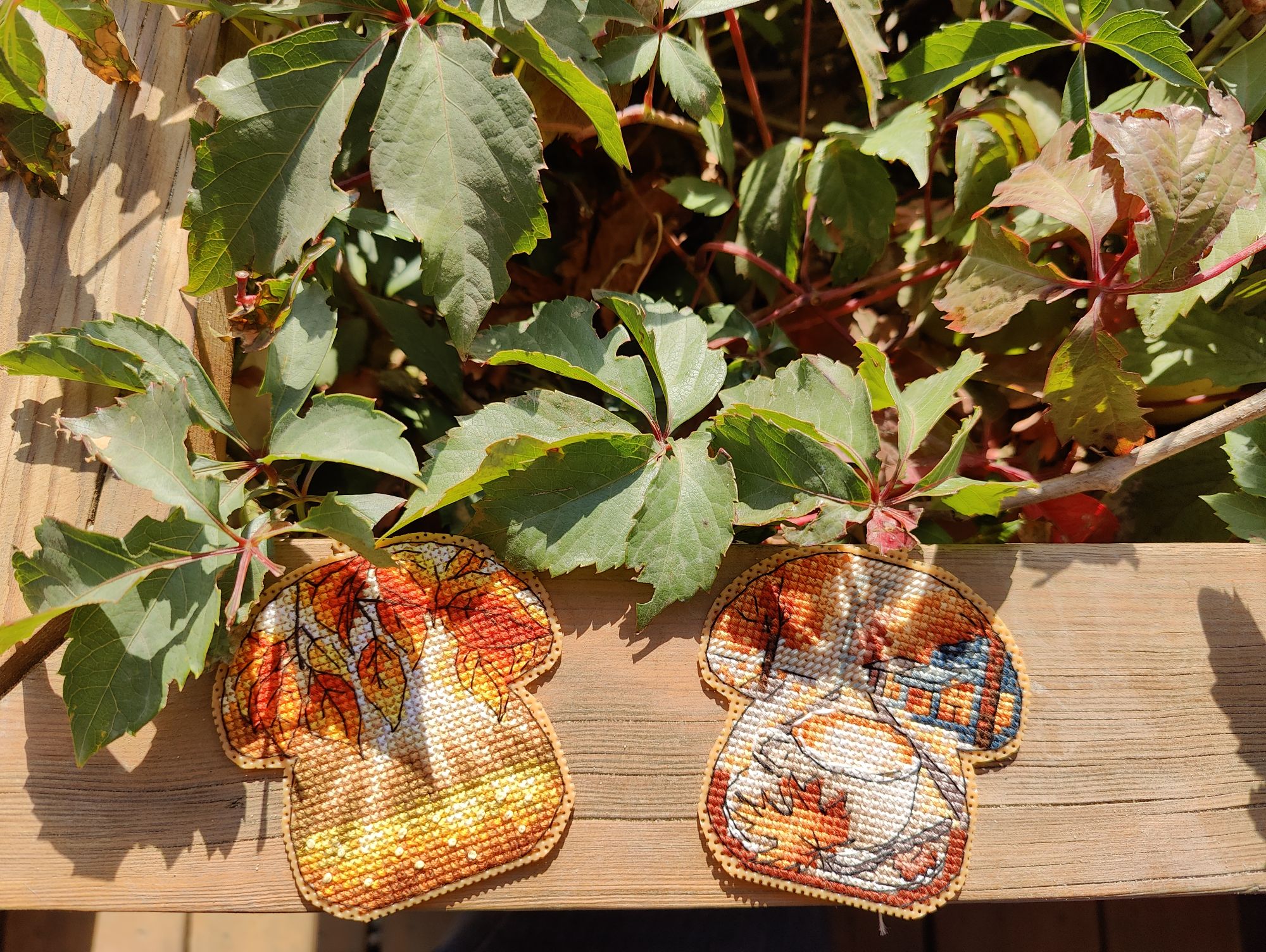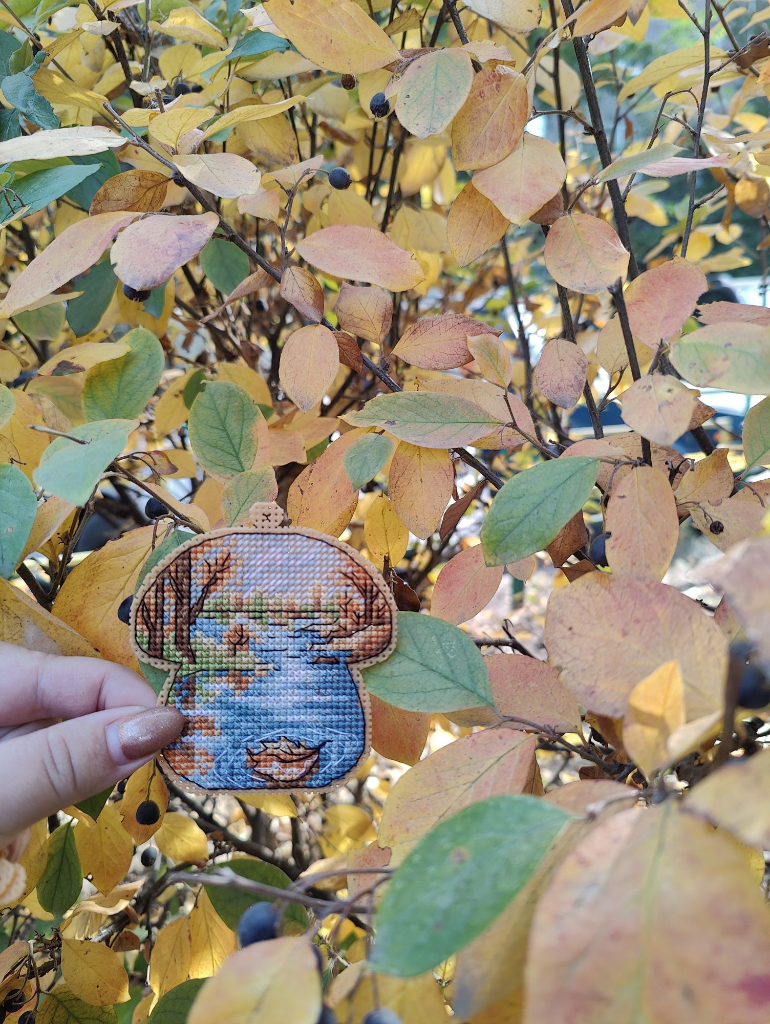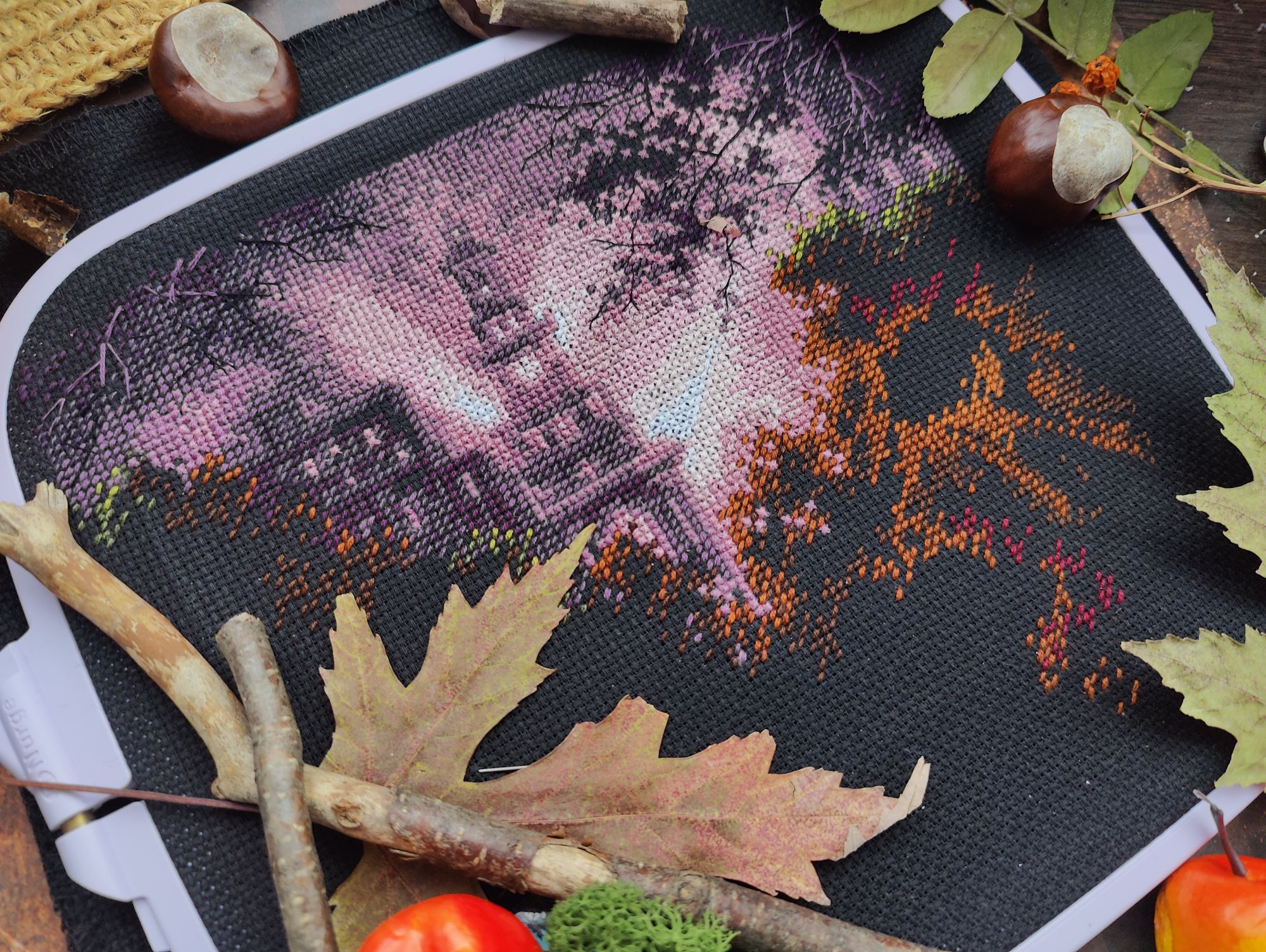 27 октября 2024 Всем привет! Пропустила прошлые выходные с отчётом, теперь буду отдуваться за 2 недели. Пойдём по порядку сезонов. 1. Летние флажки . Вышит 8-й. И, если быть логичными, то за 2 недели должны были быть вышиты 2 флажка, но... То самое вредное "но". Посчитала, прикинула, что хочу вышить до Нового года и флажки в эти планы запихнуть ну никак не получается. Поэтому 9-й флажок я хоть и начала, но пока притормозила с ним. В этом году, я скорее всего его закончу, но к следующей половине буду приступать уже, наверное, в будущем году. Да и погода на улице становится всё холоднее, актуальные вышивать осень и зиму, чем лето и осень. Вот на эти два сезона я потихоньку и переключаюсь. 2. Осенние грибочки. Готовы 5-й и 6-й грибок в рамках СО. Не перестаю удивляться как в таких небольших сюжетах дизайнеры умудряются передавать целые осенние истории. 3. А Рябинка финишировала. Было Стало Что понравилось - качество материалов, интересная задумка с использованием нитей ручной окраски в вышивке на дереве, подбор бисера. Что не понравилось - запас бисера ну совсем уж небольшой, немного потеряешь и может уже не хватить для отшива всего дизайна, а ещё не понравился материал задника, я люблю жёсткий, не пушащийся фетр, а здесь вложен прям мягенький-мягенький. Ну как бы то ни было МаКи студия - это у меня открытие этого года среди производителей. И... я уже купила набор с тыквой, так что продолжение следует. 4. Ну а за осенью обязательно прийдет зима, а с ней и Новый год. По факту, времени до него осталось не так уж и много, а планов - то, планов - громадье. Так что пора уже браться за них поактивнее. В этот раз, как мне показалось, я не выбирала основной процесс, а он сам выбрался. Просто взяла пошить, втянулась и отложить уже не смогла, а теперь и не к чему, до финиша осталось чуть больше 4-х тысяч крестиков. Было Стало С левой половиной закончила, перешла на правую. Но, несмотря на новогодний процесс на пяльцах, на улице ещё продолжается золотая осень. А я с каким-то маниакальным упрямством фотографирую клены. Нынче они у меня фотофавориты (и рябины) А эти кадры уже с настроением поздней осени Хм, странно, получилось достаточно быстро обо всём рассказать. Прям удивительно. Ну что ж, тогда до следующего отчёта. vasilisa-1977, Aleksacha , maui и 3 других сказали спасибо Поделиться сообщением Ссылка на сообщение