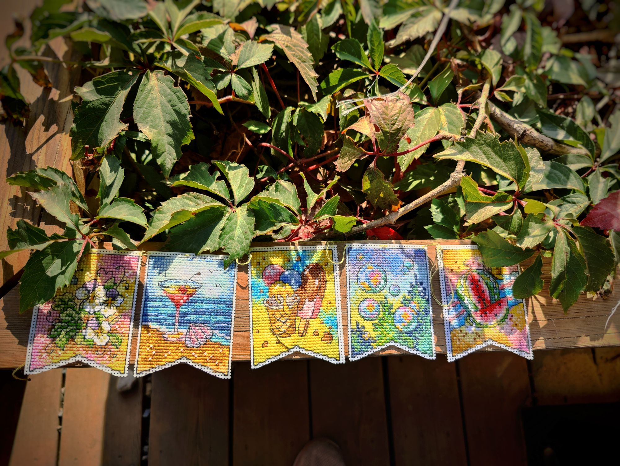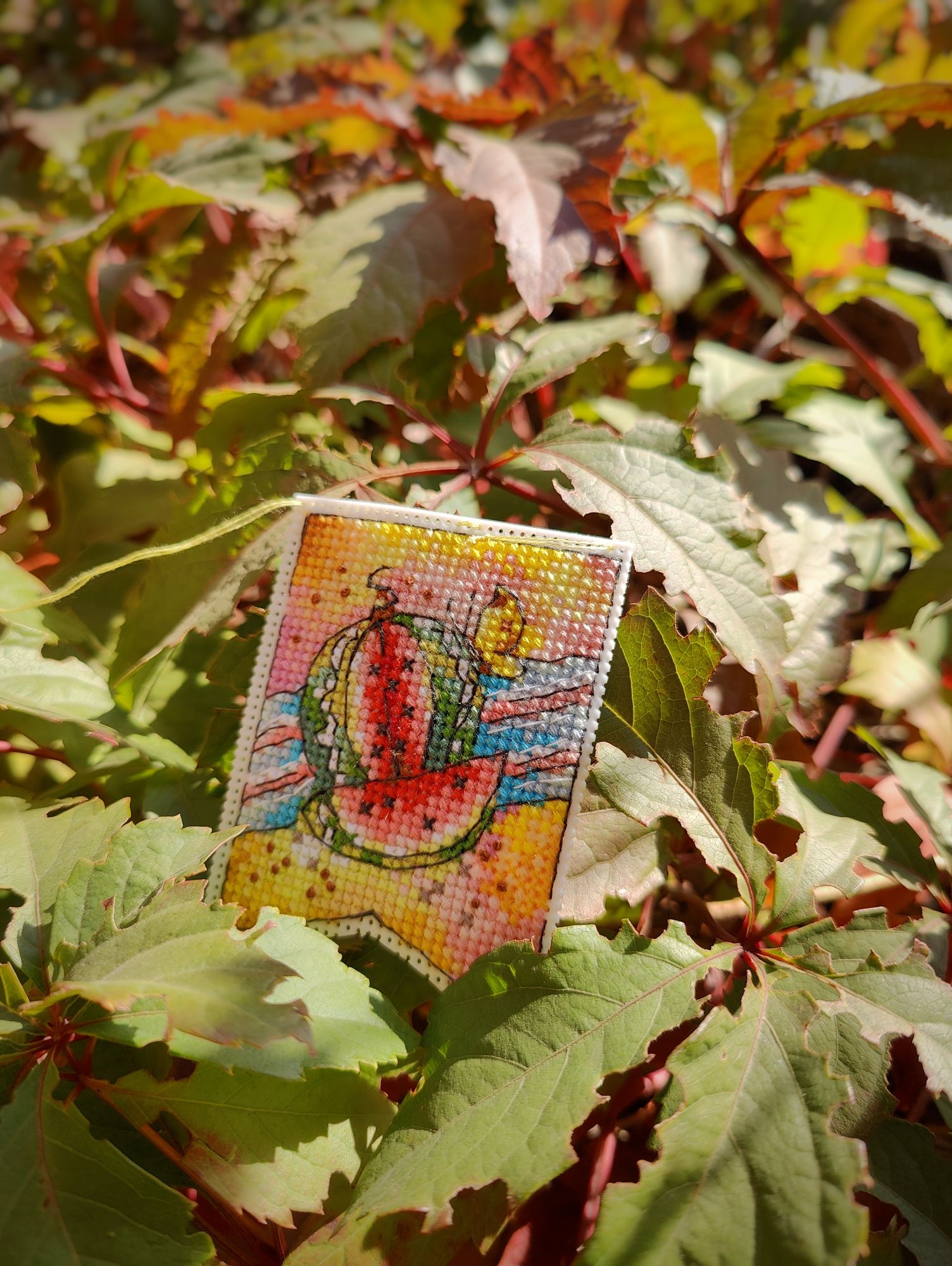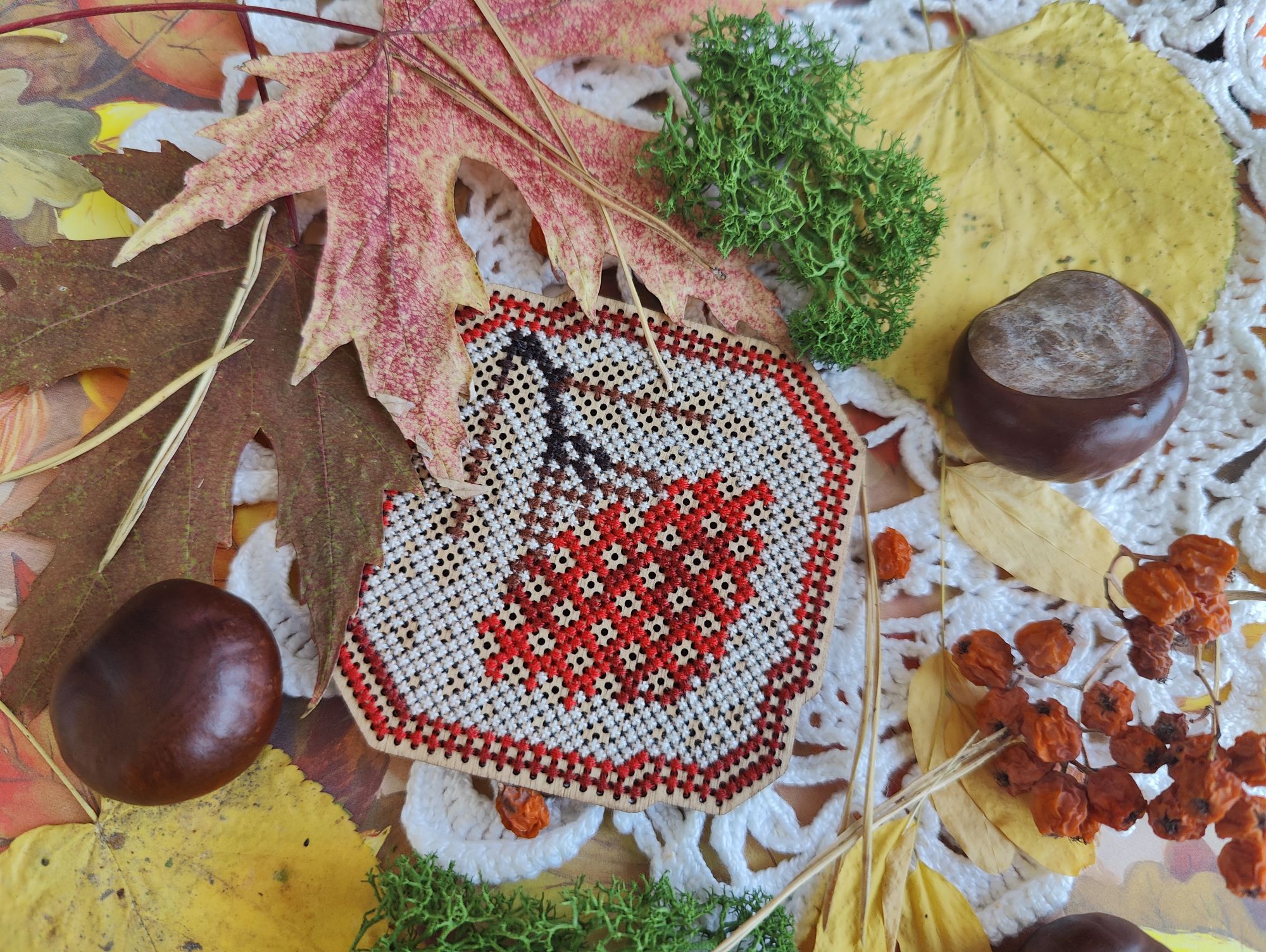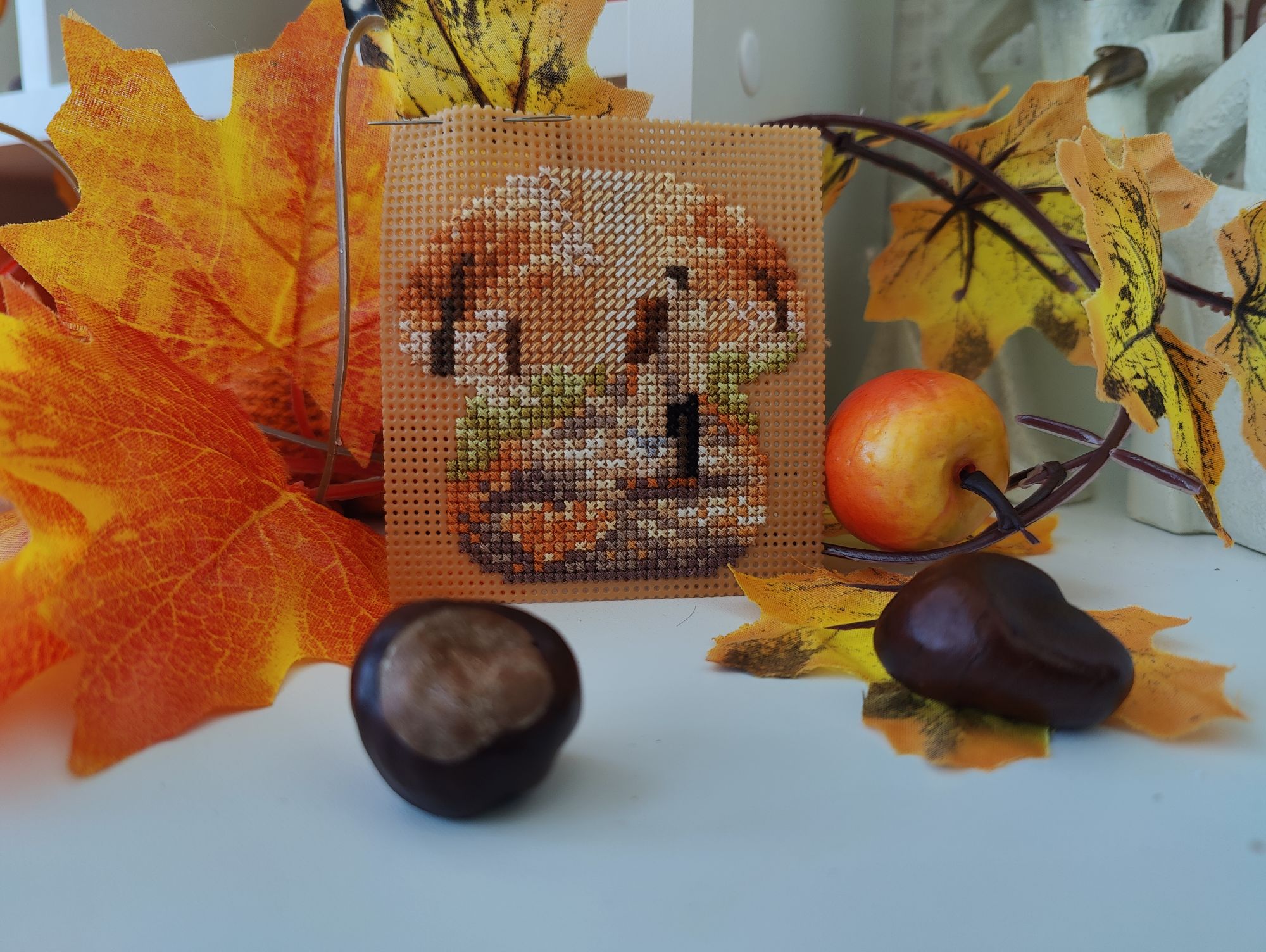 27 октября 2024 Всем привет! Пропустила прошлые выходные с отчётом, теперь буду отдуваться за 2 недели. Пойдём по порядку сезонов. 1. Летние флажки . Вышит 8-й. И, если быть логичными, то за 2 недели должны были быть вышиты 2 флажка, но... То самое вредное "но". Посчитала, прикинула, что хочу вышить до Нового года и флажки в эти планы запихнуть ну никак не получается. Поэтому 9-й флажок я хоть и начала, но пока притормозила с ним. В этом году, я скорее всего его закончу, но к следующей половине буду приступать уже, наверное, в будущем году. Да и погода на улице становится всё холоднее, актуальные вышивать осень и зиму, чем лето и осень. Вот на эти два сезона я потихоньку и переключаюсь. 2. Осенние грибочки. Готовы 5-й и 6-й грибок в рамках СО. Не перестаю удивляться как в таких небольших сюжетах дизайнеры умудряются передавать целые осенние истории. 3. А Рябинка финишировала. Было Стало Что понравилось - качество материалов, интересная задумка с использованием нитей ручной окраски в вышивке на дереве, подбор бисера. Что не понравилось - запас бисера ну совсем уж небольшой, немного потеряешь и может уже не хватить для отшива всего дизайна, а ещё не понравился материал задника, я люблю жёсткий, не пушащийся фетр, а здесь вложен прям мягенький-мягенький. Ну как бы то ни было МаКи студия - это у меня открытие этого года среди производителей. И... я уже купила набор с тыквой, так что продолжение следует. 4. Ну а за осенью обязательно прийдет зима, а с ней и Новый год. По факту, времени до него осталось не так уж и много, а планов - то, планов - громадье. Так что пора уже браться за них поактивнее. В этот раз, как мне показалось, я не выбирала основной процесс, а он сам выбрался. Просто взяла пошить, втянулась и отложить уже не смогла, а теперь и не к чему, до финиша осталось чуть больше 4-х тысяч крестиков. Было Стало С левой половиной закончила, перешла на правую. Но, несмотря на новогодний процесс на пяльцах, на улице ещё продолжается золотая осень. А я с каким-то маниакальным упрямством фотографирую клены. Нынче они у меня фотофавориты (и рябины) А эти кадры уже с настроением поздней осени Хм, странно, получилось достаточно быстро обо всём рассказать. Прям удивительно. Ну что ж, тогда до следующего отчёта. vasilisa-1977, Aleksacha , maui и 3 других сказали спасибо Поделиться сообщением Ссылка на сообщение