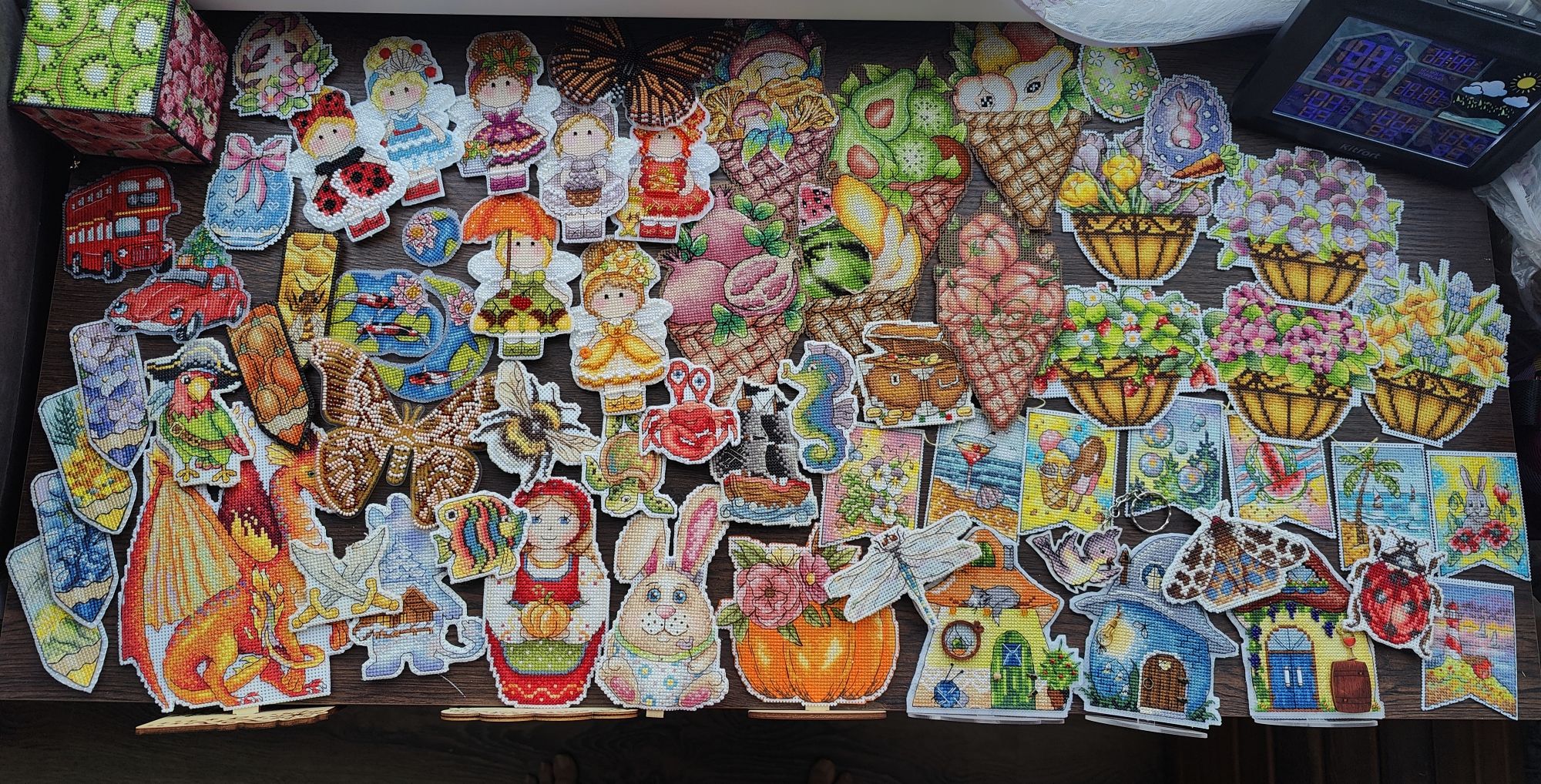 19 января А теперь об итогах года. 2024 год получился очень вышивальным и околовышивальным (имеются в виду различные оформления вышитых работ а вот с другими видами творчества было очень негусто При этом посчитать точное количество финишей мне сложно, потому как, например, не знаю как считать 4 магнита из одного набора от Жар-птицы - как 1 финиш или как 4? Или 9 флажков из 18-ти,которые у меня вообще числятся как один процесс? Такие спорные финиши собрала отдельным коллажом. И в итоге я всё посчитала отдельно, каждую, даже самую маленькую вышивку - суммарно получилось 75 законченных работ. Большинство из них на пластике, остальные на ткани (8 шт). Эти работы уже оформлены или в процессе оформления а эти пока отправлены в рулончик и других основах (тоже 8 шт). 24-й год стал для меня настоящим годом открытия различных СП и СО. Да, раньше я в них тоже участвовала, но так активно, как в 2024-м - ни разу. 5 СО я полностью завершила в 24-м году, а ещё 3 перешли на 25-й. Кроме этого было много других вышивальных активностей. Я поучаствовала в конкурсе отшивов на пластиковой канве, в нескольких совместниках и играх у блогеров, а также годовой вышивальной игре в Now. В ней даже заняла одно из призовых мест и уже получила свой выигрыш А ещё я впервые побывала на вышивальном фестивале. И это был один из самых интересных творческих опытов ушедшего года. Ну и чтобы закончить с вышивальными фото - общий коллаж всех законченных работ Теперь по цифрам: - всего вышито - 217 тыс. крестиков (округляю до круглых значений); - количество оставшихся крестиков во всех процессах -на начало года 435 тыс + 4 процесса без саги; на конец года 446,5 тыс + 4 процесса без саги; - всего за год было 64 старта и 63 финиша; - всего вышивальных дней - 288; - средняя скорость вышивки 753,5 крестика за вышивальный день или 593х за календарный день; - самый непродуктивный месяц - сентябрь 15 341,5х; - самый продуктивный - октябрь 24677х; Количество начатых процессов увеличилось с 18 до 19; Количество наборов в запасах увеличилось на 8,при этом из покупок 24-го года в запасах осело 14 наборов. Количество авторских схем в запасах увеличилось тоже на 8, из свежих покупок в запасах осело 11 схем. Соотношение законченных к оформленным проектам (то есть здесь считается именно весь набор, а не отдельные сюжеты из него) с учётом оформления работ прошлых лет - 29/19. Вот такая занимательная статистика у меня получилась. Загналась я с подсчётами, конечно капитально, но мне интересно было. Bogdan, Aleksacha , vasilisa-1977 и 2 других сказали спасибо Поделиться сообщением Ссылка на сообщение
