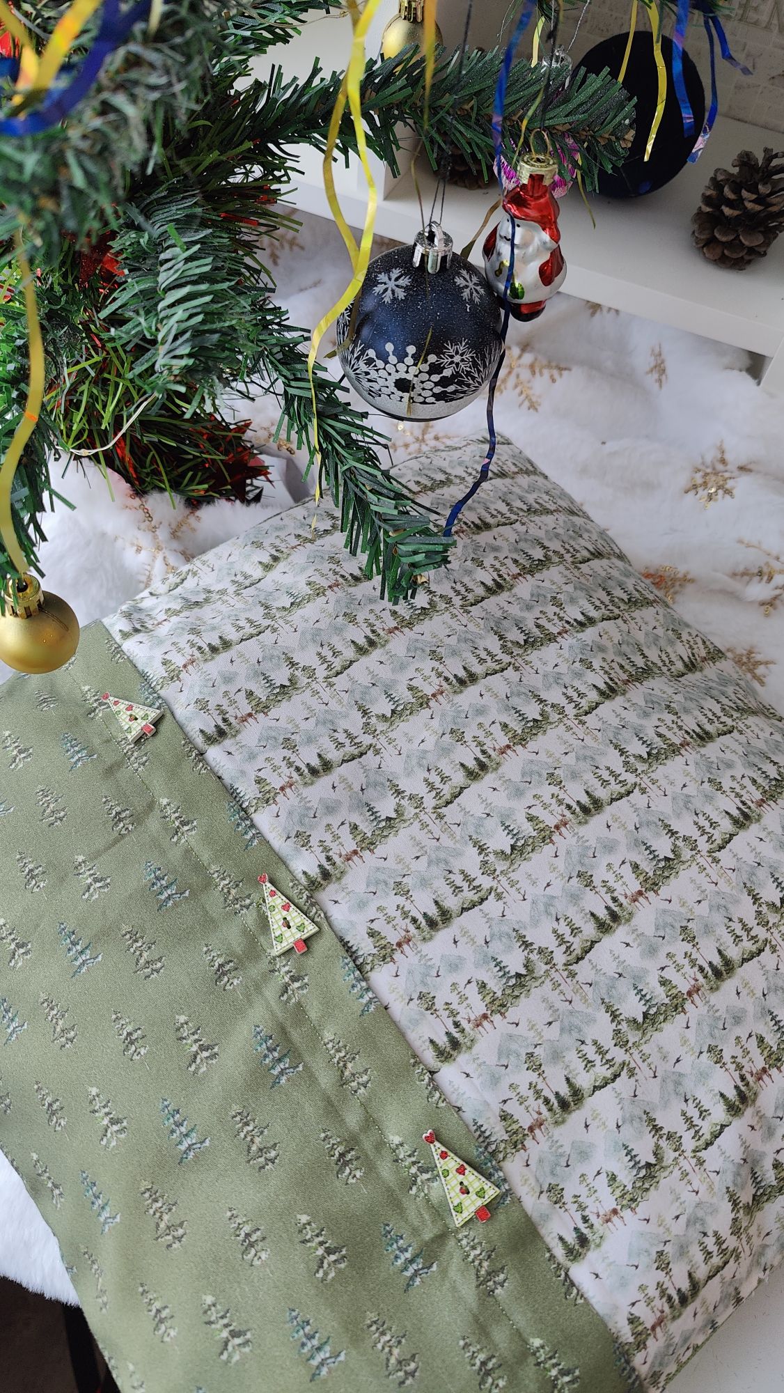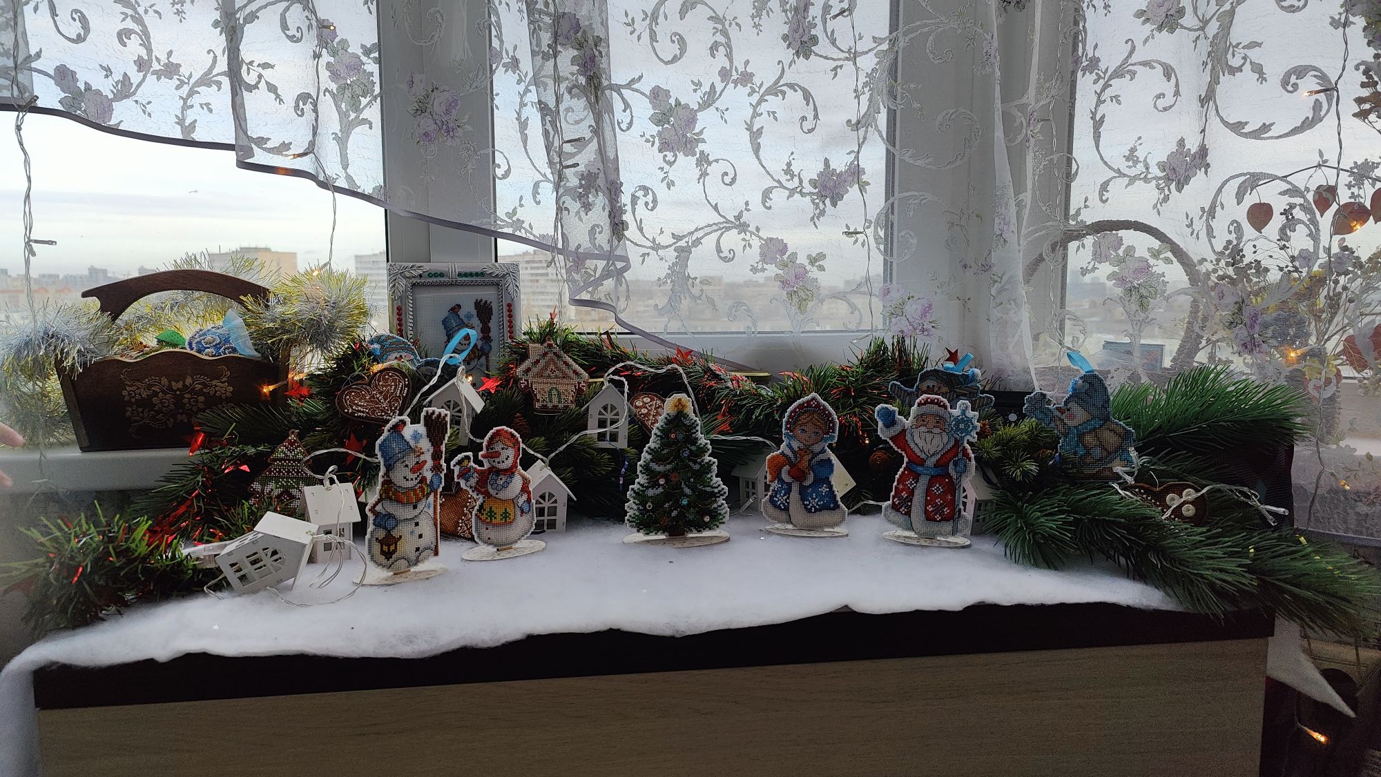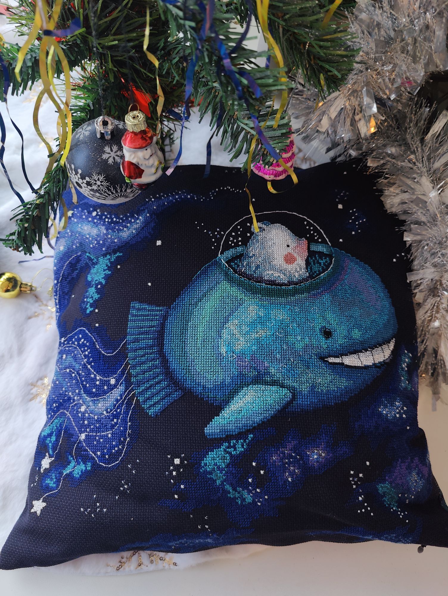 27 декабря 2024 Всем привет! Хочу немного уменьшить итоговый отчёт и часть продвижений / стартов / финишей показать сейчас, да и зимнюю тему я Вам в прошлый раз отдельно обещала, так что проходим, присаживаемся, располагаемся и готовимся читать и рассматривать. 1. Для начала закроем вопрос с осенними грибочками . 12-й сюжет готов, можно зеленить гаечку. Финиш. К сожалению, я так спешила, что не сделала промежуточное фото этого грибка, но, надеюсь, модераторы меня простят. Впредь обещаю так не делать. 2. И ещё один процесс подошёл к своему логическому завершению "Огни ночного города" от Чудесной иглы. Финиш Было Стало Финиш После финиша "Звёздного моря" и окончания проекта с грибочками я прикинула, что обязательно надо закончить до Нового года и разделила большую часть вышивального времени между этими проектами. Одним из них стали "Огни..", и, честно говоря, вряд ли я закончила бы из так быстро, если бы не это "обязательно закончить до Нового года". Вот вроде и сложного там ничего не было, а развить большую скорость на процессе не удавалось. Но результат нравится, фонари словно бы подсветили канву и остаётся только удивляться как дизайнерам обычными нитками удалось передать этот свет. 3.Вторым процессом из тройки основных стал Сапожок с кардиналами от Dimensions Правда с ним в планируемые сроки я уже не укладываюсь, так что сроки смещаются к Рождеству. Было: Стало В развороте Наконец-то переставила пяльца на заключительный участок, теперь финиш стал виднее. 4. Ну и третий процесс из тройки основных "Купавки" от Риолис Тоже пока ещё не финиш, но с ними надеюсь успеть в срок. Было Стало 5. Заметила, что в гаечку не загружены продвижения по Морском бою. Сфотографировала результат на конец года Было Стало 6. Однако несмотря на наличие "срочнонужныхзакончить" процессов я не смогла удержаться от того, чтобы поучаствовать в зимних совместниках. Сначала я записалась на участие в СО "Волшебный Новый год" Подготовка и то, что будет в итоге (вышивать планирую не все игрушки) 7. А затем в СО "Зима в подарок" (проводится в той же группе, где отшивала грибочки) Старт первого подарка И то, что будет в итоге (опять-так вышивать буду не все подарки) 8. Ну а потом на меня накатило вдохновение и я начала снеговика от Ольги Ланкевич, Новогоднее чудо Подготовка будет 9. Ну а ещё в рамках "надо успеть до Нового года" у меня было несколько невышивальных пунктов. Одним из них стало оформление вышитого "Звёздного моря" от РТО в подушку. И пока я решала с какой стороны мне подойти ко вшиванию потайной молнии, я взяла другой сюжет и оформила в подушку с карманом. Чтобы карман не топорщился некрасиво, использовала пуговицы. У меня в запасах были вот такие тематические пуговицы - ёлочки и они вполне гармонично подошли к изделию. Ну и поскольку на передней стороне подушки симметрии не было, то я решила поиграть в диагонали с задней стороной. Получается, что впереди большая сторона зелёная, меньшая светлая, а сзади, наоборот, большая сторона светлая, а меньшая - зелёная. Косяки в шитье, естественно, есть, но я себя за них не ругаю, во-первых, их практически не видно, если не знаешь, где смотреть, а во-вторых, ругать я себя буду хотя бы на втором десятке, а не на втором сшитом изделии. Меня всё устроило, особенно то, что готовая вышивка теперь не лежит в рулоне, а украшает дом. 10. Ну а потом очередь дошла всё - так
