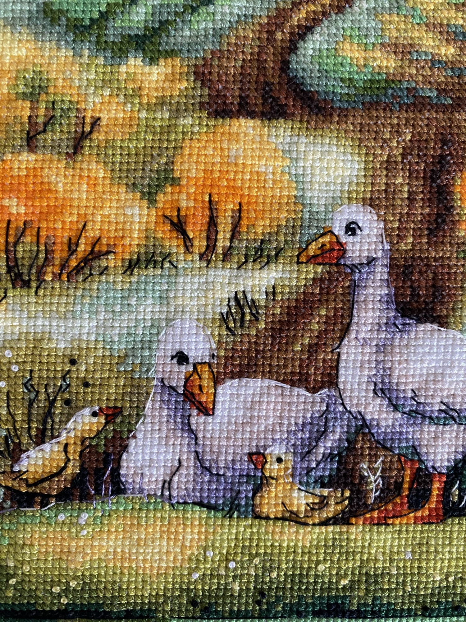 2 октября 2022 Привет. У меня очередной новый законченный процесс. «Гуси» от Натальи Ореховой очень легкая схема, хоть и не маленькая. Бэк там где надо, ничего лишнего. Мне понравилось! Ярко, как будто окошко в осень.. Следующие мои процессы будут от Алисы «вишня», «смородина», «крыжовник» за остатки спасибо большое @IrnKA долго я их искала. Буду вышивать для сестры, по её заказу))) хочет оформить в маленькие круглые пяльцы-рамки. Это мне тоже предстоит найти)) Хозяйка смешных зверей, Mariapi, Камма80 и 6 других сказали спасибо Поделиться сообщением Ссылка на сообщение