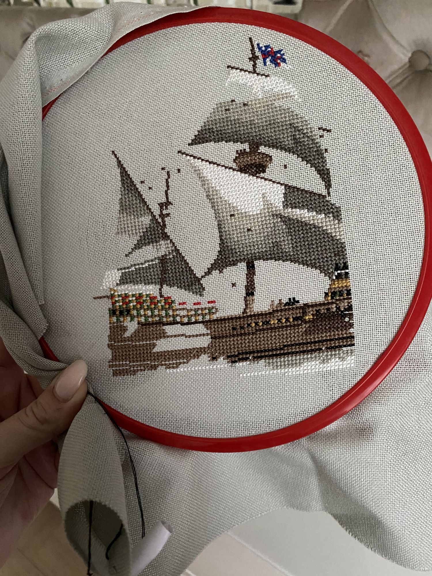31 декабря 2022 5 часов назад, Аментет сказал(а): Инна, от красавца-корабля невозможно отвести взгляд! особенно бэк на снастях, его тоже можно долго рассматривать. очень аккуратно сделан! и силуэты людей как здорово проработаны, пара крестиков и вот уже угадываются очертания винтажному мишке ты хорошую основу подобрала) Даша, спасибо! Нити на корабле, не сильно натянуты..так стало после стирки. Но я стараюсь не всматриваться в них, иначе могу распустить))) Когда отшила первые крестики с людьми, очень удивилась! Один человек даже наверху сидит, в корзине) или как её назвать. Не смотря на все эти мелкие детали, очень быстро вышилась работа! Легко дались и петиты и узкокрестики(вообще впервые с ними столкнулась) я довольна. Мишка тоже быстро идет) ткань да, вместе с нитками получился пряный тандем) такой медово-горчичный…Или имбирный)) Аментет сказал(а) спасибо Поделиться сообщением Ссылка на сообщение