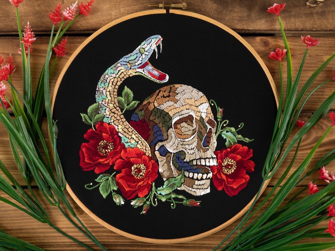 16 июля 2024 Анонс новинки. JK-2334 «Череп со змеей - нашивка» Набор скоро поступит в продажу Размер готовой работы 18 x 18.5 см. Гладь, инструкция с пошаговыми иллюстрациями, водорастворимый флизелин с напечатанным контуром. Ткань черная, 100% хлопок, 20 цветов нитей мулине. K_AnnA_D, kas_julia, Tata44 и 23 других сказали спасибо Поделиться сообщением Ссылка на сообщение
