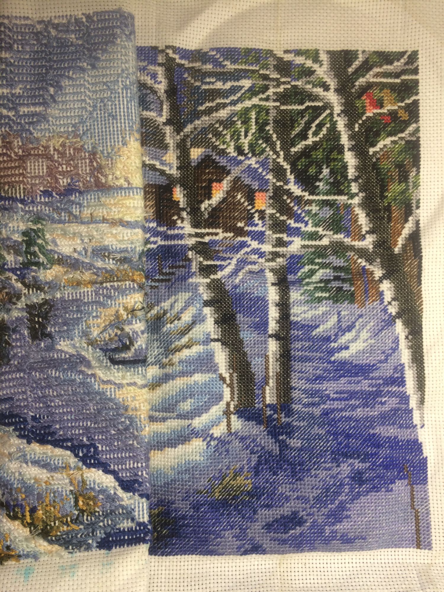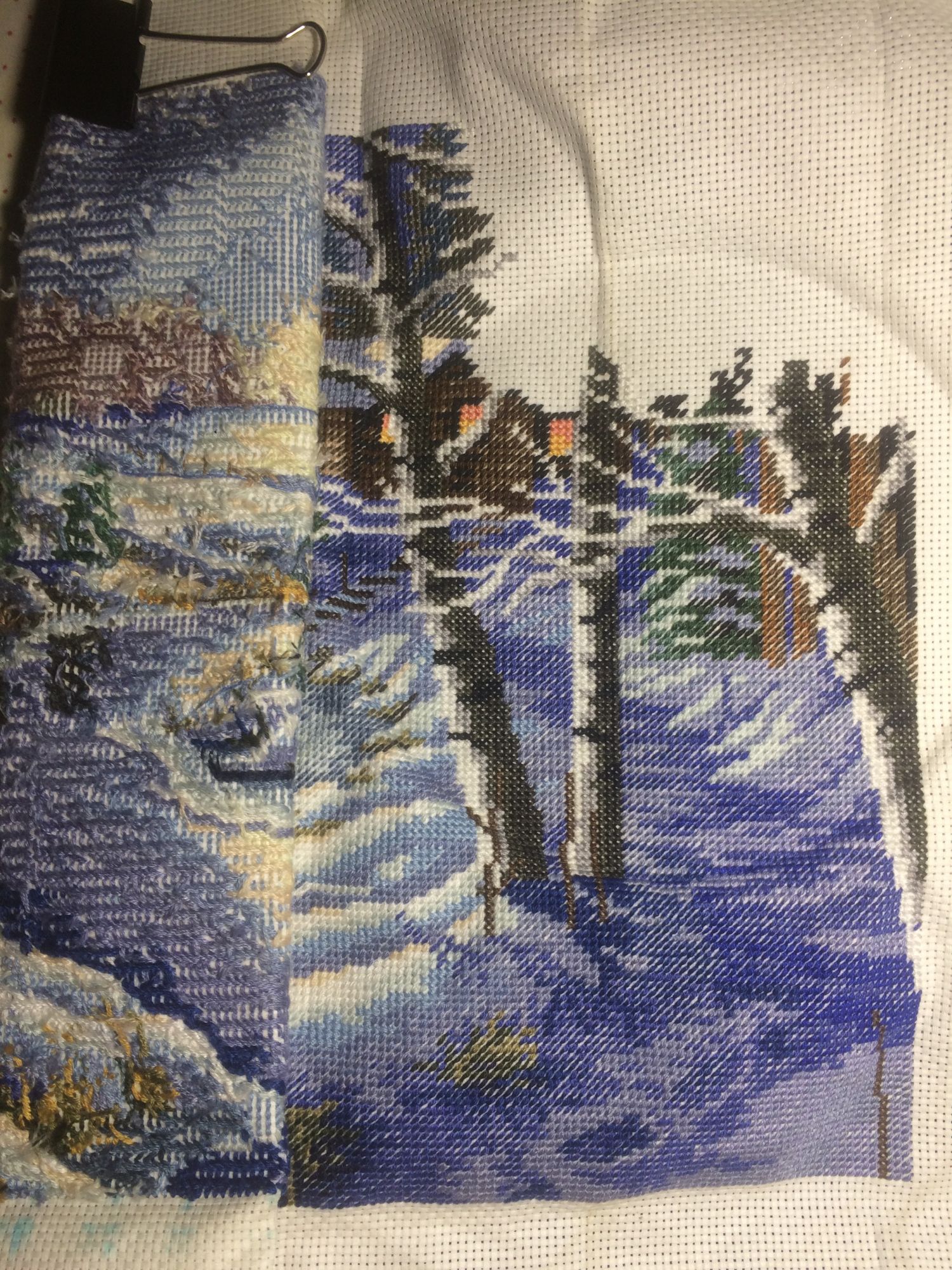 23 января 2021 Я закончила свою вышивку! завершила процесс ещё 17 января, но нужно было постирать, погладить и сделать фото при дневном освещении, поэтому отчитываюсь сегодня))) итак, было: стало: (позелените гаечку, пожалуйста). Процесс был интересный, когда привыкла к дубовой канве и научилась запяливать, так и вовсе «полетел». Бэкстич меня не утомил, он довольно легкий, сложновато только было снежок на веточках вышивать - отступ от ветки всего в половину клеточки, сложно было втыкать иглу (острую) - зашивка плотная. К сожалению, не хватило мне коричневых оттенков, чтобы закончить куст в нижнем правом углу, и на кустах я не стала вышивать снег, потому что все пальцы уже исколола на ветках ещё. Но мне и без снега нравится, у нас на Кубани даже когда лежит снег, кусты голые, так что считаю, что вполне гармонично выглядит сюжет и без снега на кустах. Теперь осталось оформить и подарить бабушке))) всех благодарю за компанию, обязательно приду ещё (правда, не знаю, когда) - есть маяк в запасах. Всем легких крестиков и приятных финишей! dinakopacheva, снежик, Novia и 25 других сказали спасибо Поделиться сообщением Ссылка на сообщение