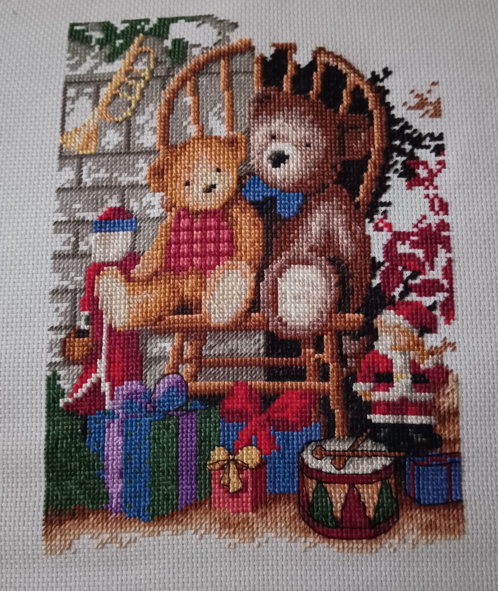30 ноября 2025 У меня очередной набор от "Амишоп", аналог дизайна Dimensions "Рождественские мишки". Обычно стараюсь вышивать последовательные участки, но в этот раз летаю по всему полю. Нравится Tanelia, Moon Stitch, mischmisch и 11 других сказали спасибо Поделиться сообщением Ссылка на сообщение