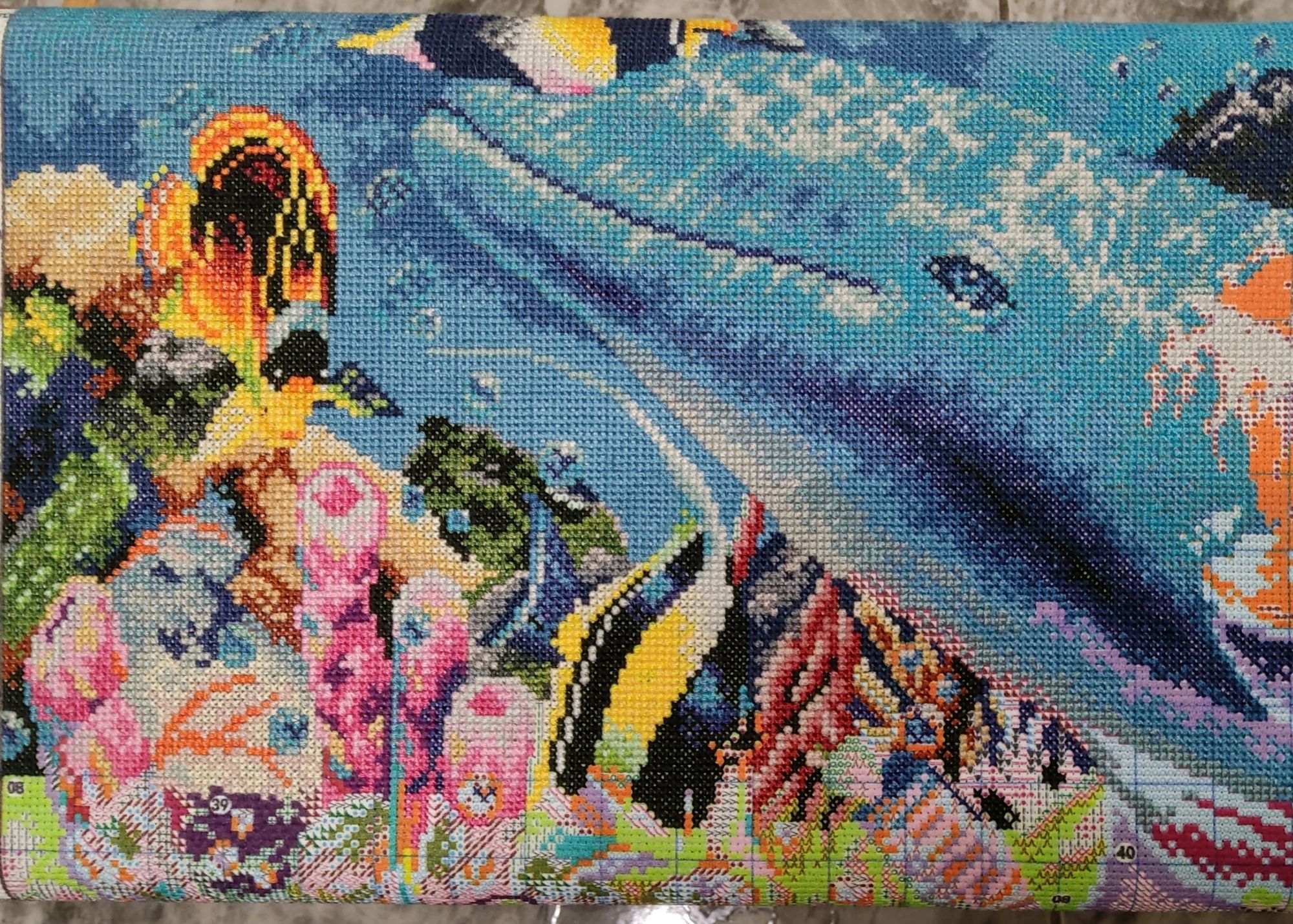 17 ноября 2025 Поскольку это китайская нанесёнка - то в этой теме и буду вести процесс, но по факту это и долгострой будет очень затяжной в силу размера - 49х91см полная зашивка и отдыхалочка, ибо в работе сейчас процессы на чёрной и синей канве 16 и 18 каунта - устают глаза, а это прям праздник - 14 каунт, нанесёнка. Набор мне подарили. название Вернисаж DA620 Phantom Red Dragon (L), а я просто назвала его "Радужные рыбки" alenazo, Moon Stitch, герда28 и 14 других сказали спасибо Поделиться сообщением Ссылка на сообщение
